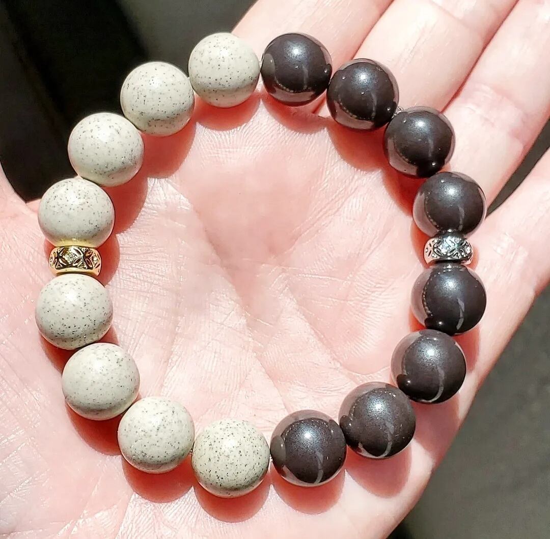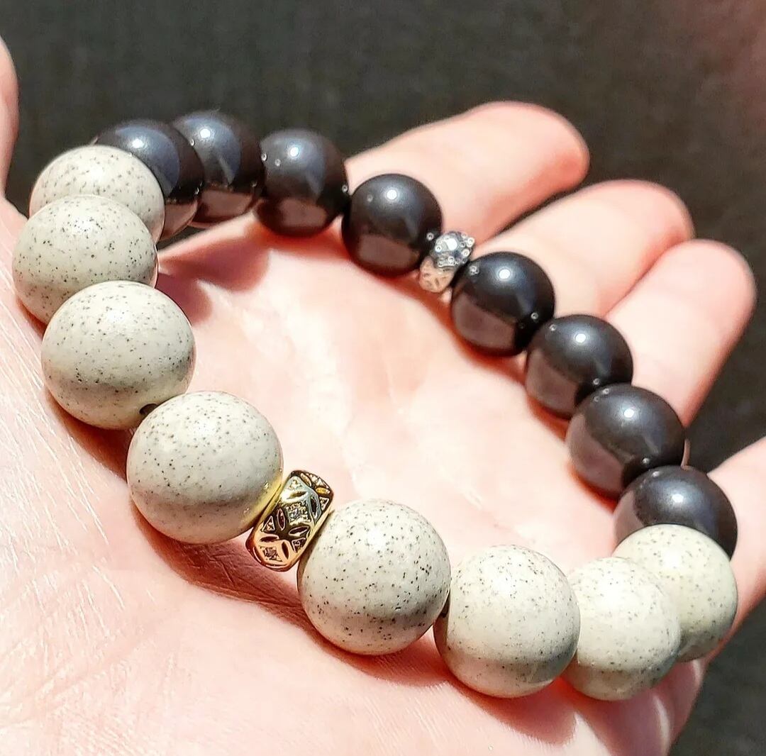 使用した北投石は、採掘禁止になる前の北投温泉産の北投石を粉末にし、セラミックビーズ加工したものになります