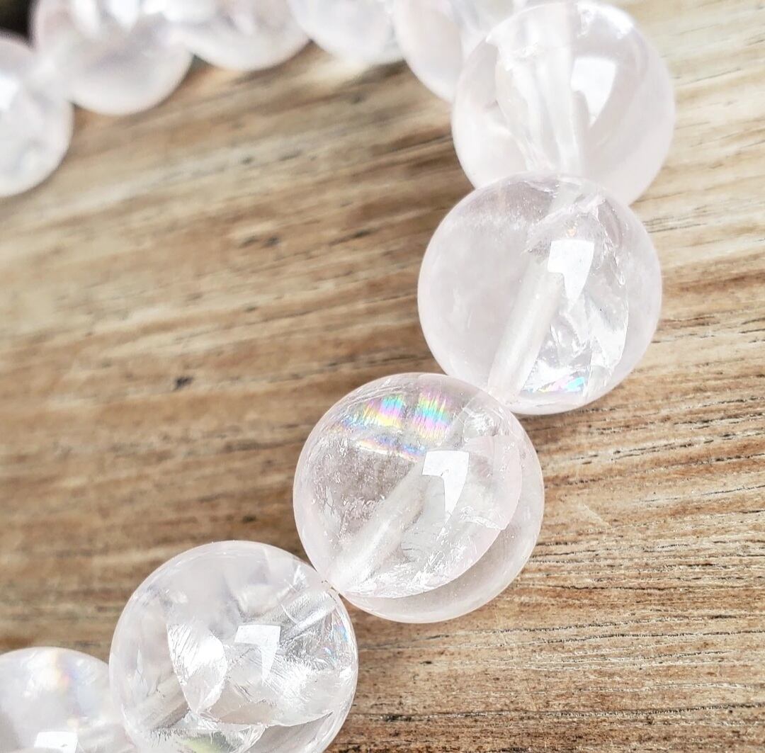 アイリス ローズクォーツ とは、内部にクラックや歪みがあり、その部分が光を反射する際にキラキラ虹色の輝きを放つローズクォーツ のことです