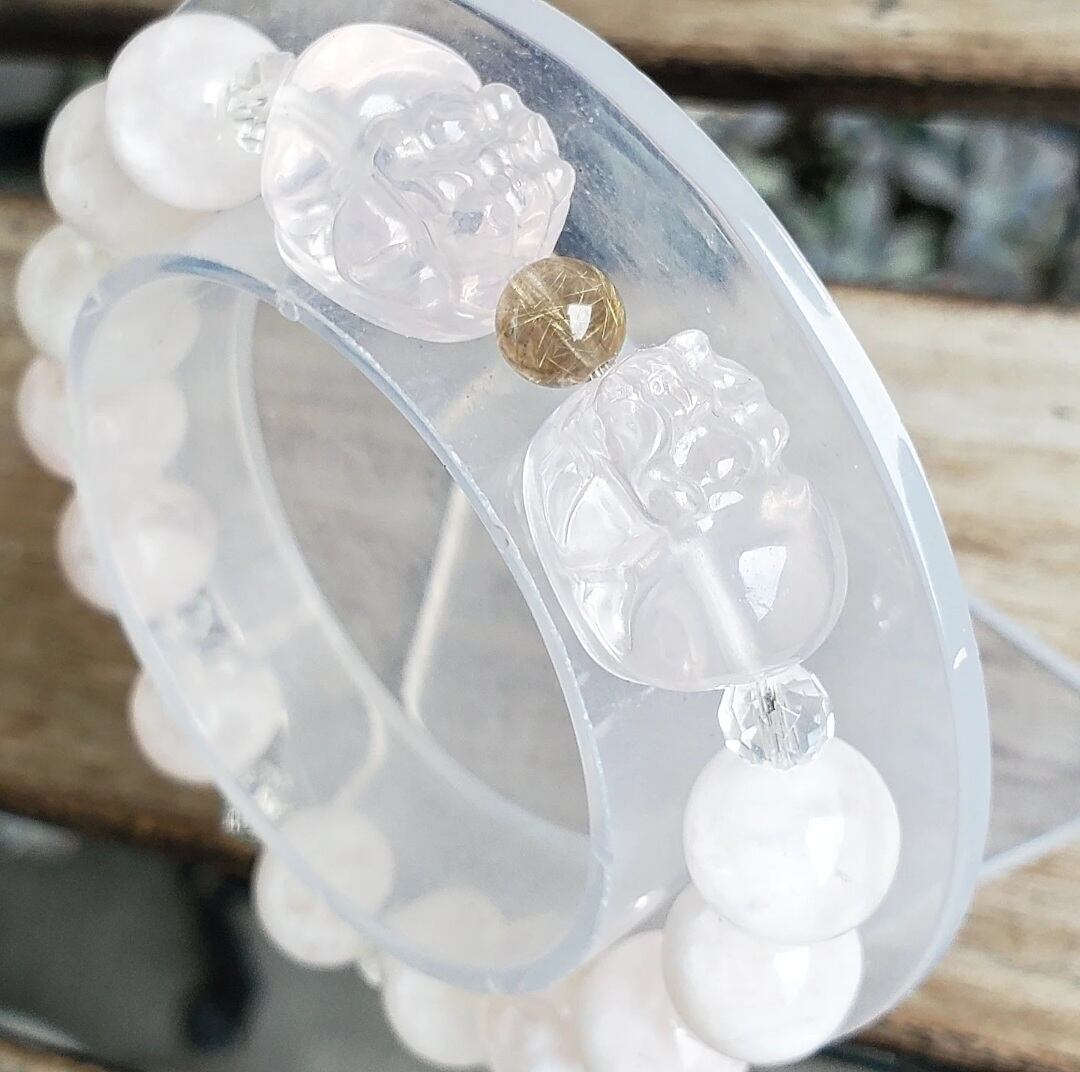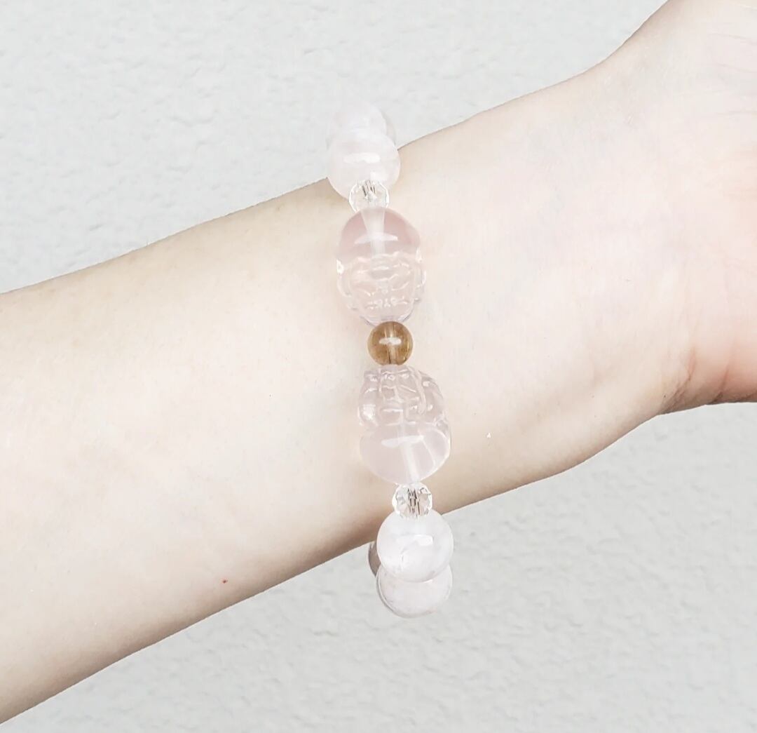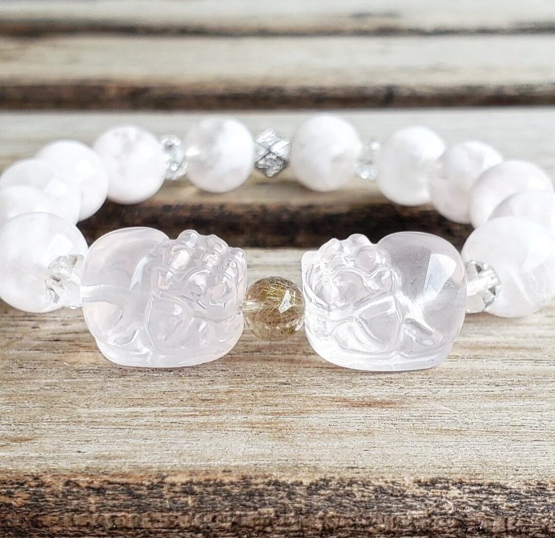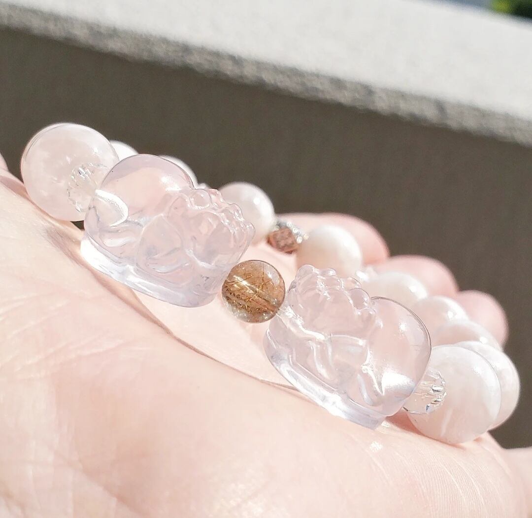〈大玉〉ローズクォーツ(貔貅/ヒキュウ) & セリサイトインローズクォーツ & ルチルインクォーツ & 64面カット水晶 & ボタンカット水晶
