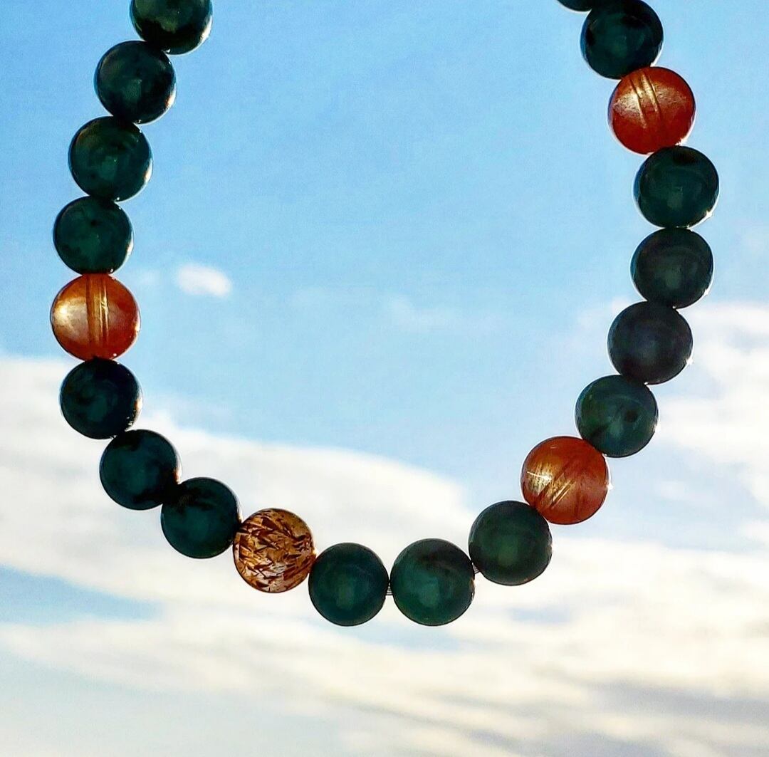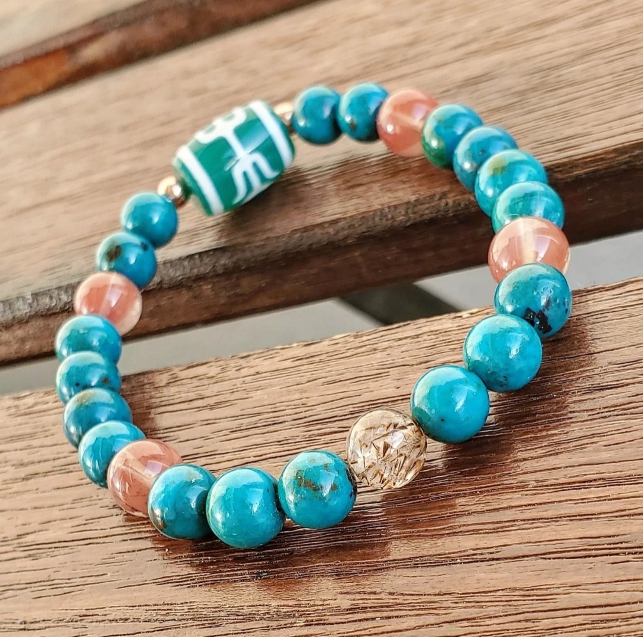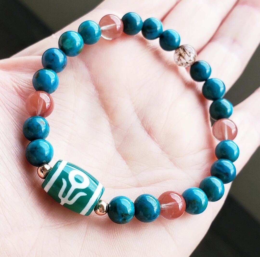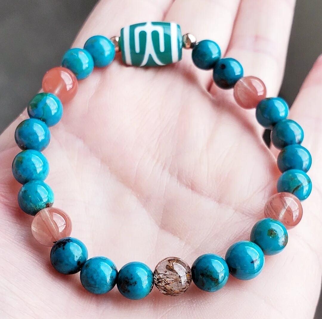 大人(だいじん)天珠 & クリソコラ & アンデシン & カコクセナイトインクォーツ