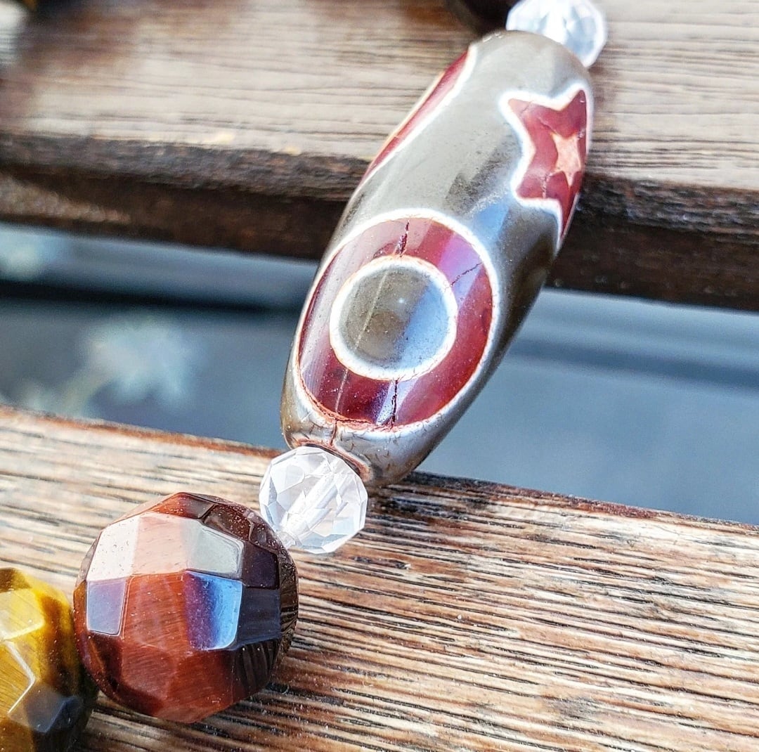 天珠とは、古代からチベットに伝わる聖なるお守りで、災厄・厄難を逃れ、あらゆる幸運・財運を招くと信じられています
