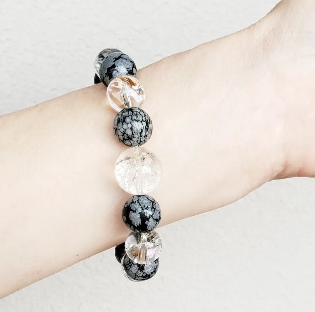 黒地に雪の結晶のようなグレーの斑点模様のあるオブシディアンが、スノーフレークオブシディアンと呼ばれます