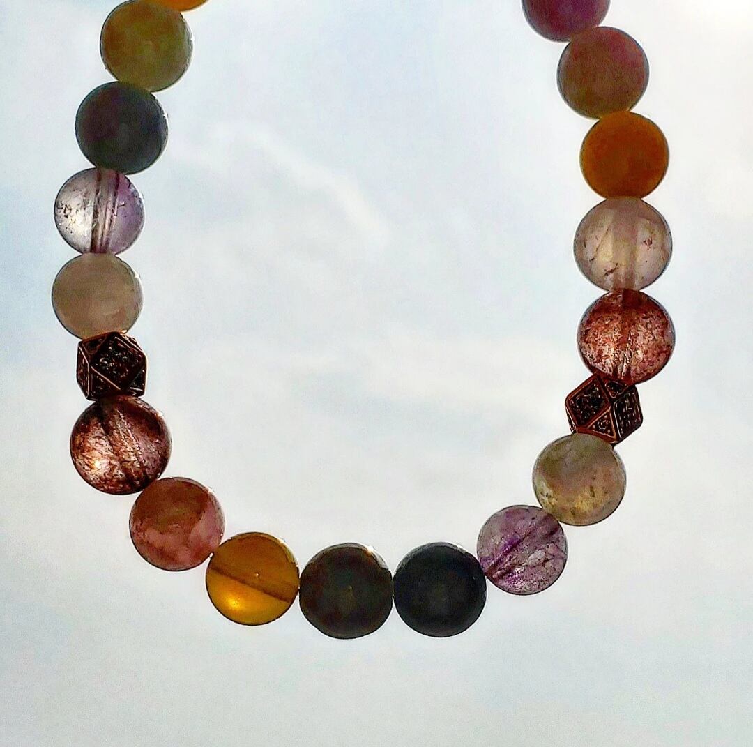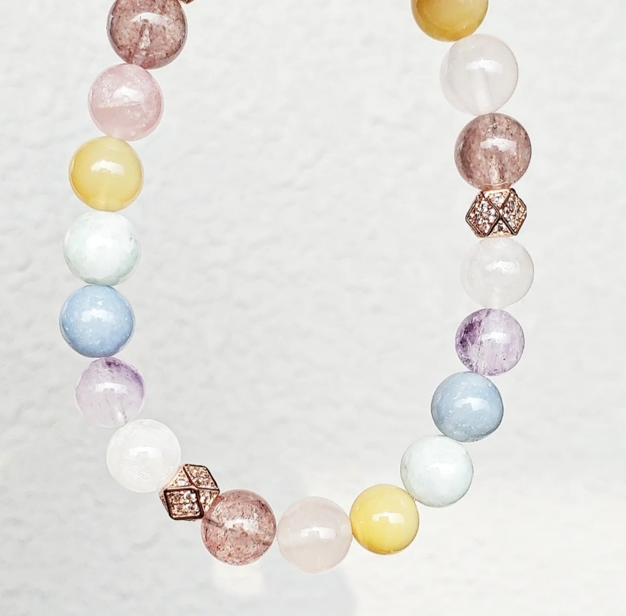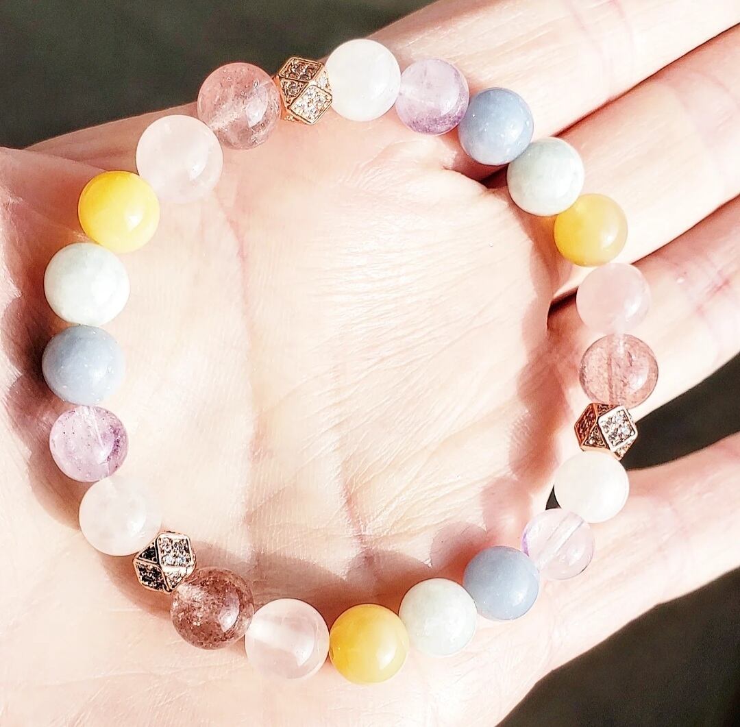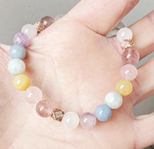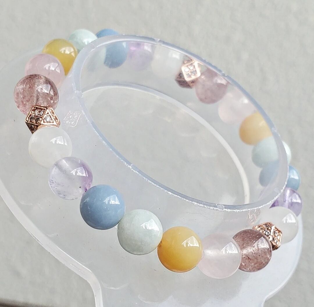 柔らかく優しい色合いのパステルカラーの天然石で組んだ癒しのブレスレットです