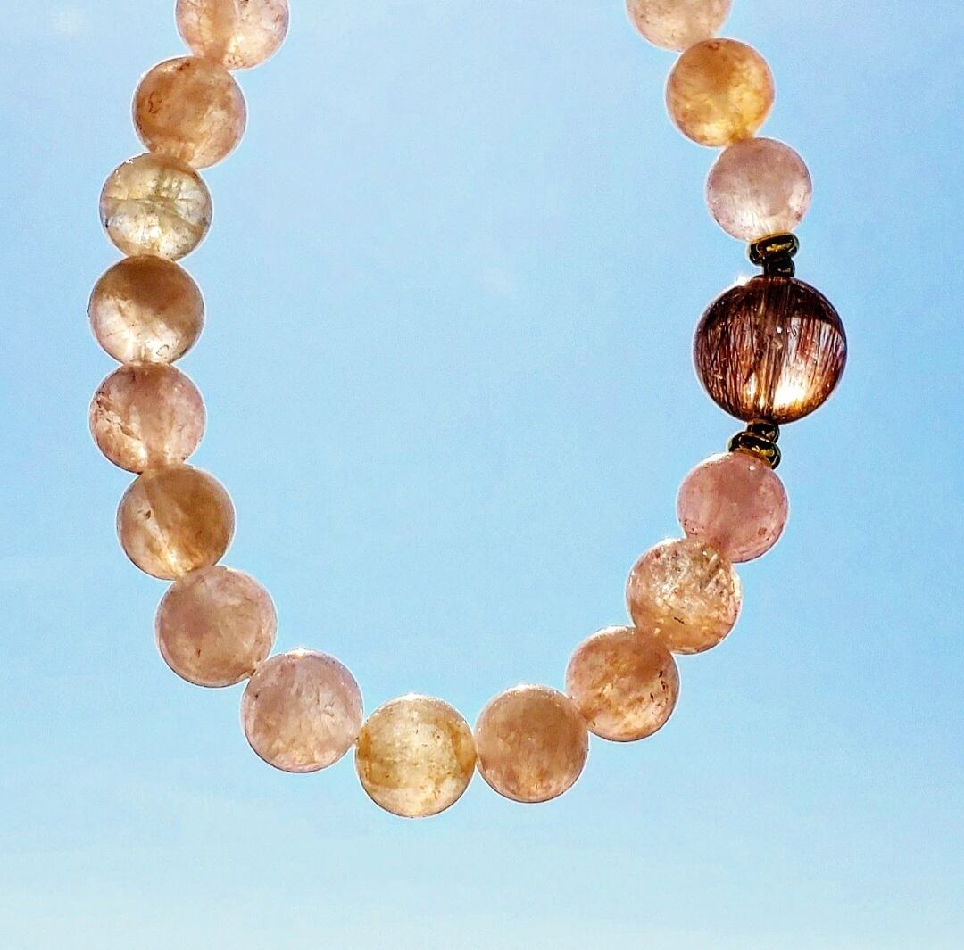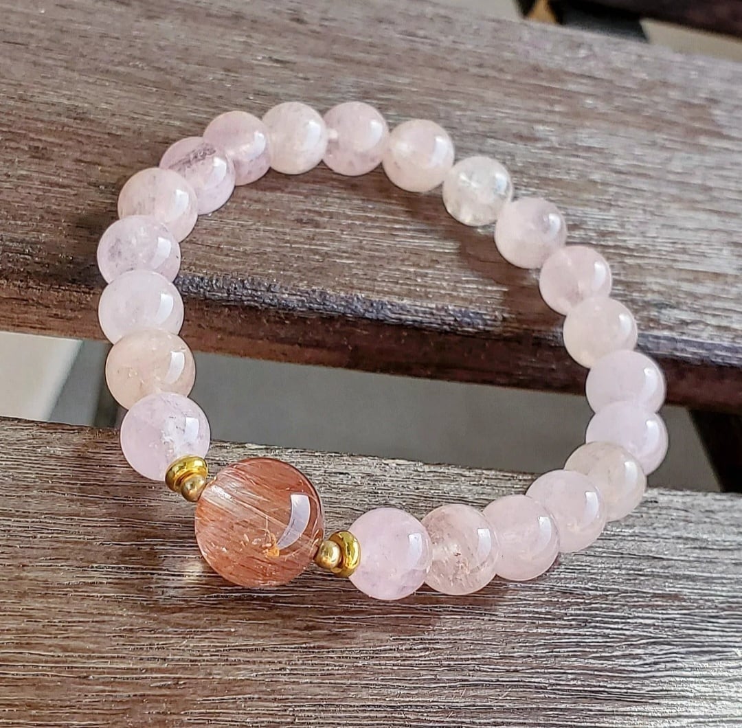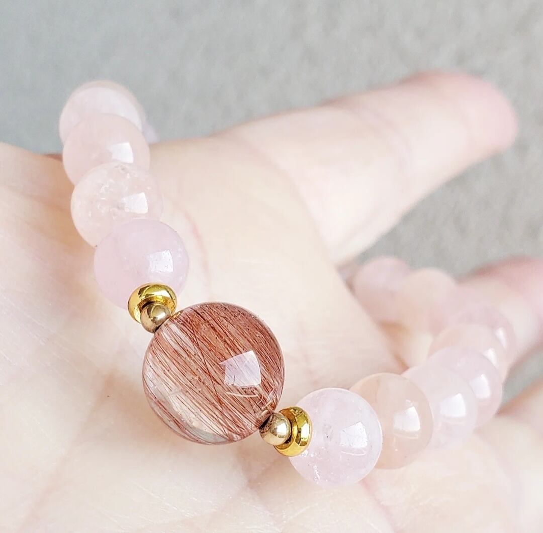レッドルチル イン クォーツ & モルガナイト