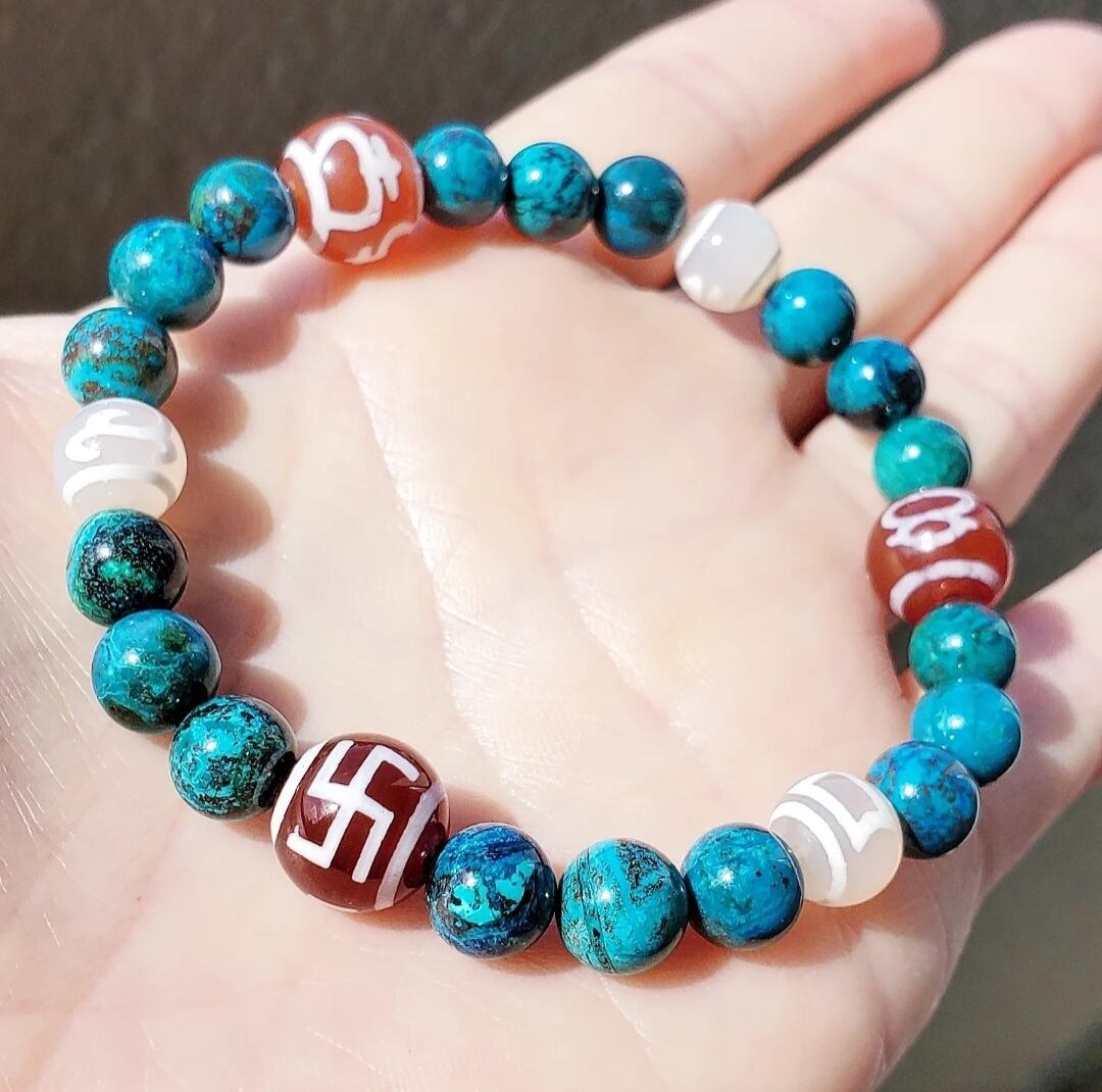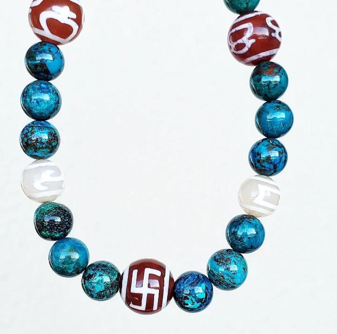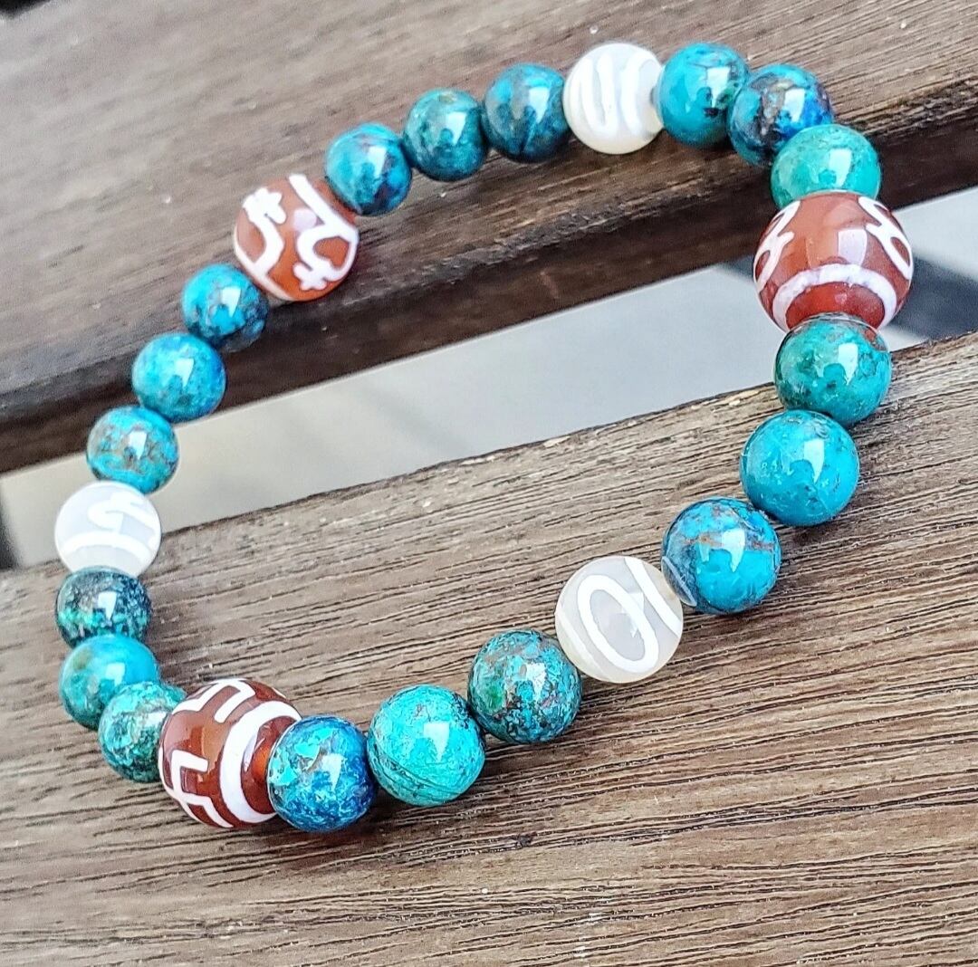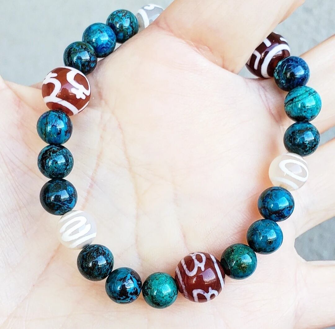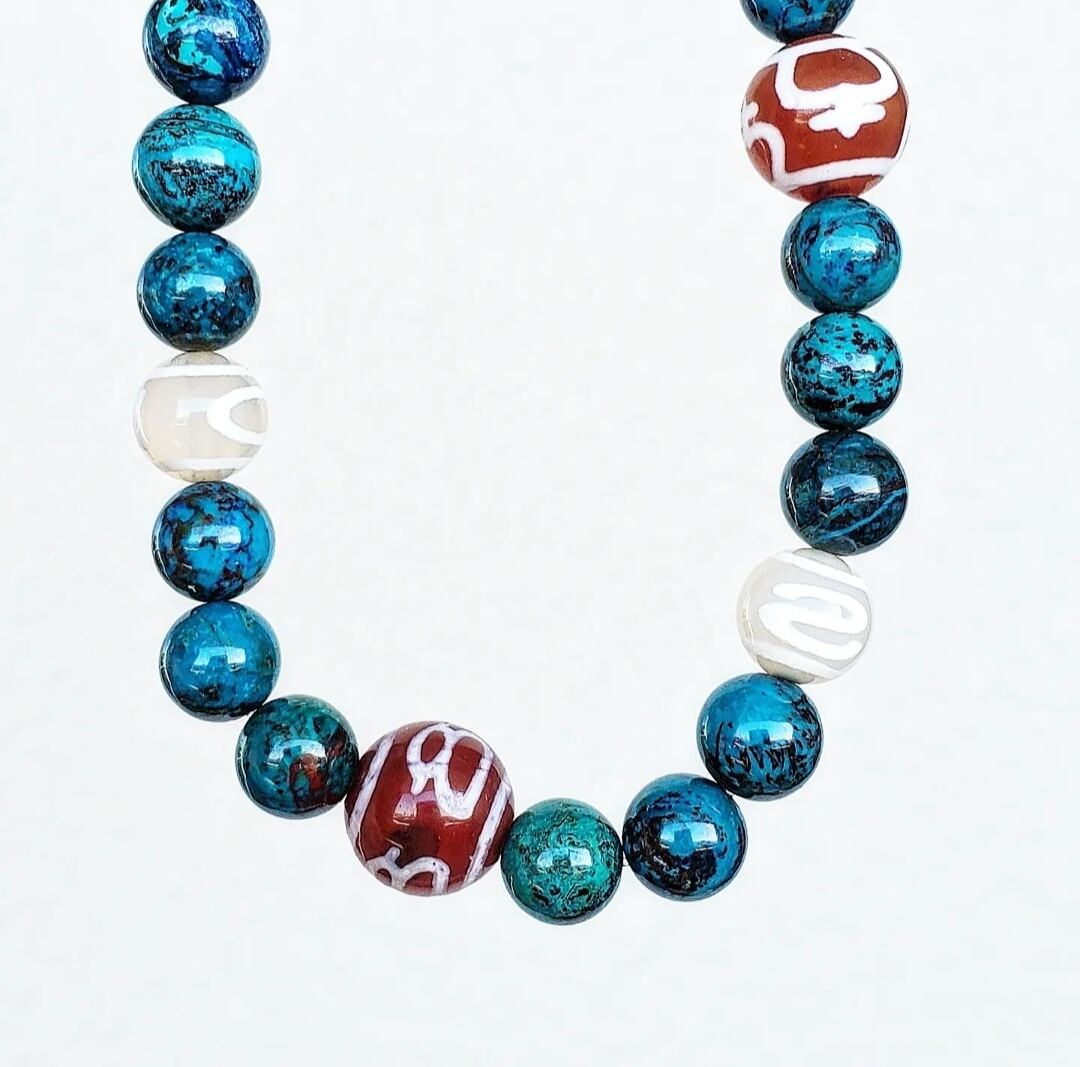 クリソコラ と 6種の天珠(万字/財神/宝瓶/天地/招財/如意)