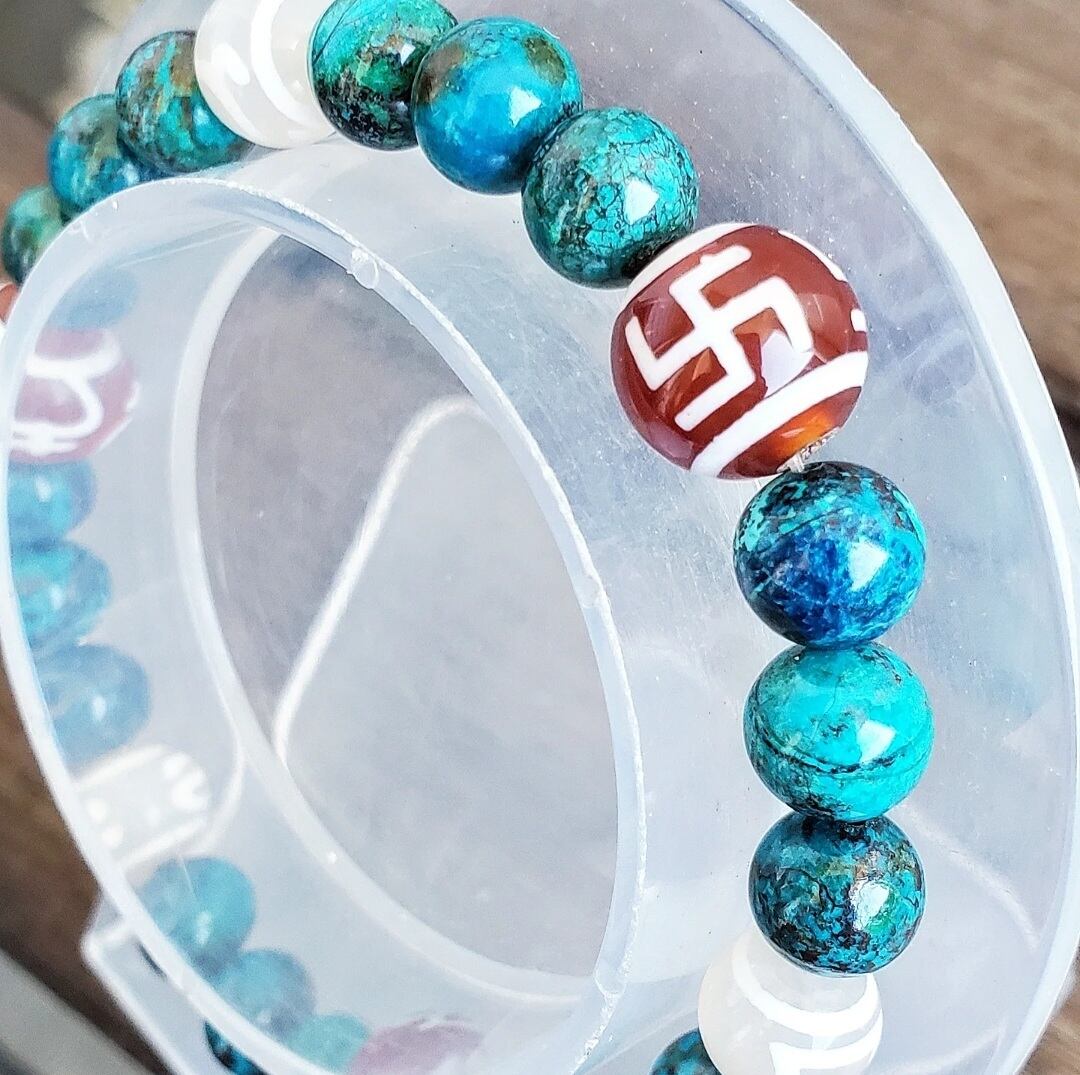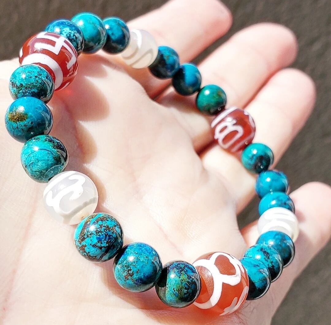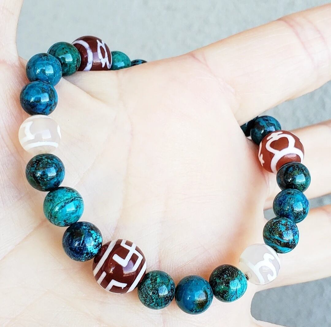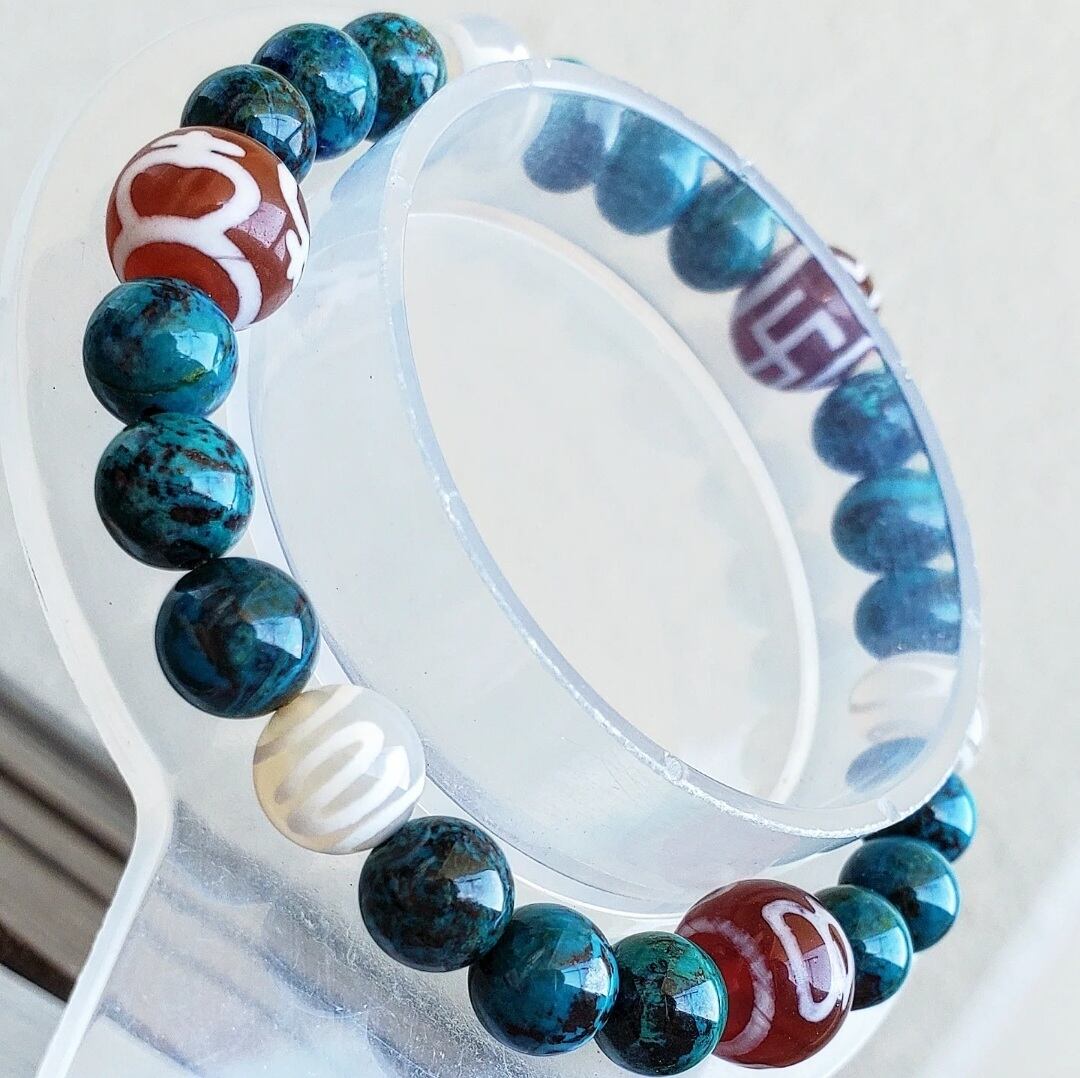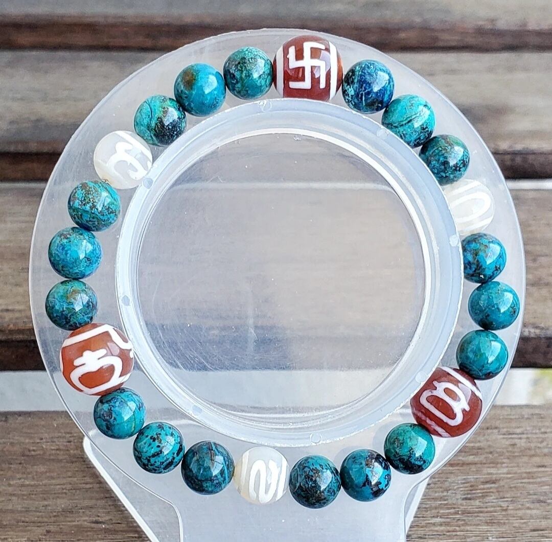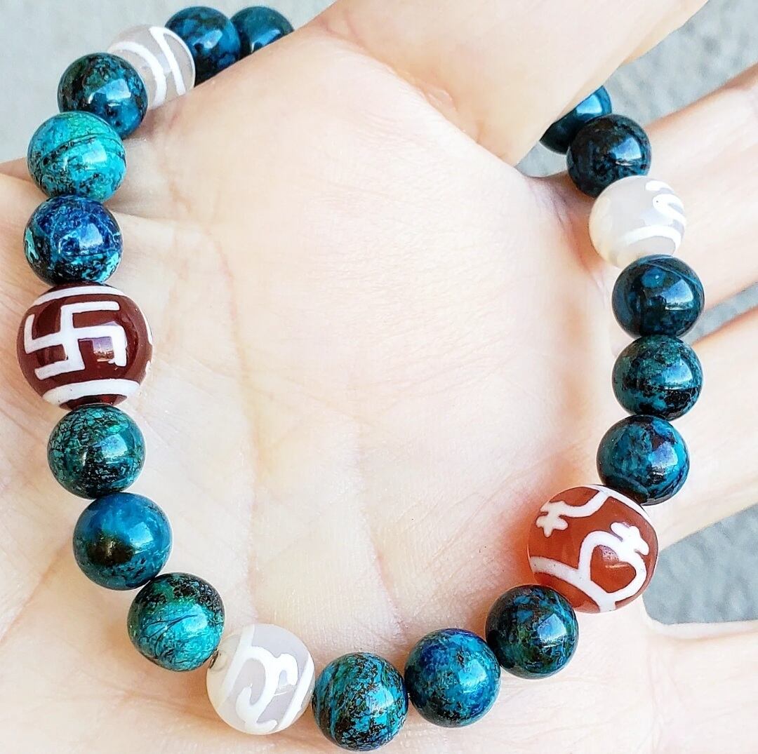 クリソコラ と 6種の天珠(万字/財神/宝瓶/天地/招財/如意)