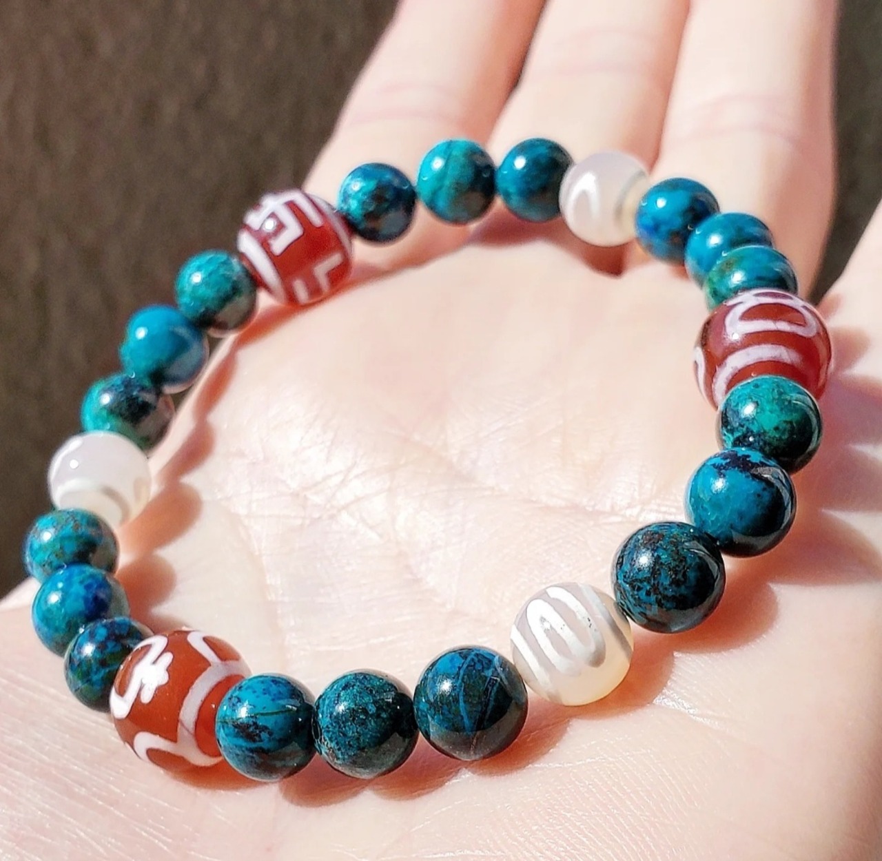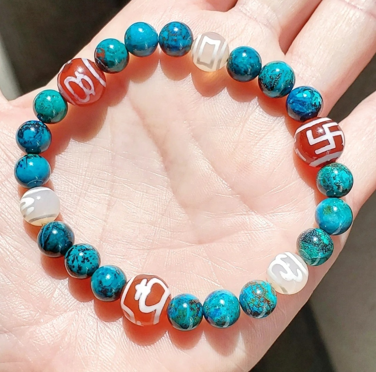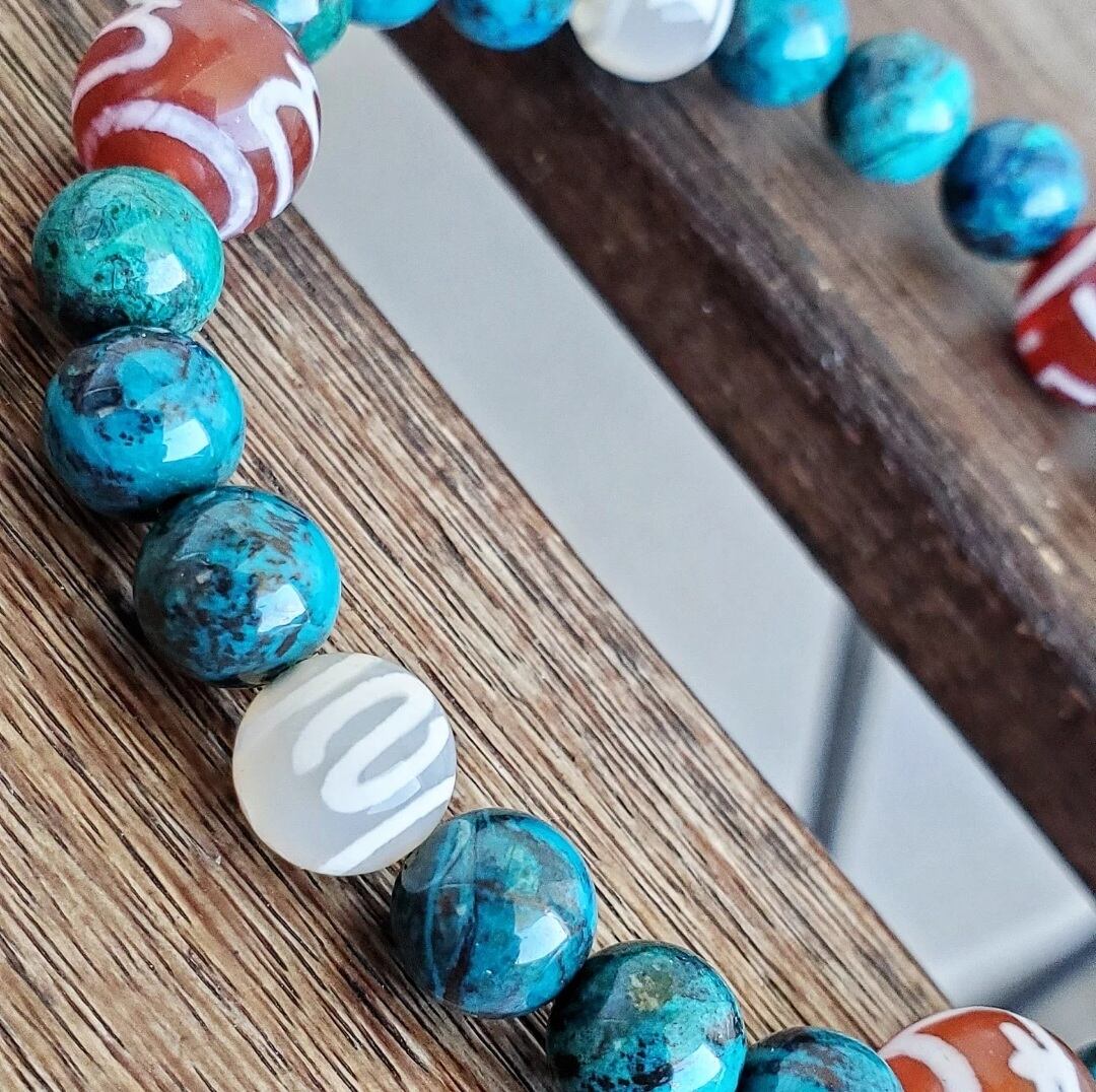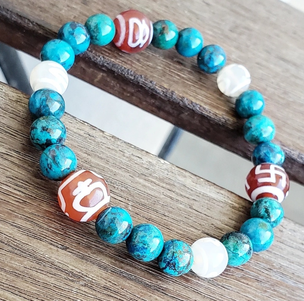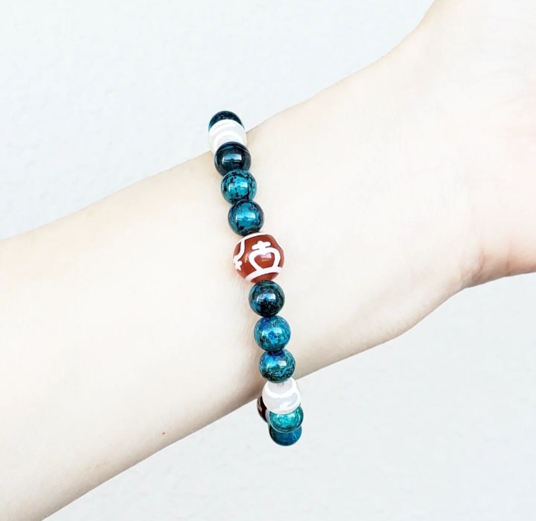 クリソコラ と 6種の天珠(万字/財神/宝瓶/天地/招財/如意)