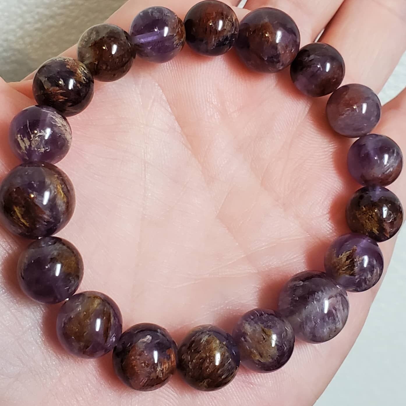 紫色のアメジストの中に様々な内包物(インクルージョン)が美しいガーデンアメジスト(庭園紫水晶)