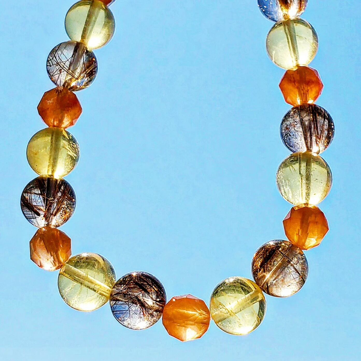 タイガールチルインクォーツ&ラビットヘアクォーツ&イエローフローライト