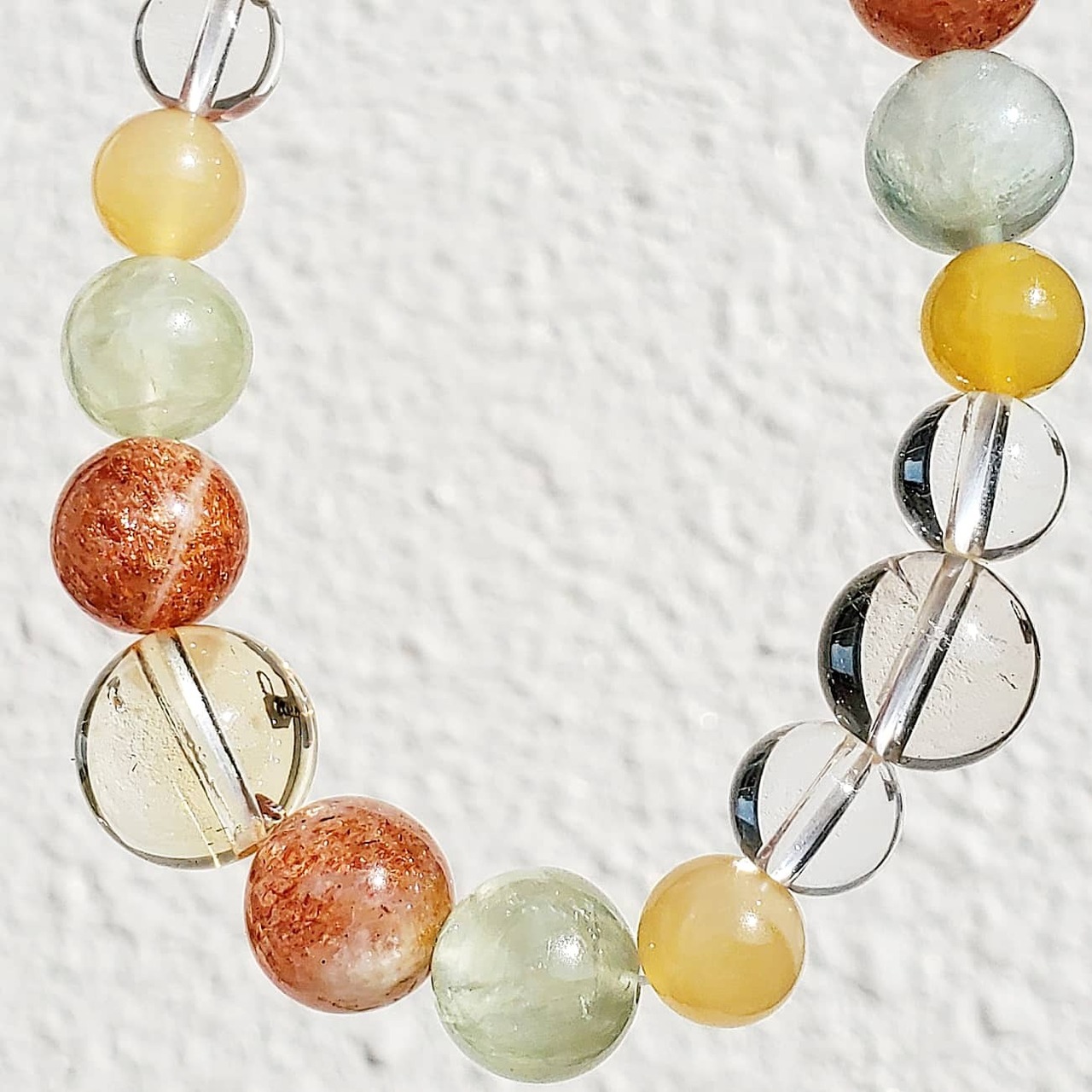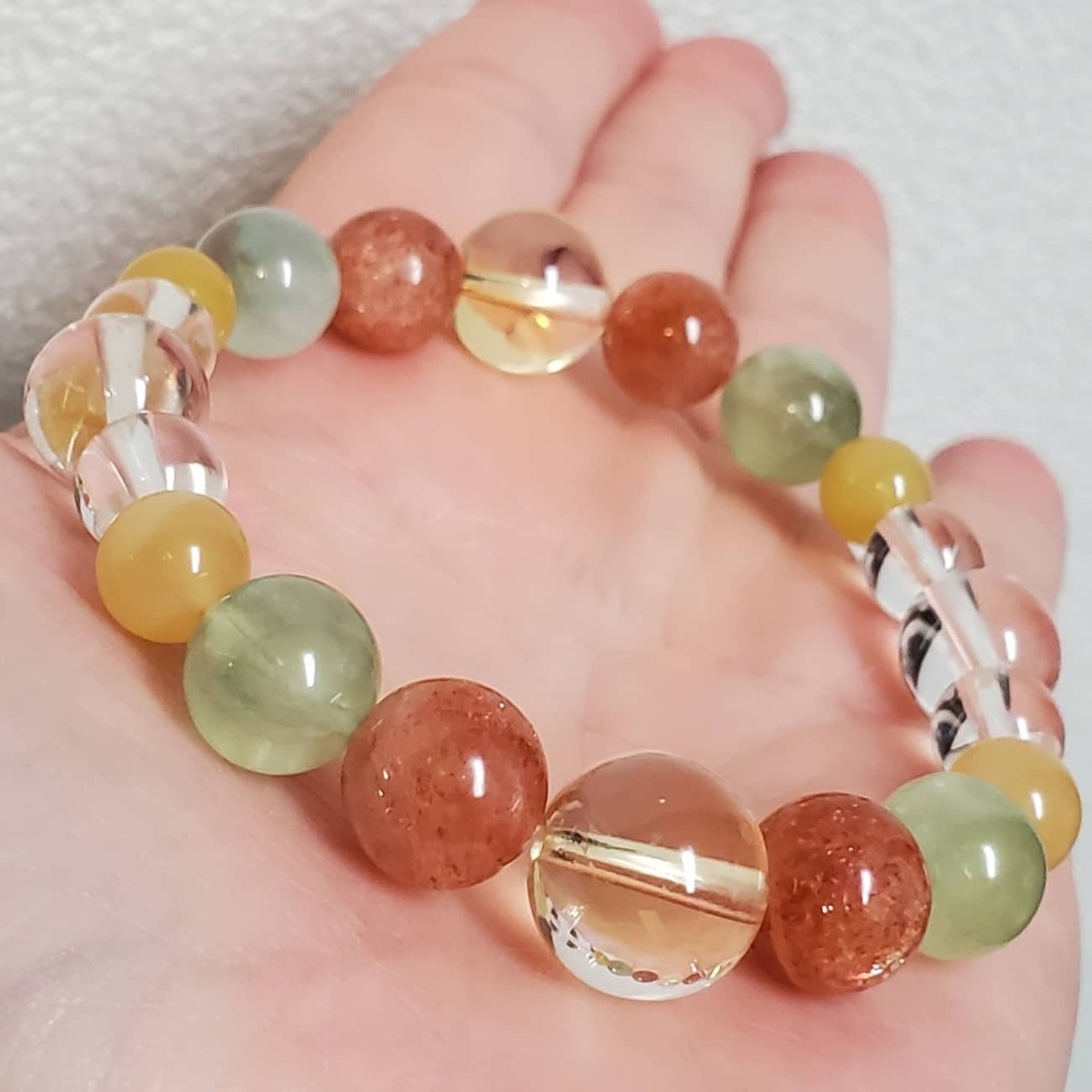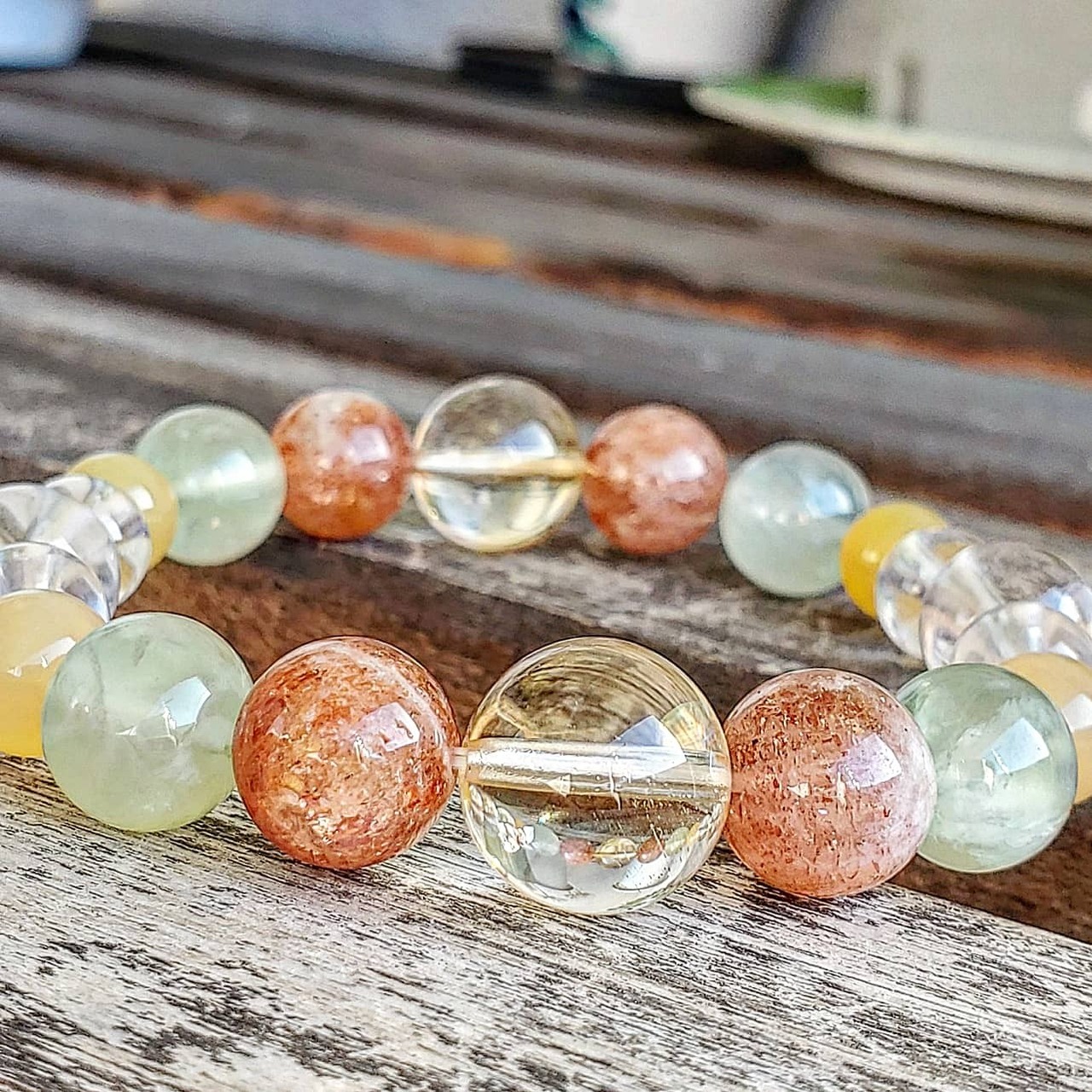 シトリン&ストロベリーサンストーン&プレナイト&イエローオパール&水晶