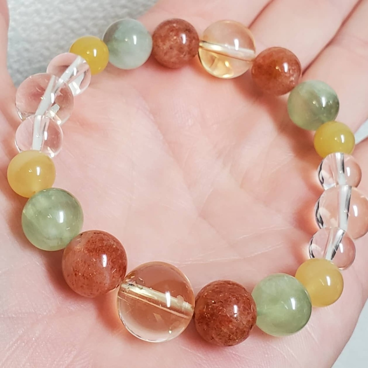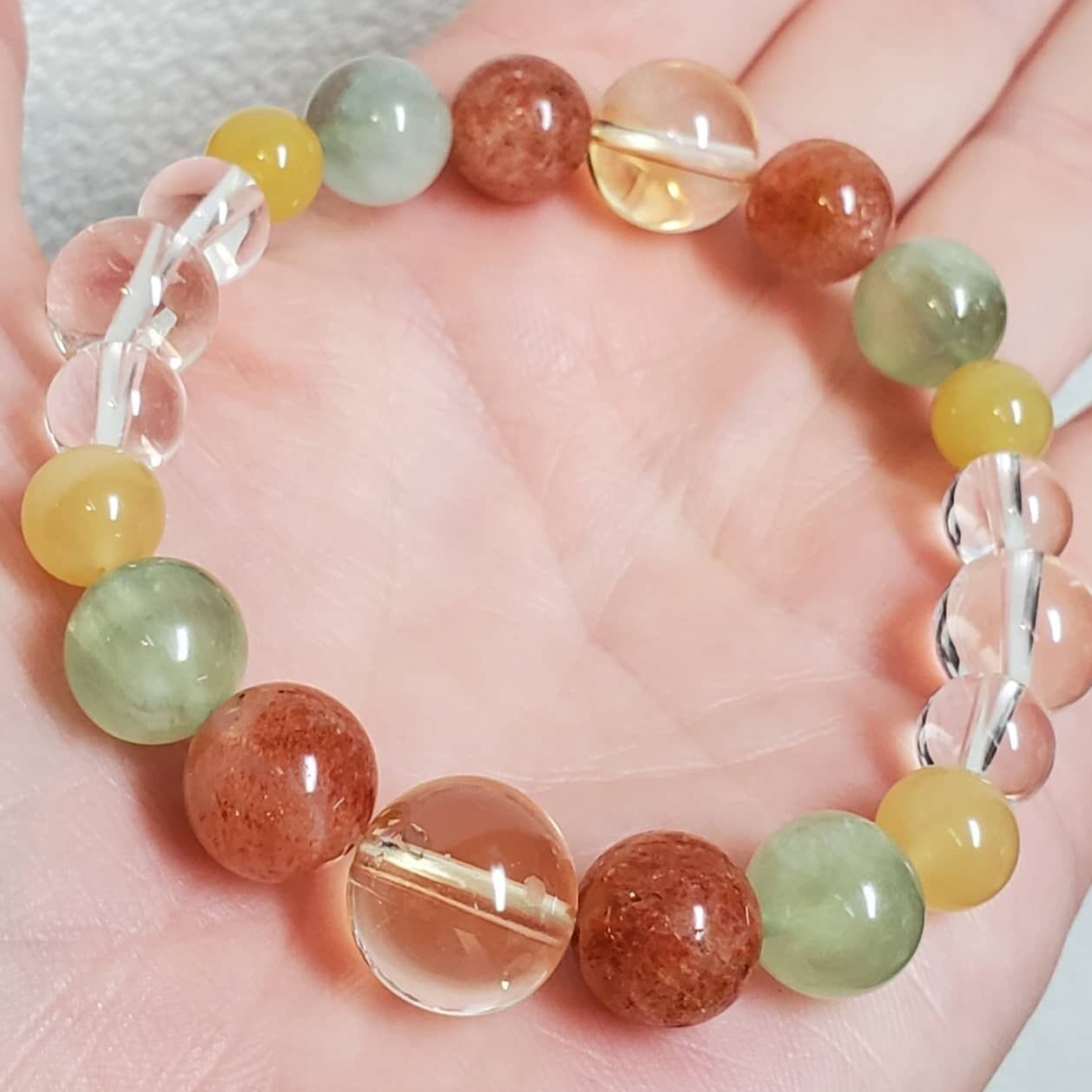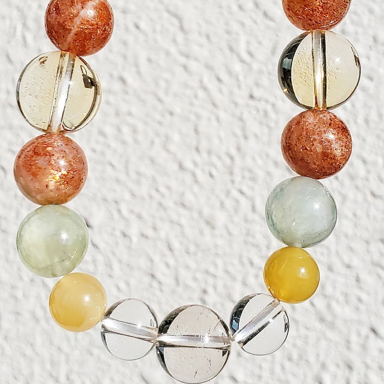 シトリン&ストロベリーサンストーン&プレナイト&イエローオパール&水晶