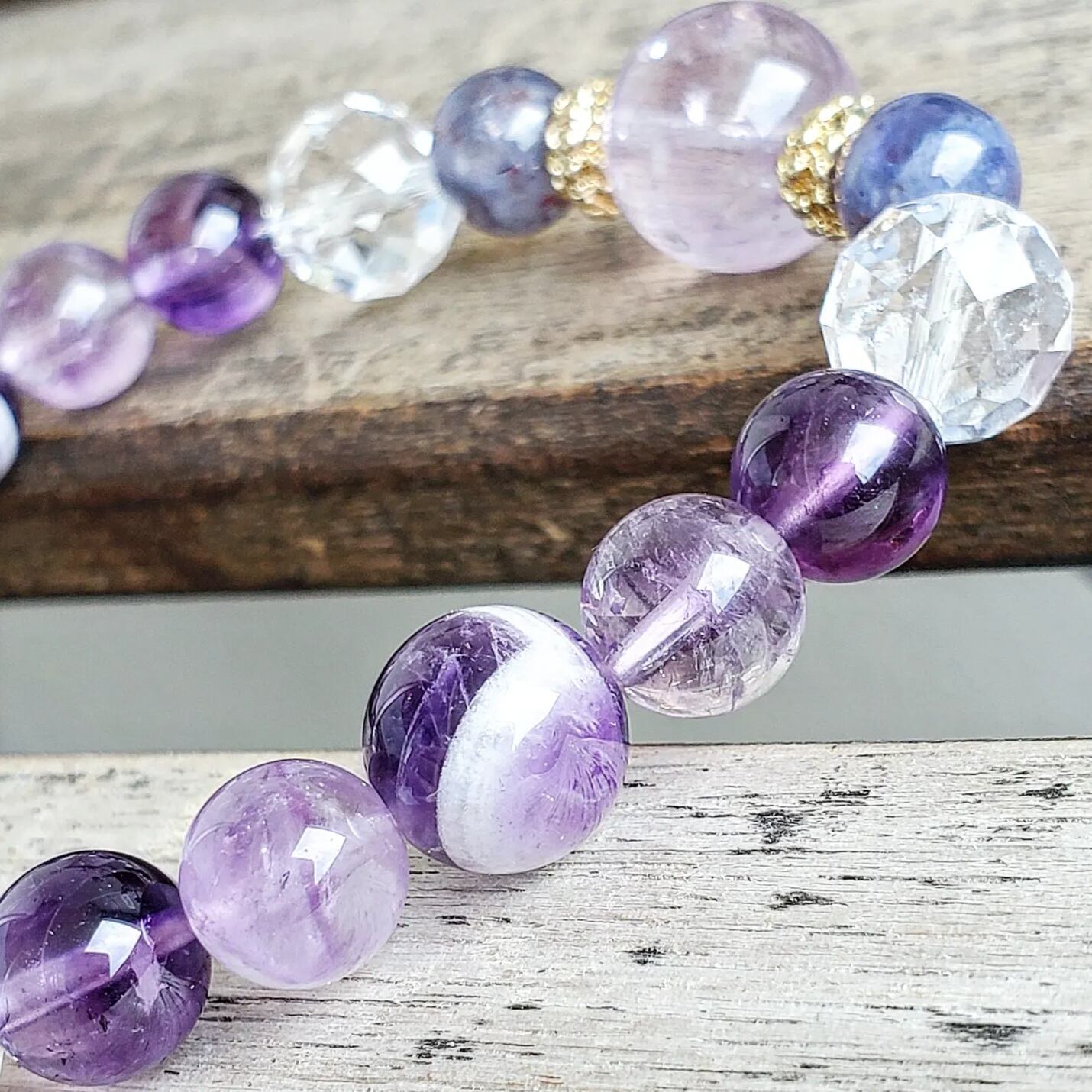 エレスチャルアメジスト&アメジスト&シェブロンアメジスト&アイオライトサンストーン&64面カット水晶
