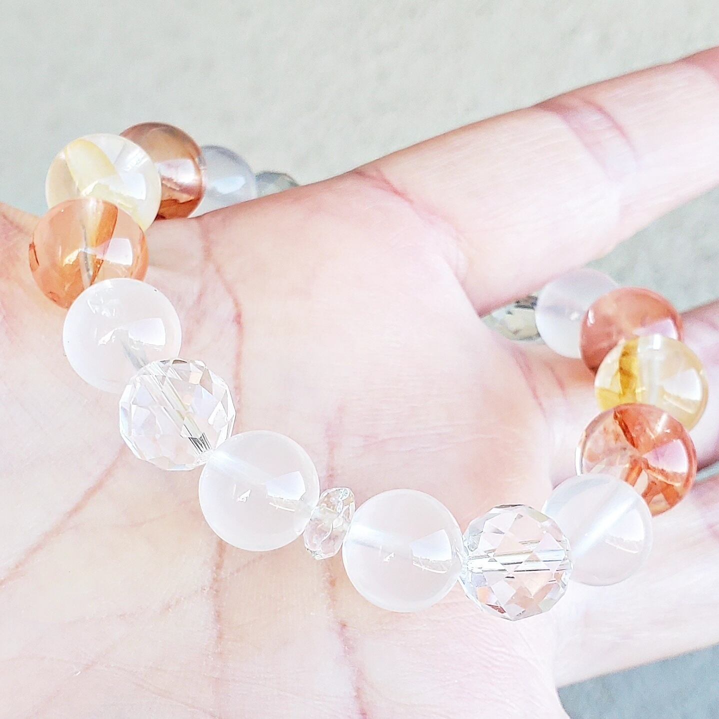 天然オーロラクォーツ & K2ムーンクォーツ & 64面カット水晶 & ボタンカット水晶