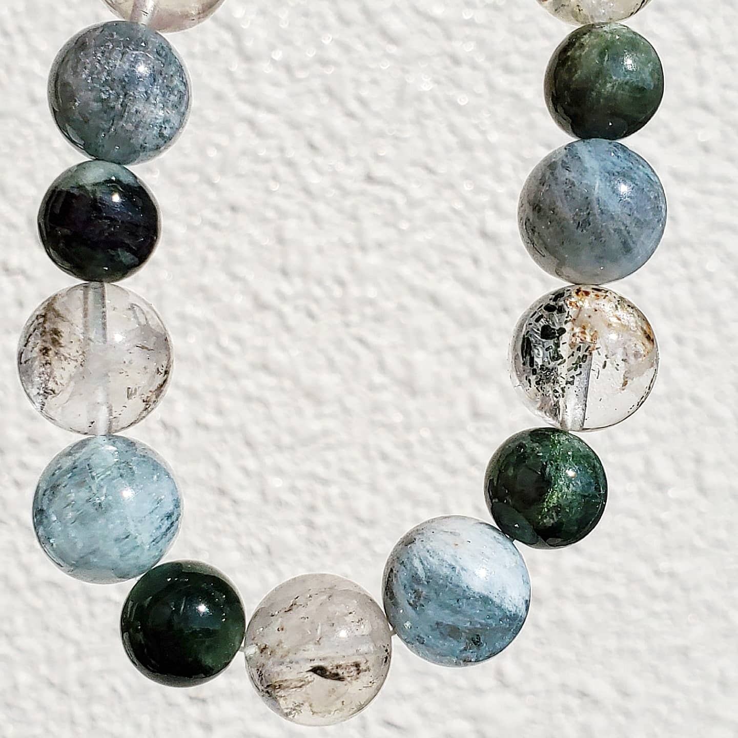 〈大玉〉デンドライト(デンドリティック)インクォーツ&ホワイトブラックアクアマリン&ネフライト