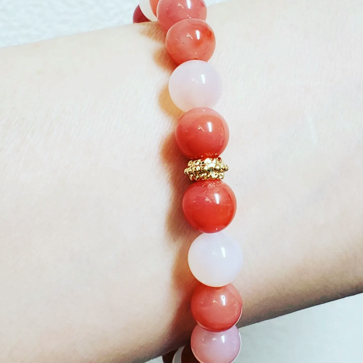 その中でも白~ピンク系を集めた8㎜ブレスレットです