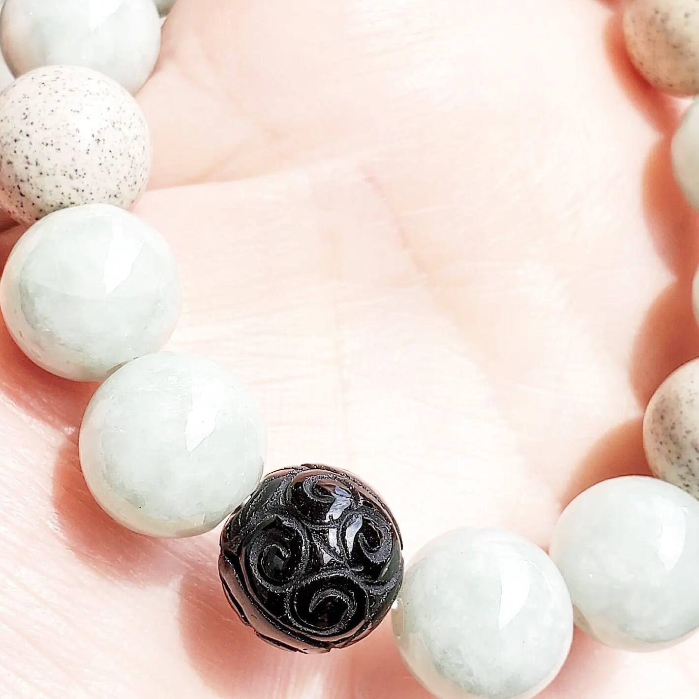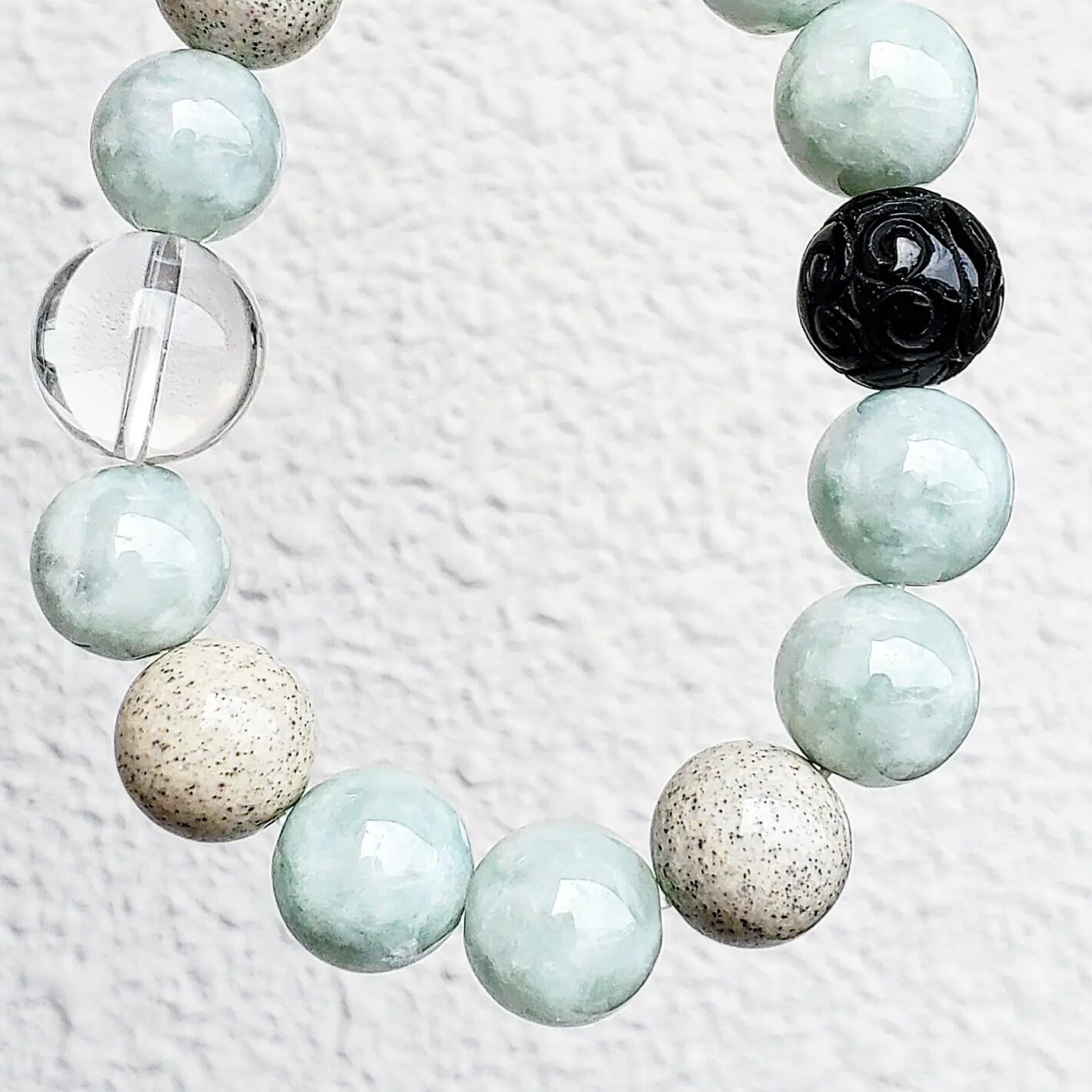〈大玉〉モリオン(マニ車回紋珠)&ミャンマー翡翠(ひすい)&北投石(ほくとうせき)&水晶