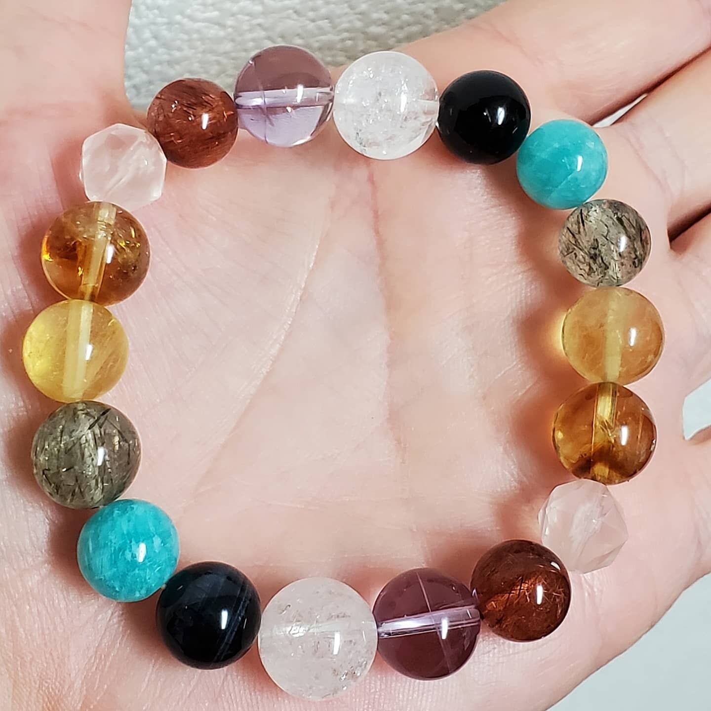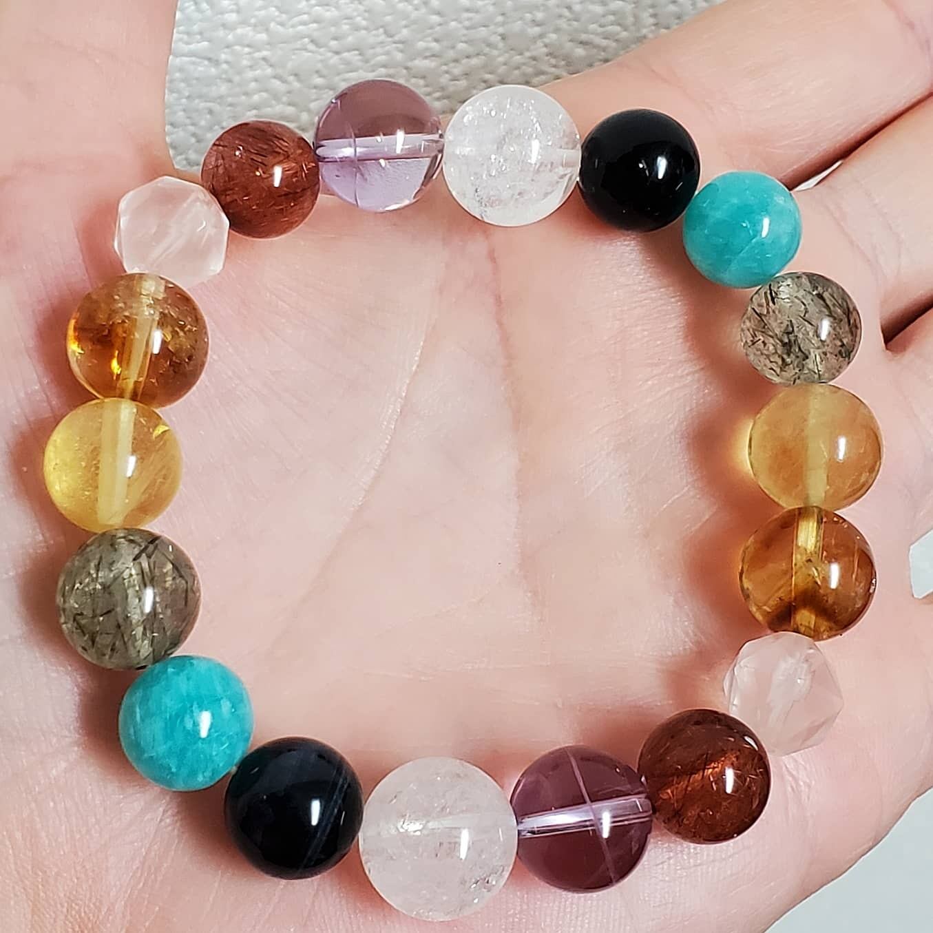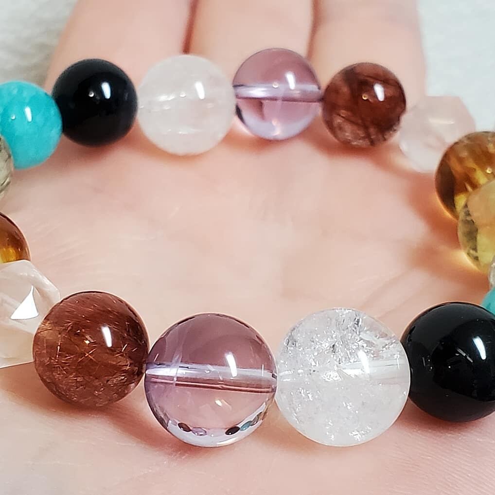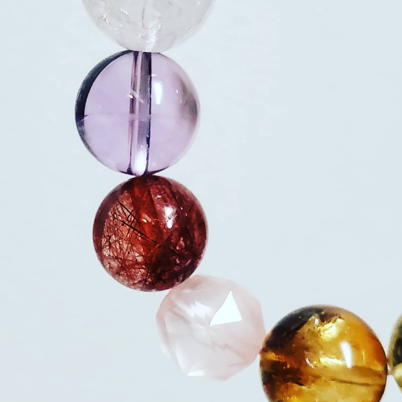 ピンクアメジスト&レッドルチルクォーツ&ローズクォーツ(スターカット)&レインボーシトリン&イエローフローライト&グリーンエピドート&アマゾナイト&ホークスアイ&天然アイリスクォーツ