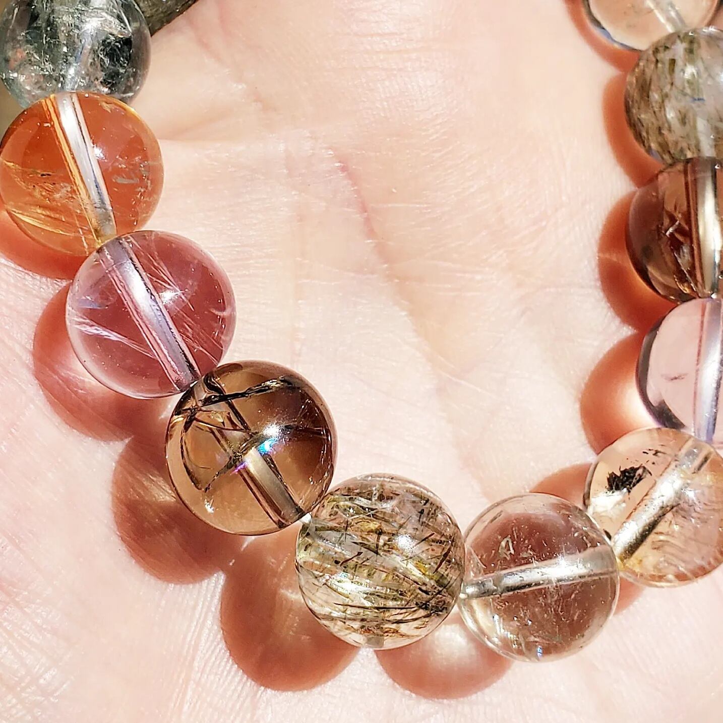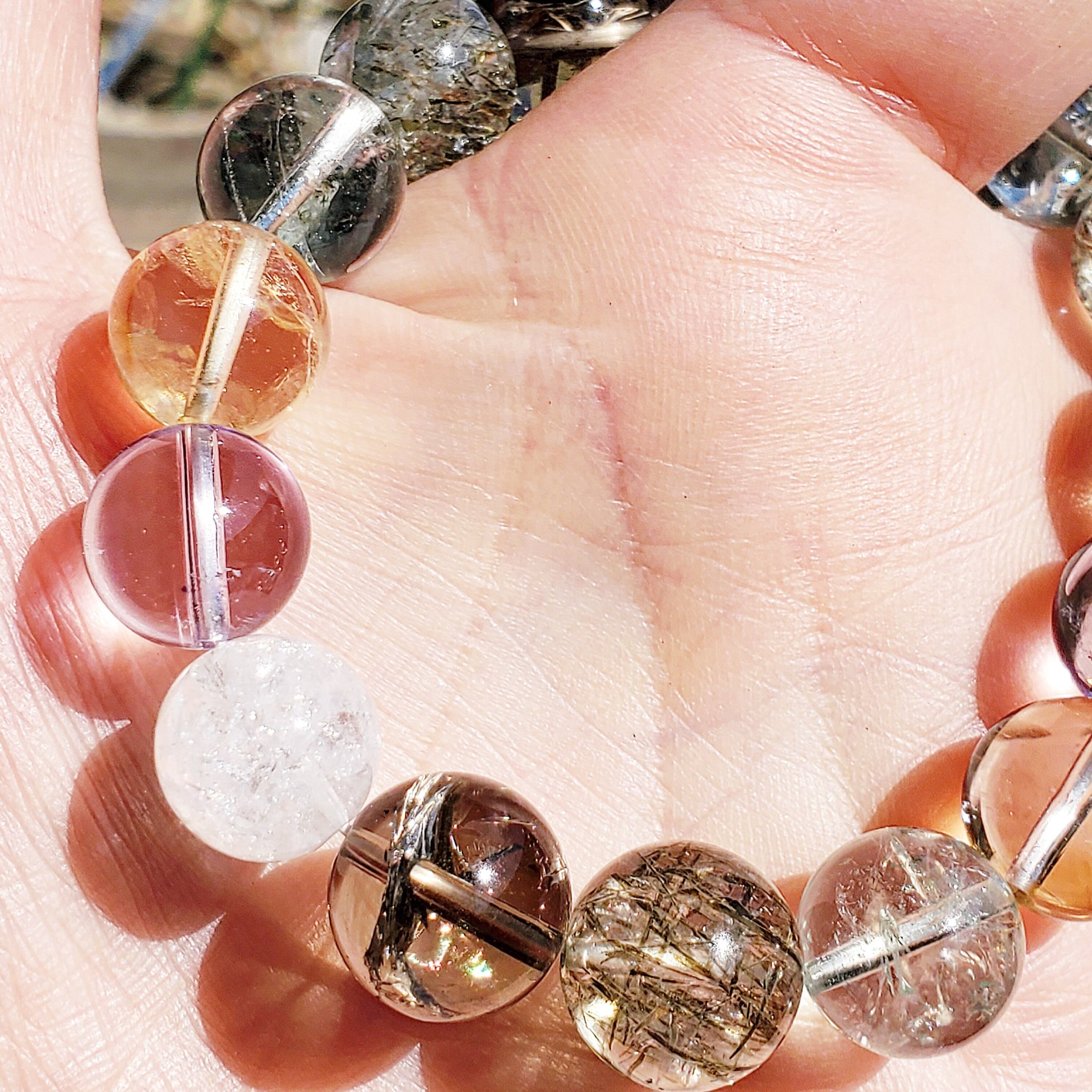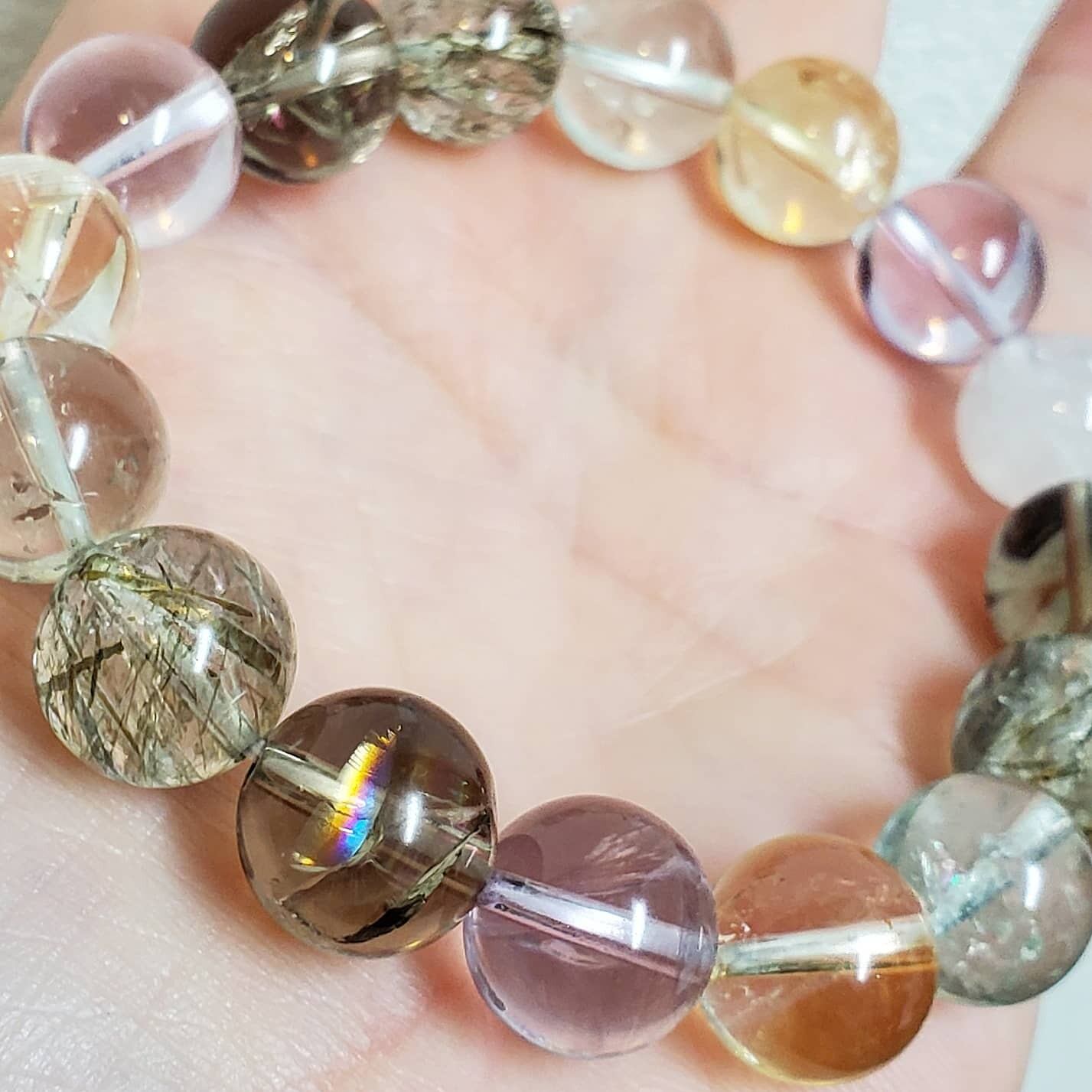 〈大玉〉ピンクアメジスト&シトリン&グリーンアメジスト&グリーンエピドートインクォーツ&アイリススモーキークォーツ&天然アイリスクォーツ