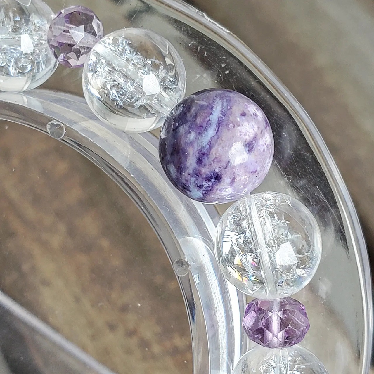 ティファニーストーン&アメジスト(ボタンカット)&レーザーアイリスクォーツ