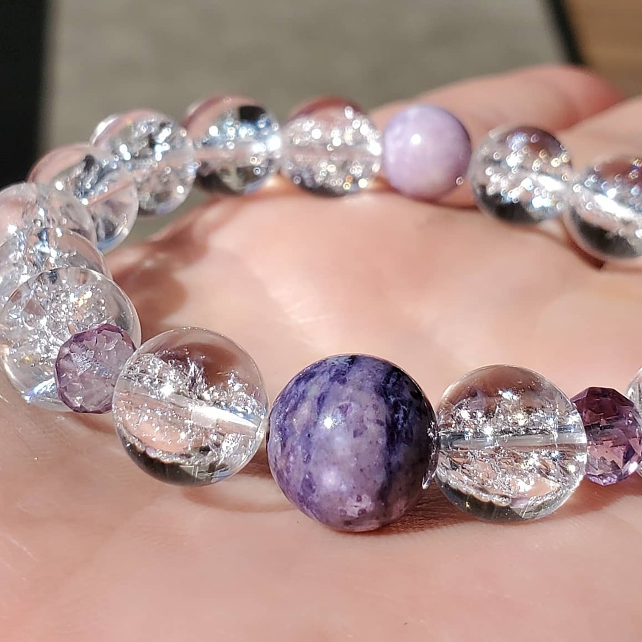 レーザーアイリスクォーツ(爆裂水晶)は、天然の水晶に超音波で人工的にクラック(ひび割れ)を入れたもので、