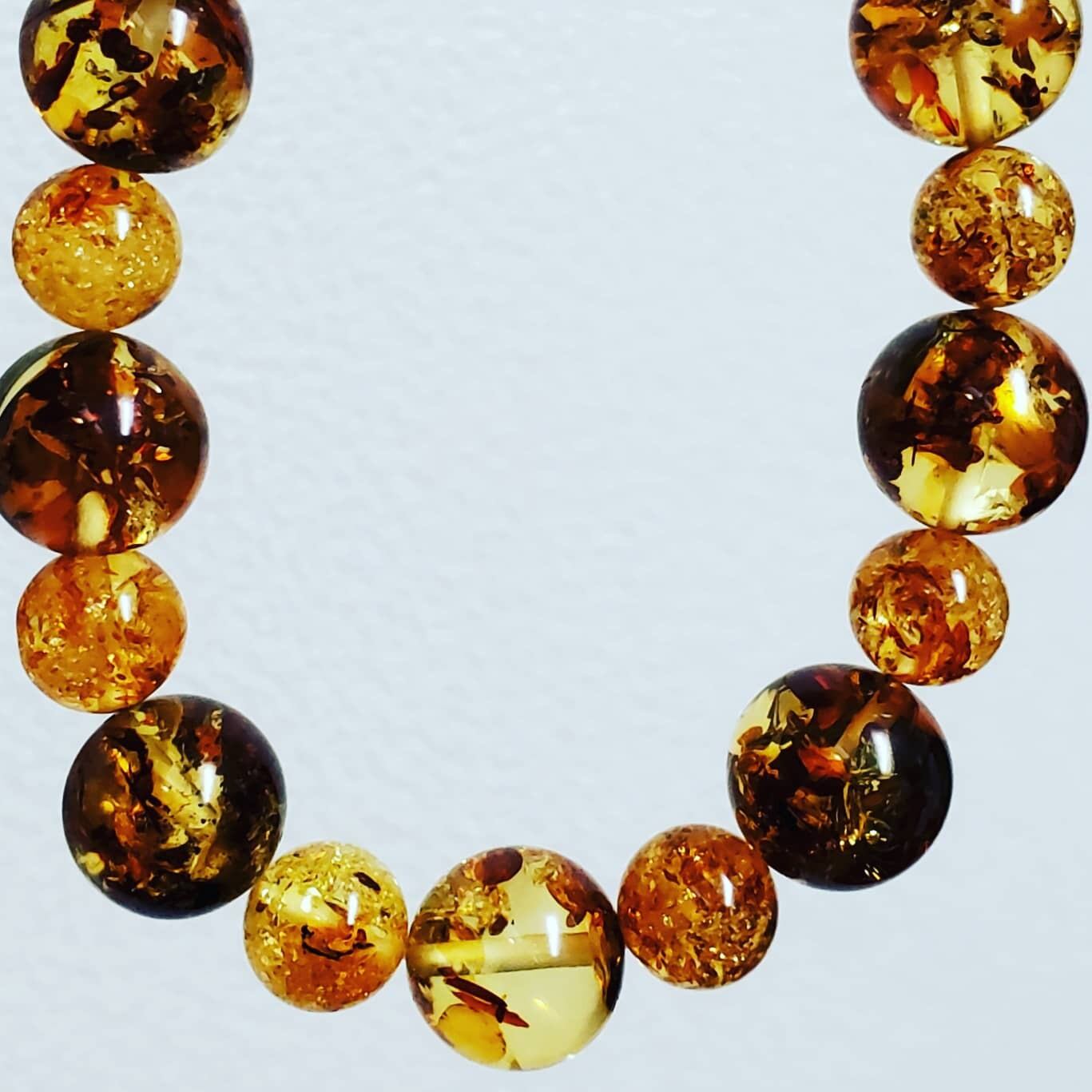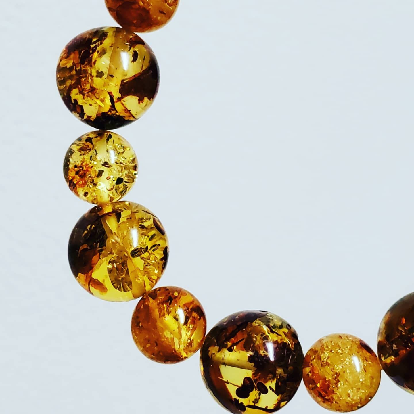 ワイルドで濃いめカラーの大玉12㎜珠と繊細でキラキラカラーの9㎜珠で組んだハニーナッツアンバーのブレスレットです