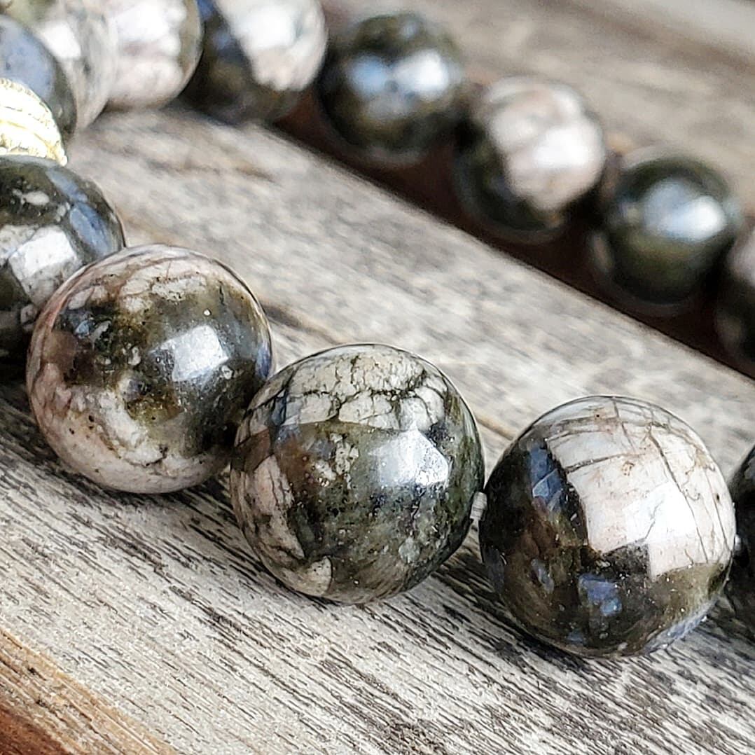 ブルーオパール、カルサイト、マグネタイトなど様々な鉱物が混ざりあい、一粒一粒が色も模様も個性的でなかなか珍しいケセラストーン