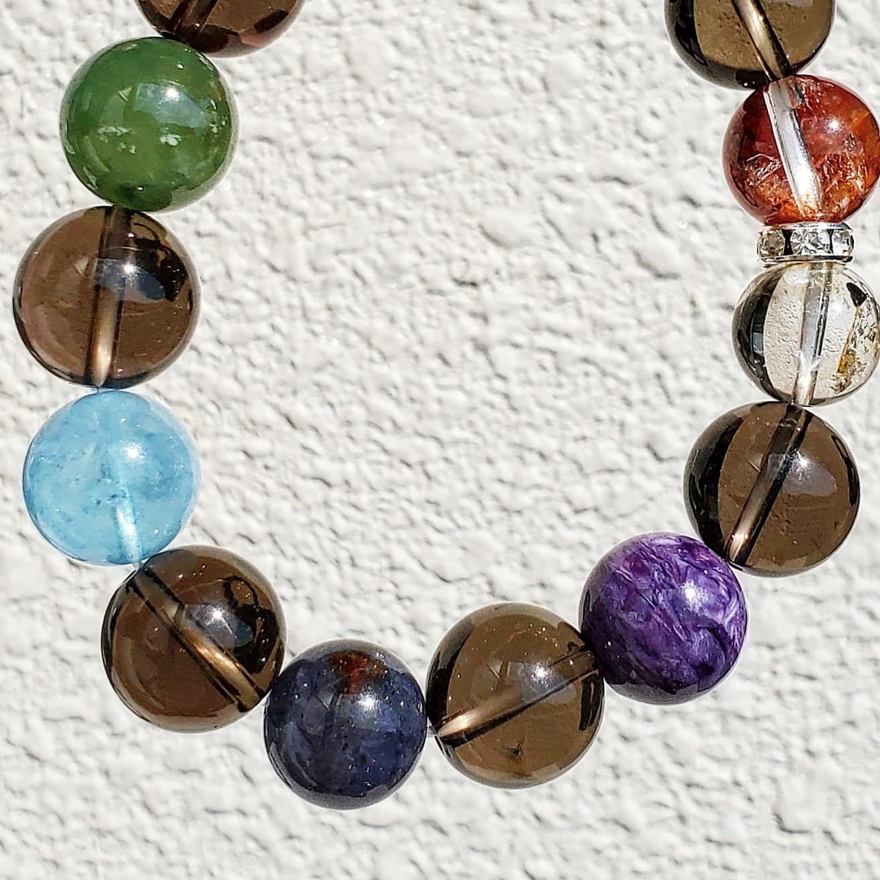 〈大玉〉エレスチャルクォーツ&ヘマタイトインクォーツ&オレンジラビットヘアクォーツ&シトリン&アイドクレース&アクアマリン&アイオライトサンストーン&チャロアイト&スモーキークォーツ