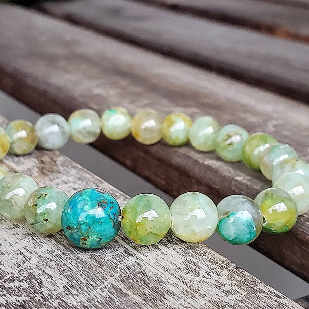 アズライトやマラカイト等と混ざり合うため、色々な個性を楽しめる石です