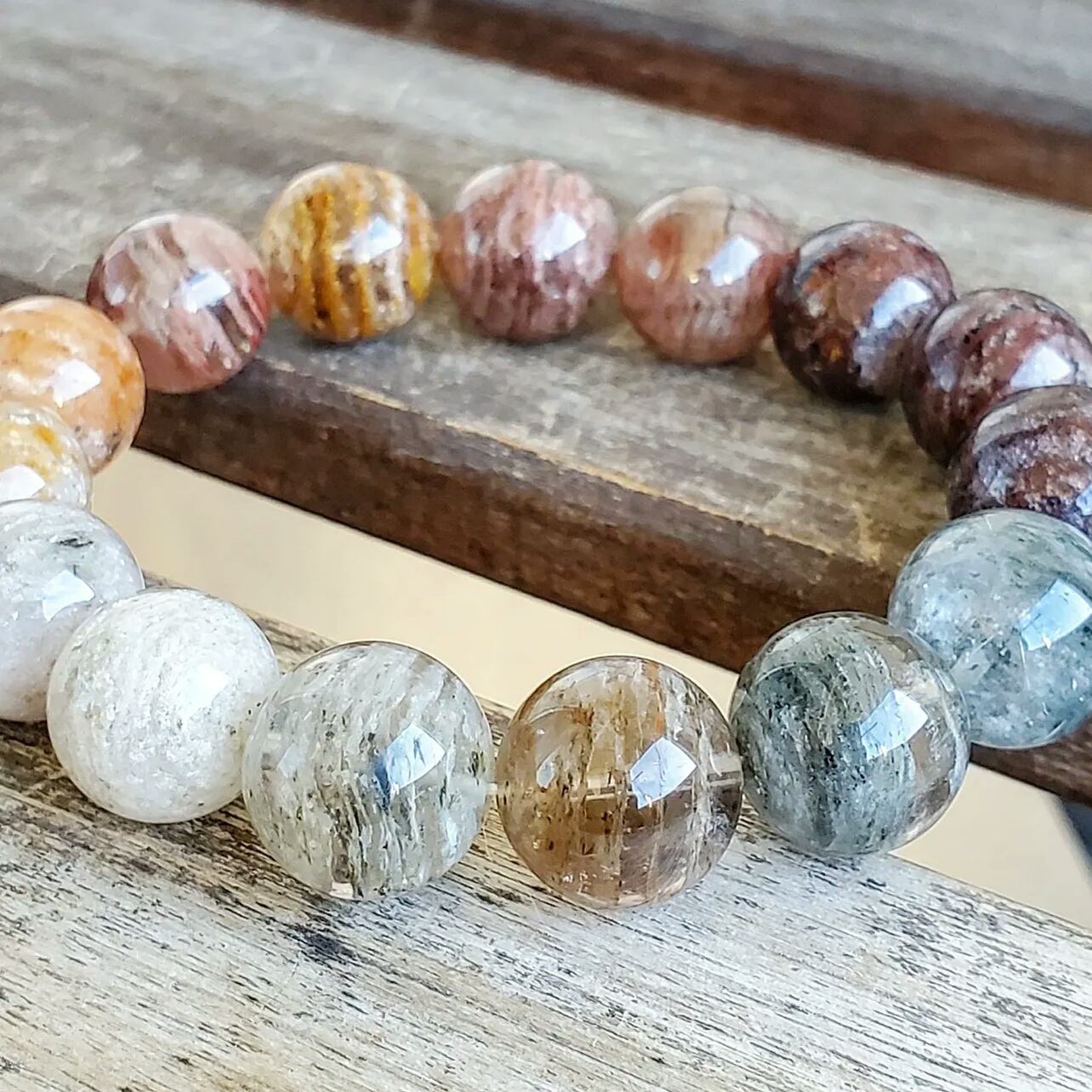 様々な色味の千層龍神ガーデンファントムクォーツをグラデーションで組んだブレスレットです