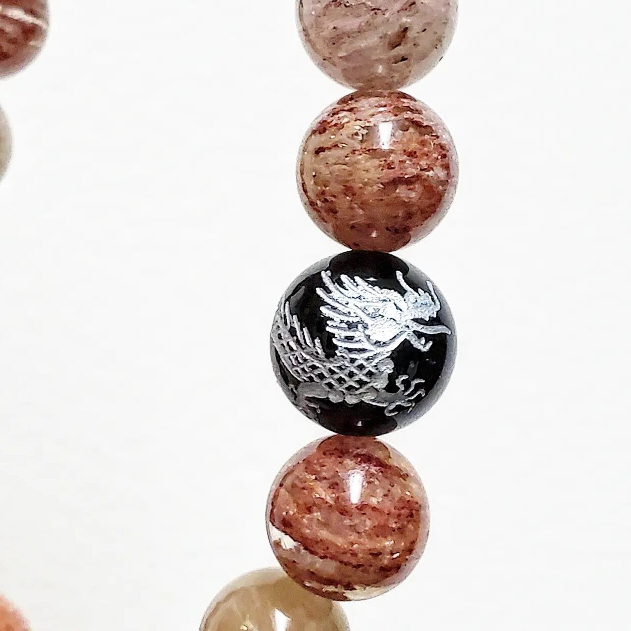千層龍神ガーデンファントムクォーツ&オニキス(五爪皇帝銀龍彫り)