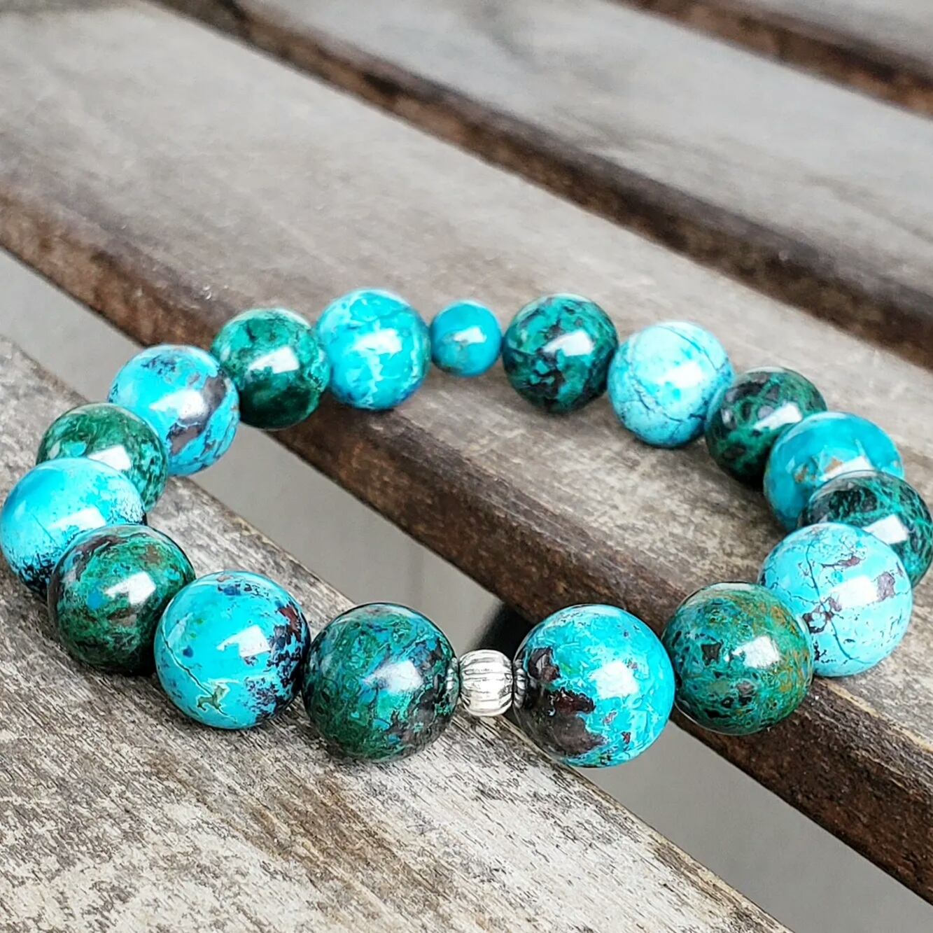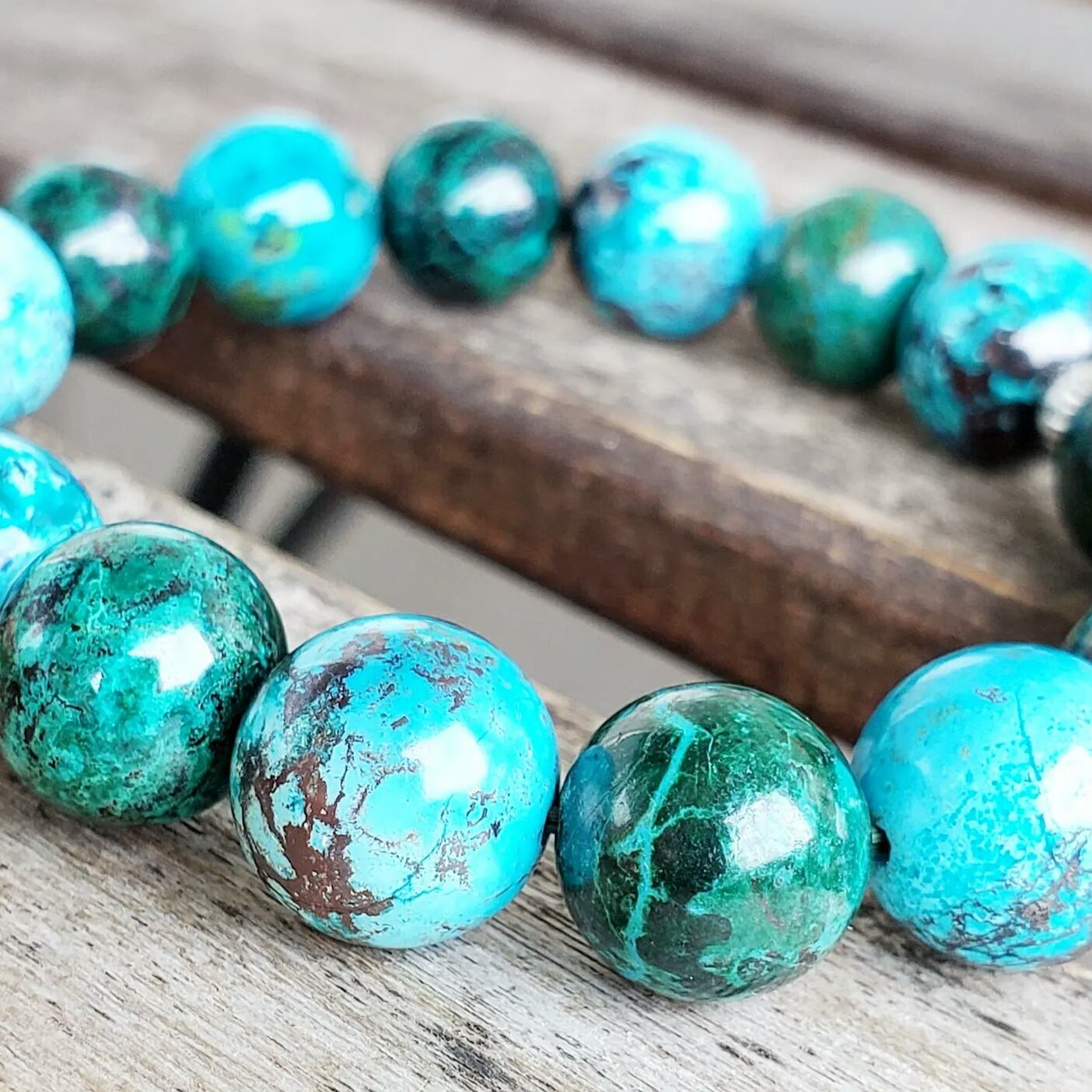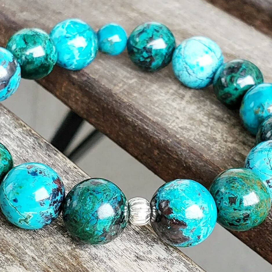 ☆クリソコラは比較的に硬度の低い柔らかめの石(モース硬度2.5~3.5)なので、あまりぶつけたり擦れたりしないようお気を付けください