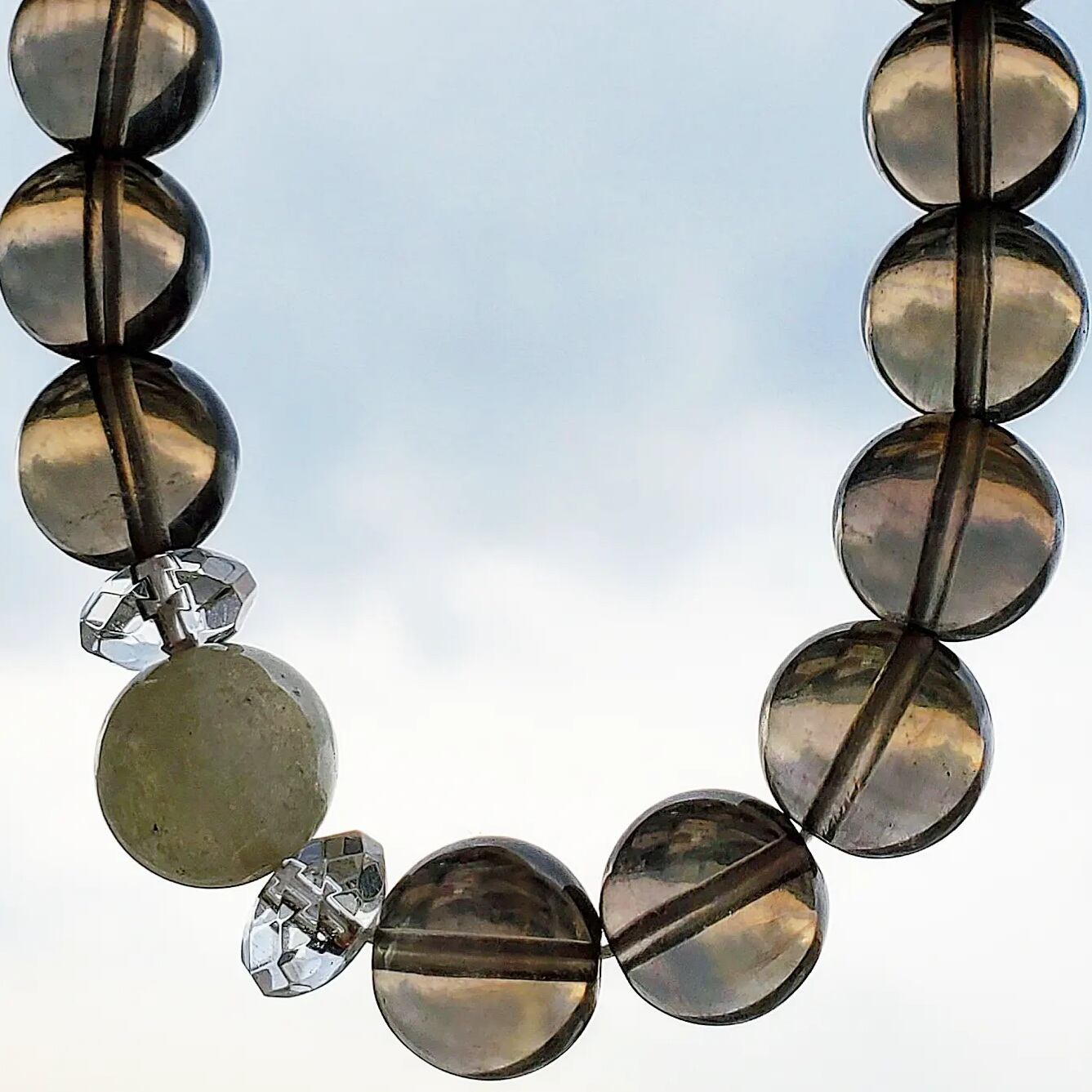リビアングラス&イエローブルーフローライト&ボタンカット水晶