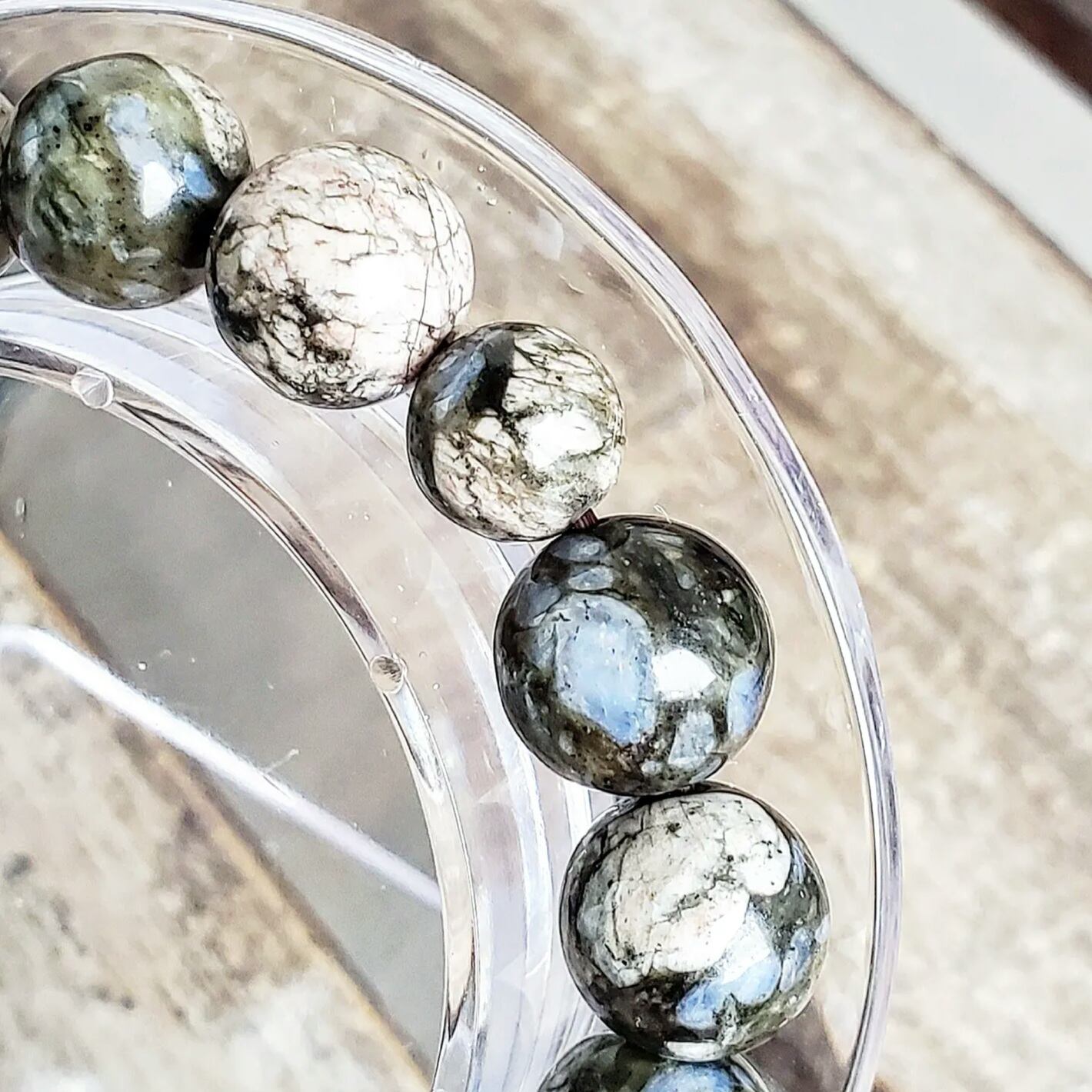 ブルーオパール、カルサイト、マグネタイトなど複数の鉱物が混ざりあい、一粒一粒が色も模様も複雑でなかなか珍しいケセラストーン