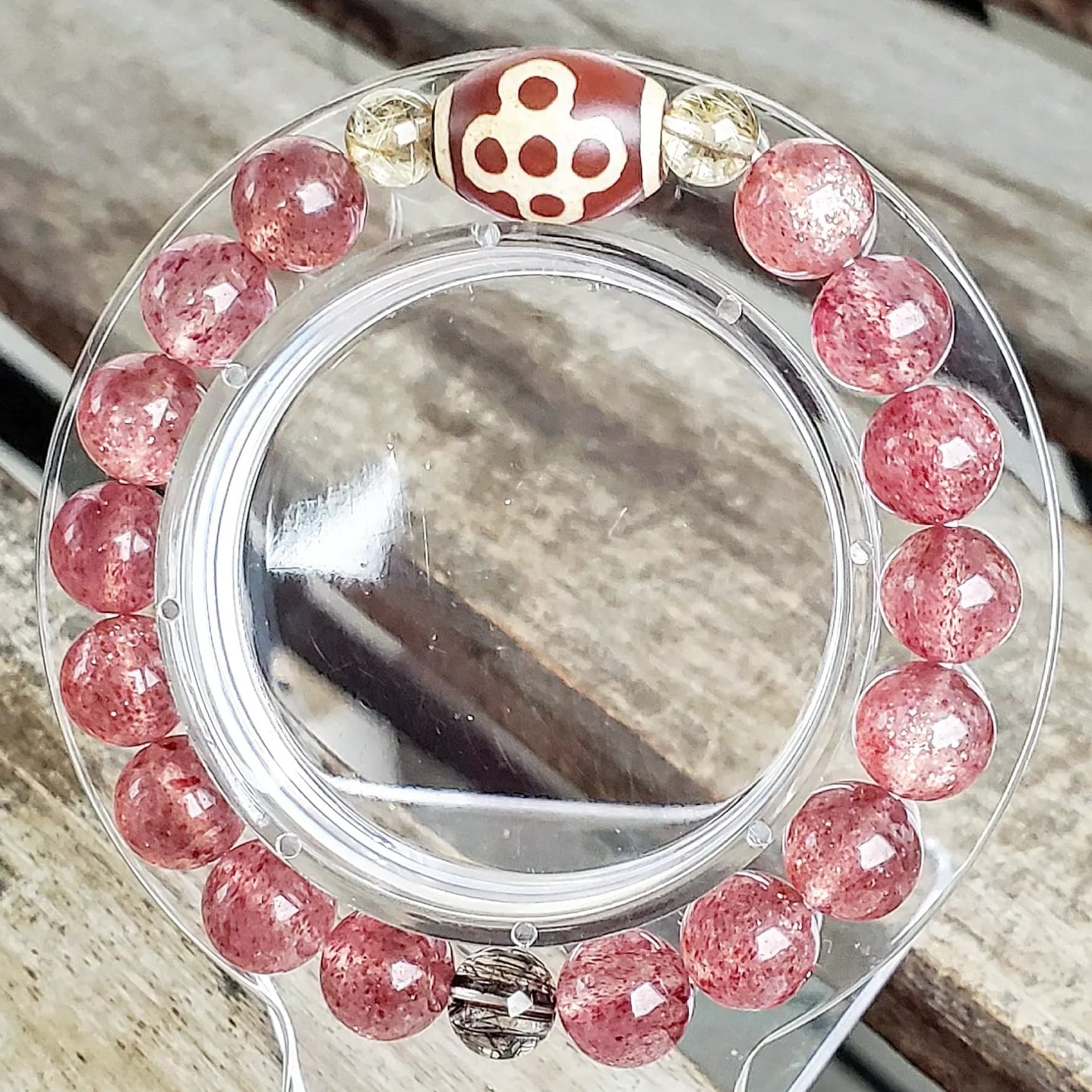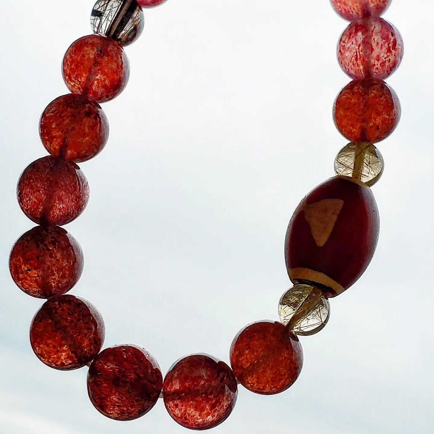 閃電五眼(せんでんごがん)天珠 & ゴールドルチルクォーツ & ブラックルチルクォーツ & ピンクエピドート