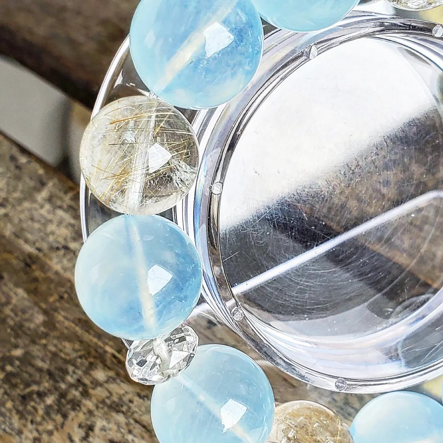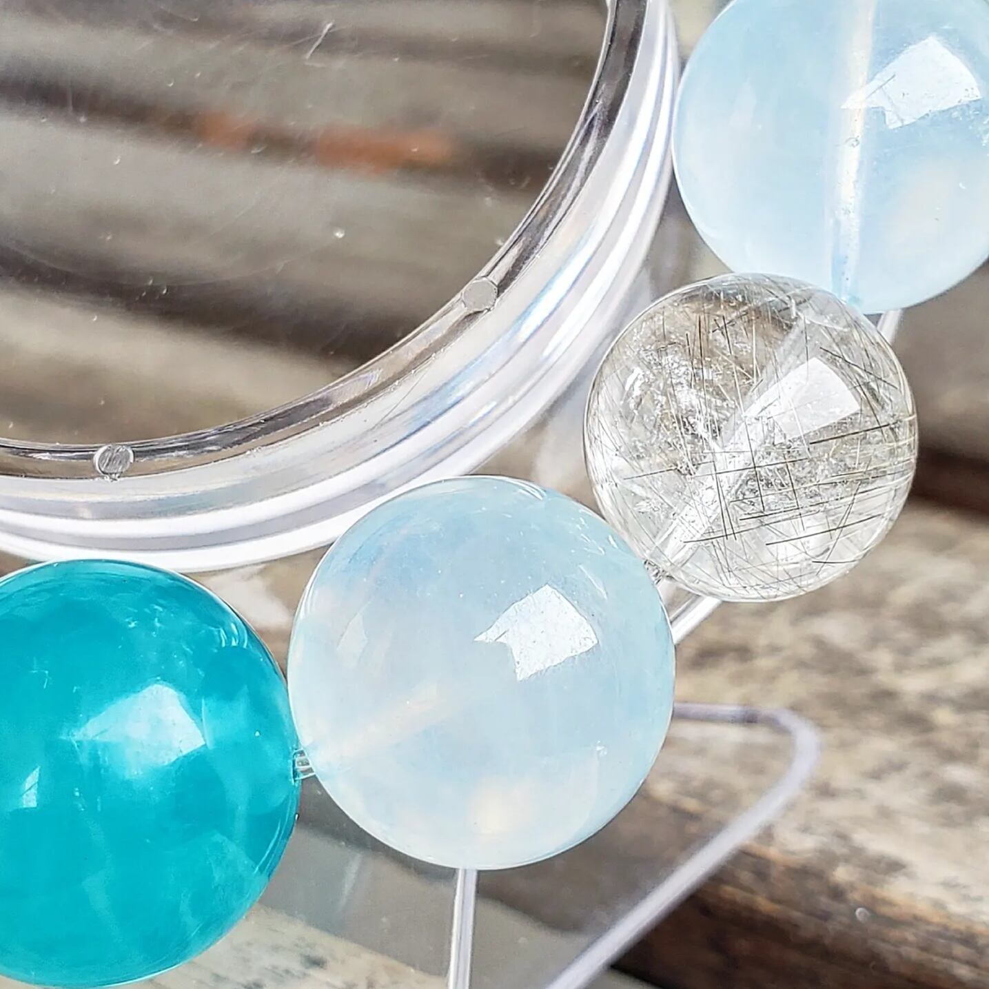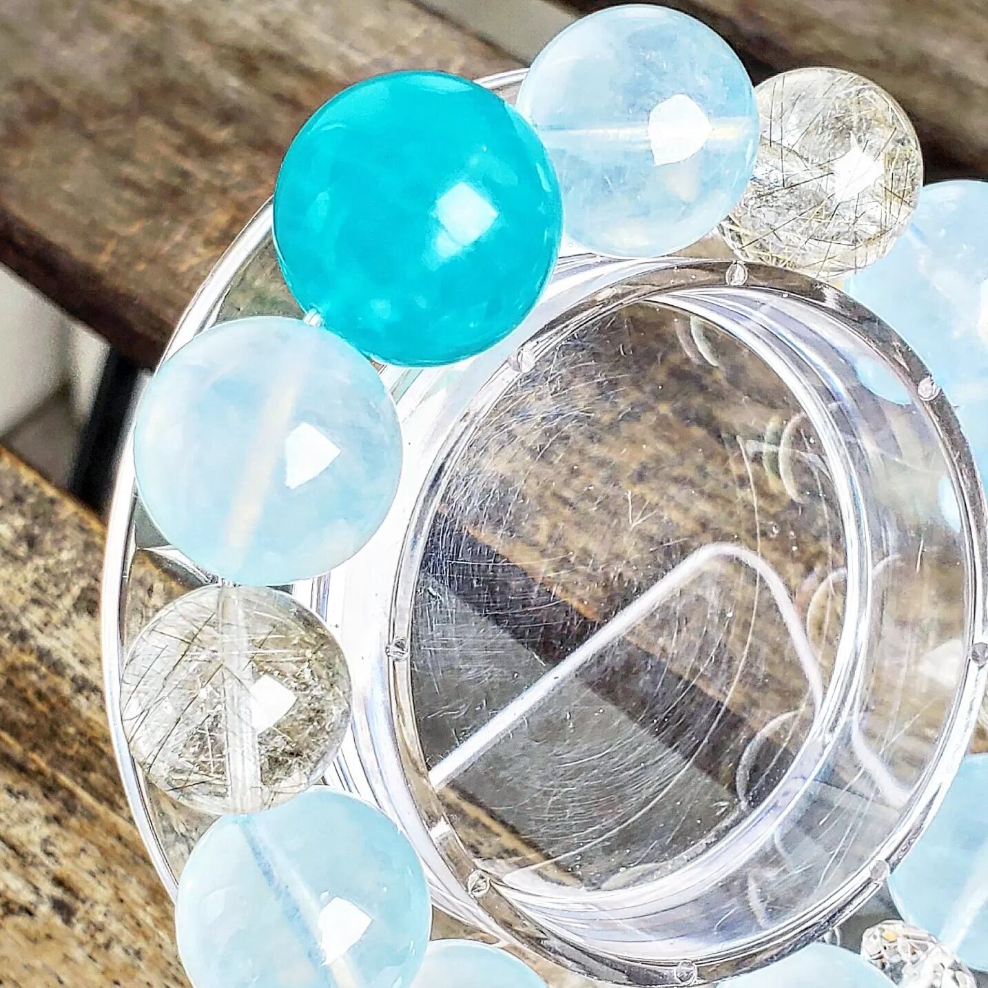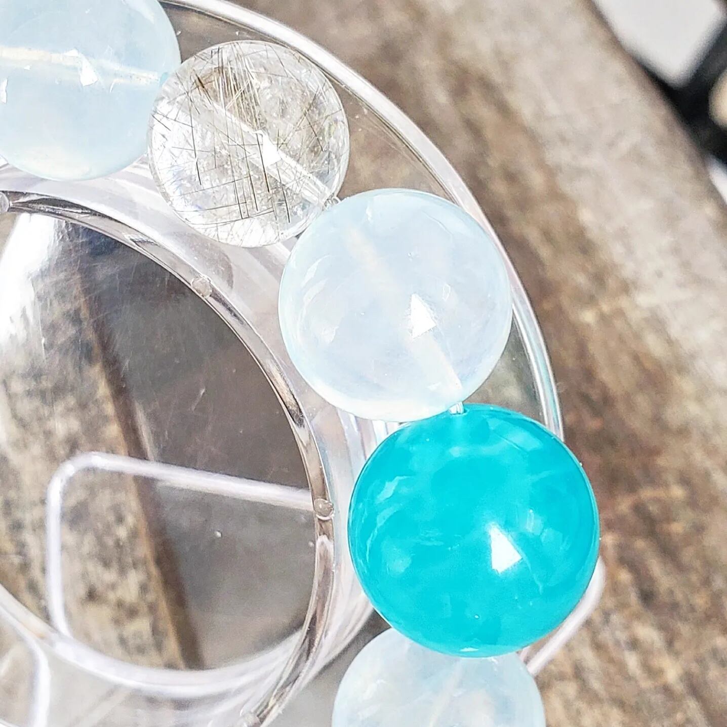 《極大玉》アイスアマゾナイト&アクアマリン&シルバールチルインクォーツ&ボタンカット水晶