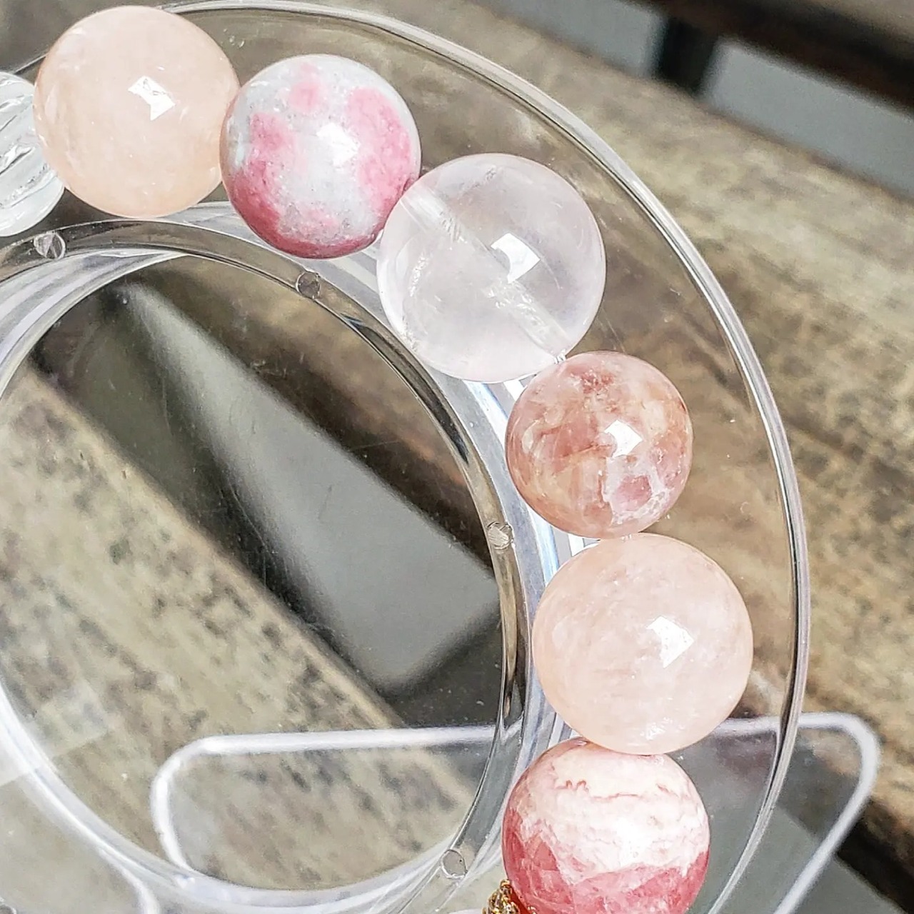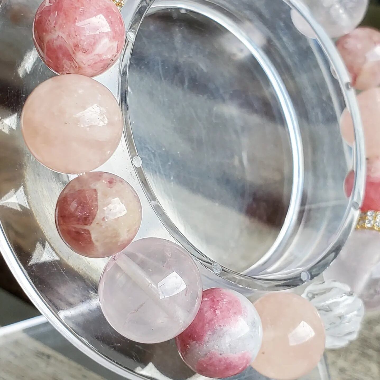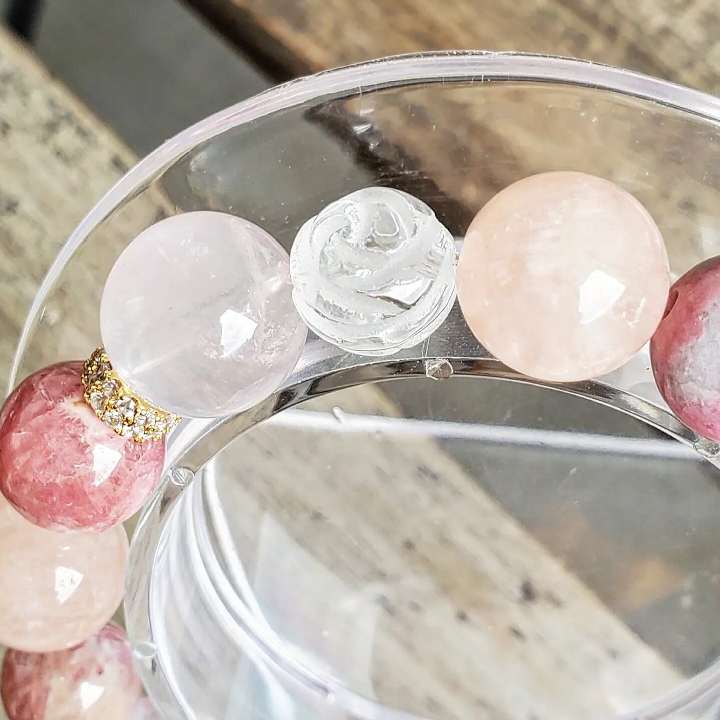 ピンクカラーメインの柔らかく優しい波動のブレスレットです