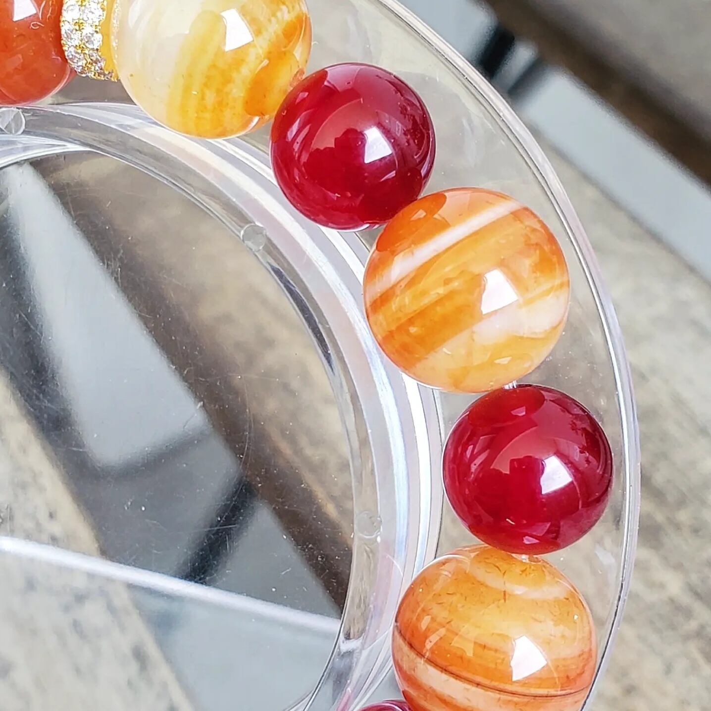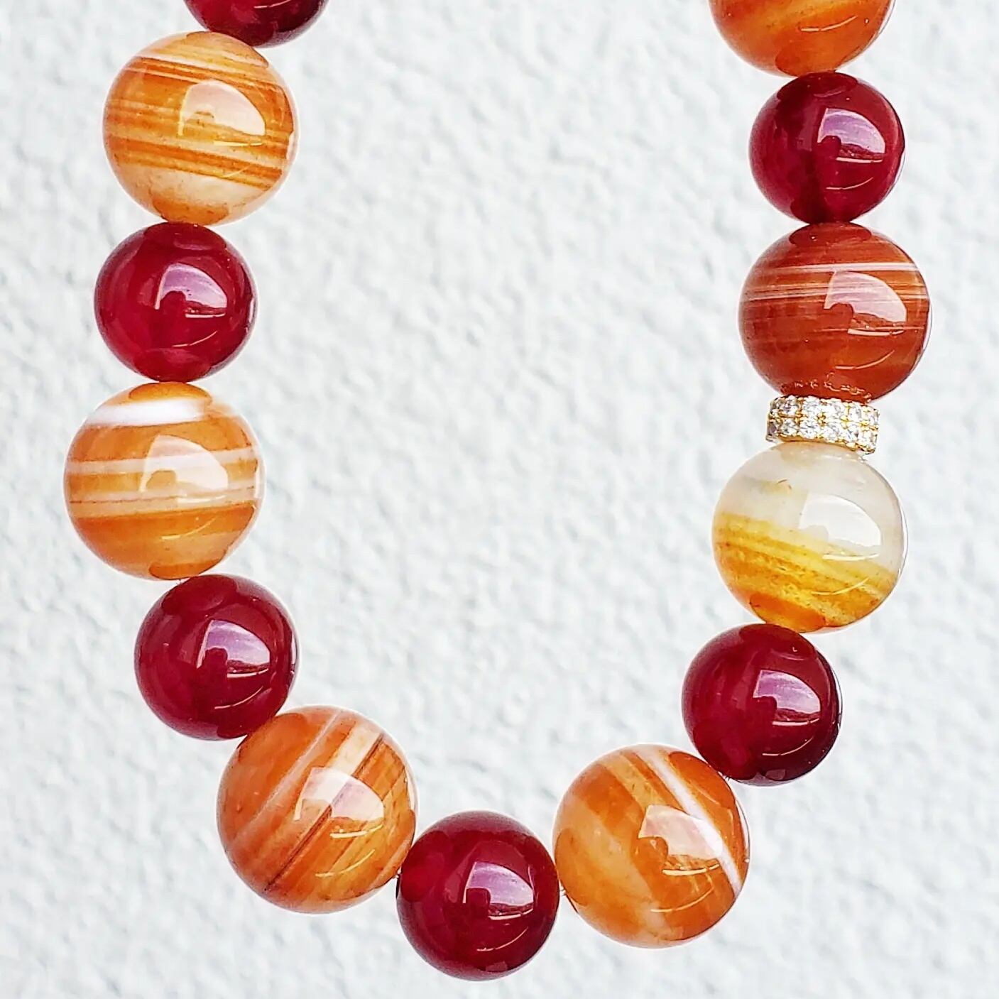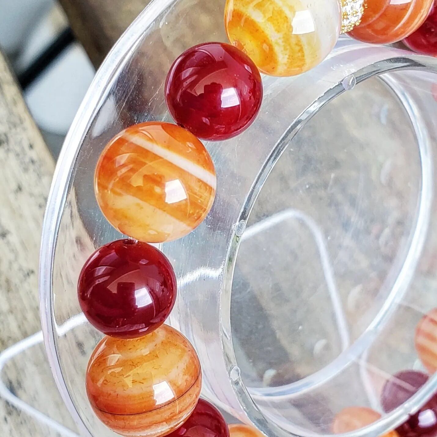 ホワイト~ライトブラウンとオレンジ~レッドの縞模様がみられるアゲート(瑪瑙)をサードオニキス(紅縞瑪瑙)と呼びます