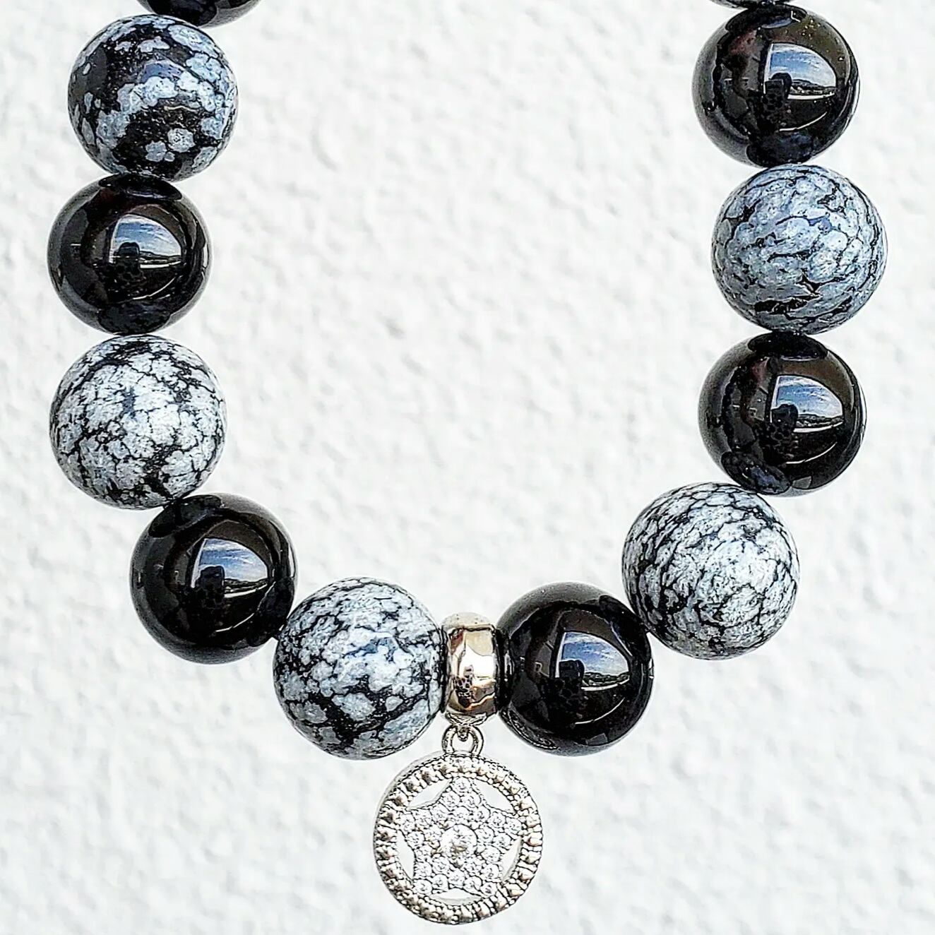 〈大玉〉スノーフレークオブシディアン&オニキス
