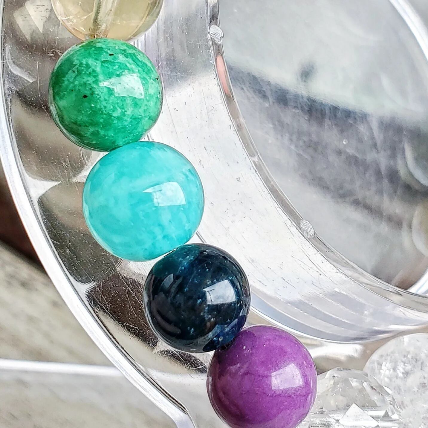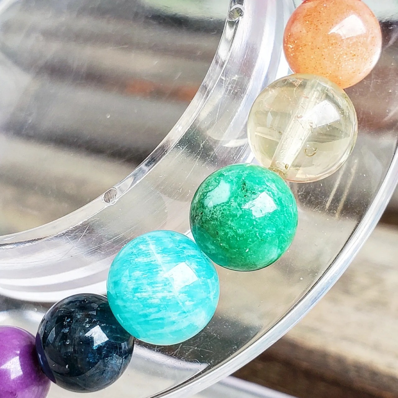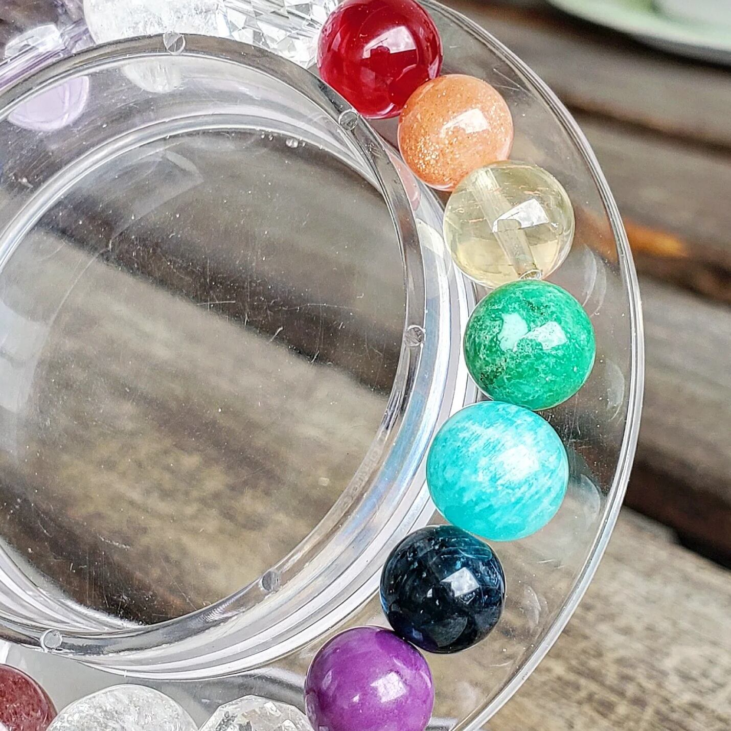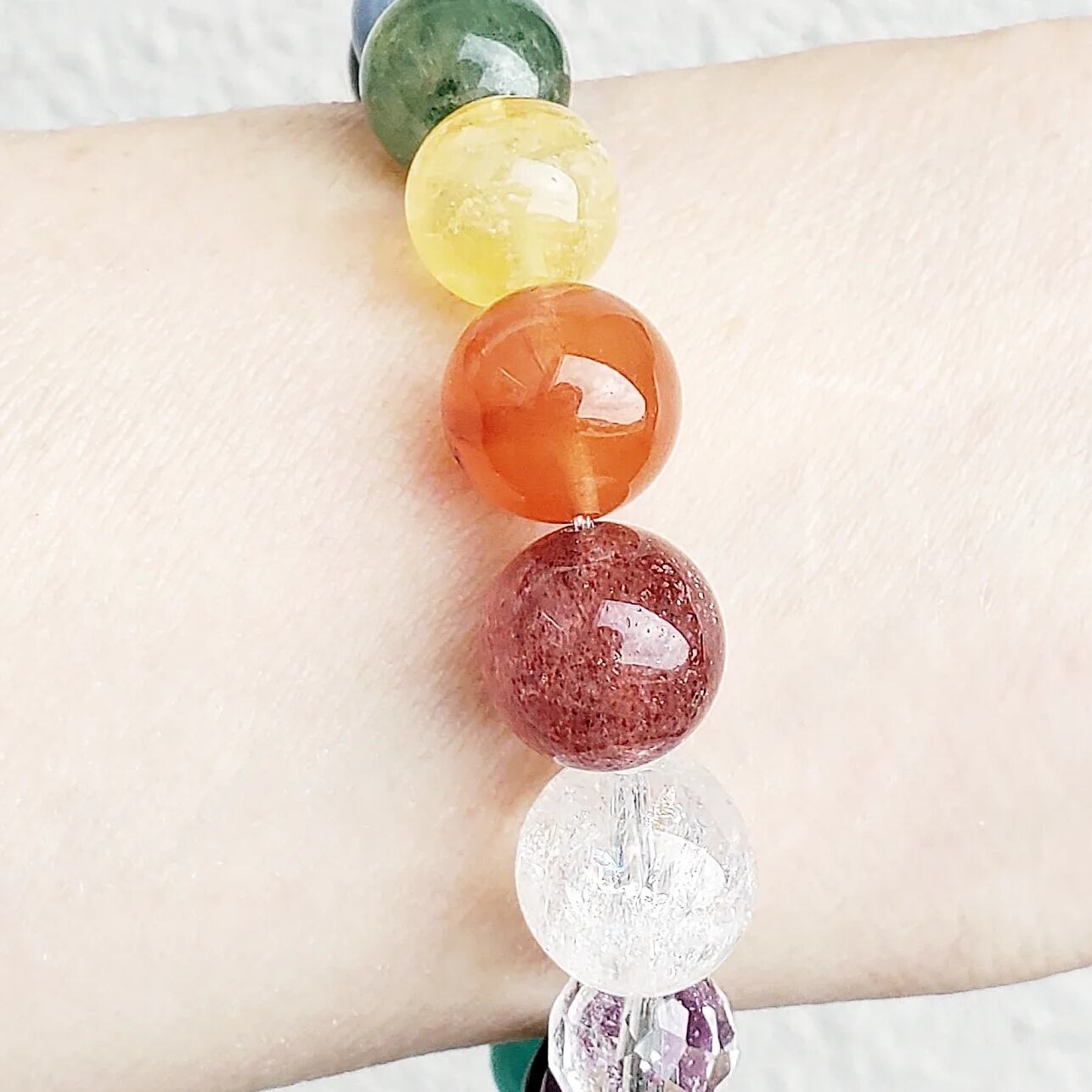 天然アイリスクォーツ(別名・虹入り水晶、レインボー水晶)とキラキラカット水晶で繋いで組んだブレスレットです
