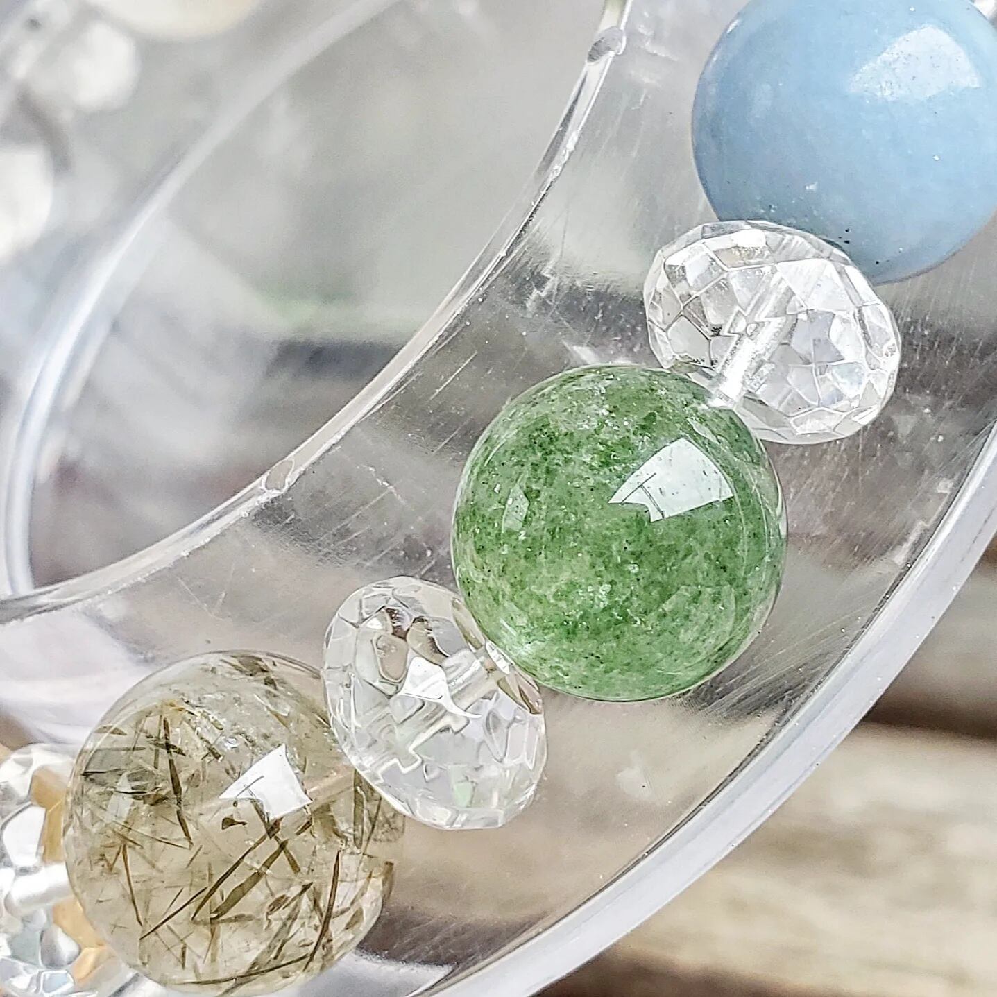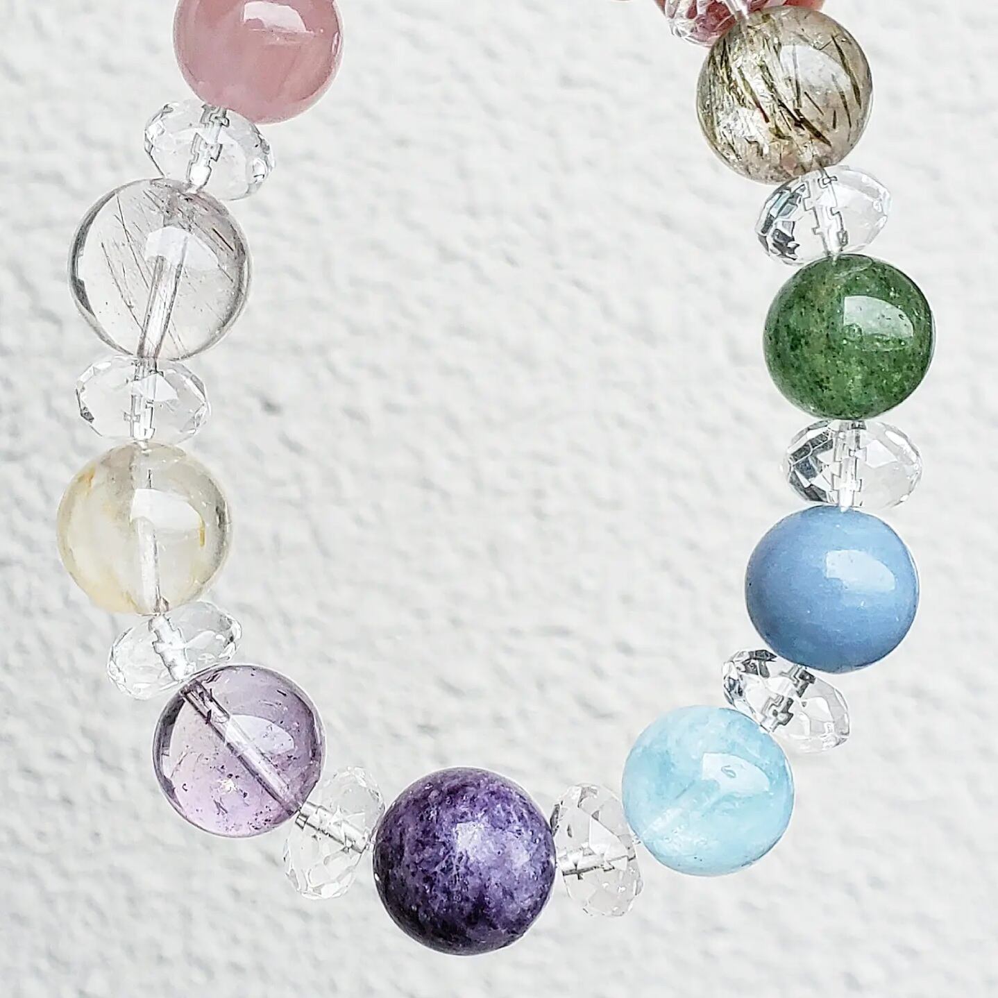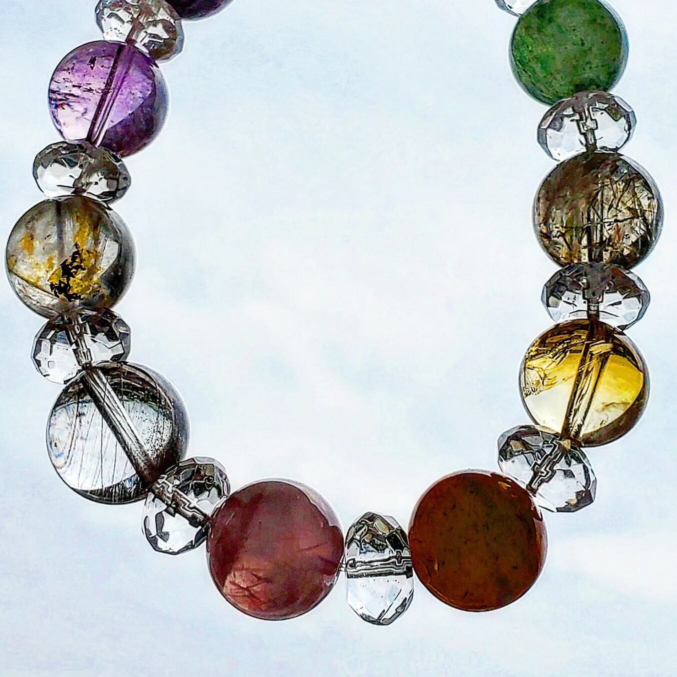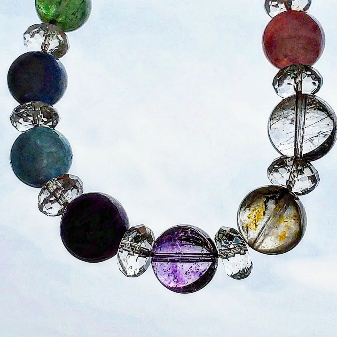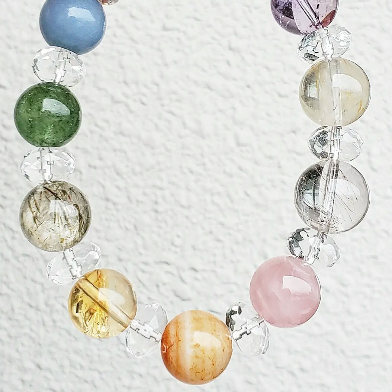 ボタンカット水晶と11種類11色の石で組んだブレスレットです
