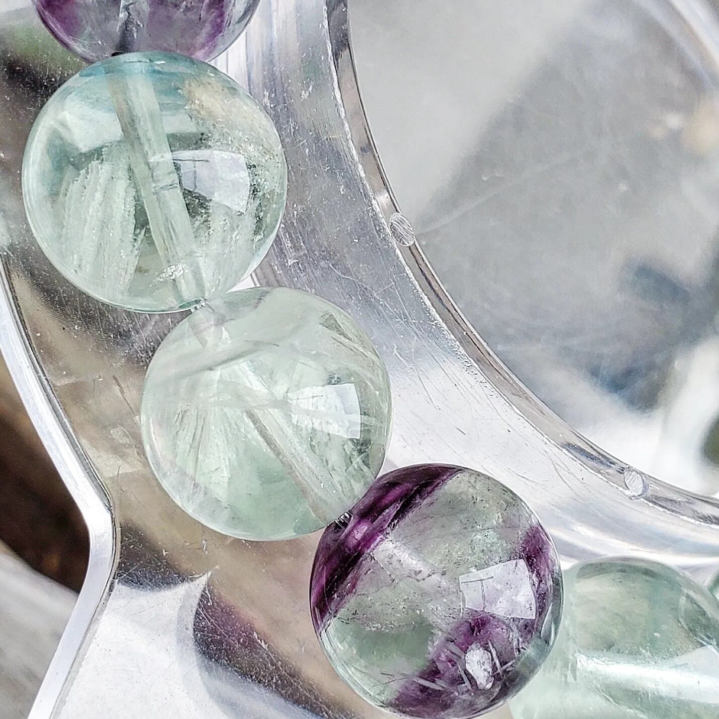 エンジェルフェザーフローライトは、天使の羽のような白い内包物のあるフローライトのこと