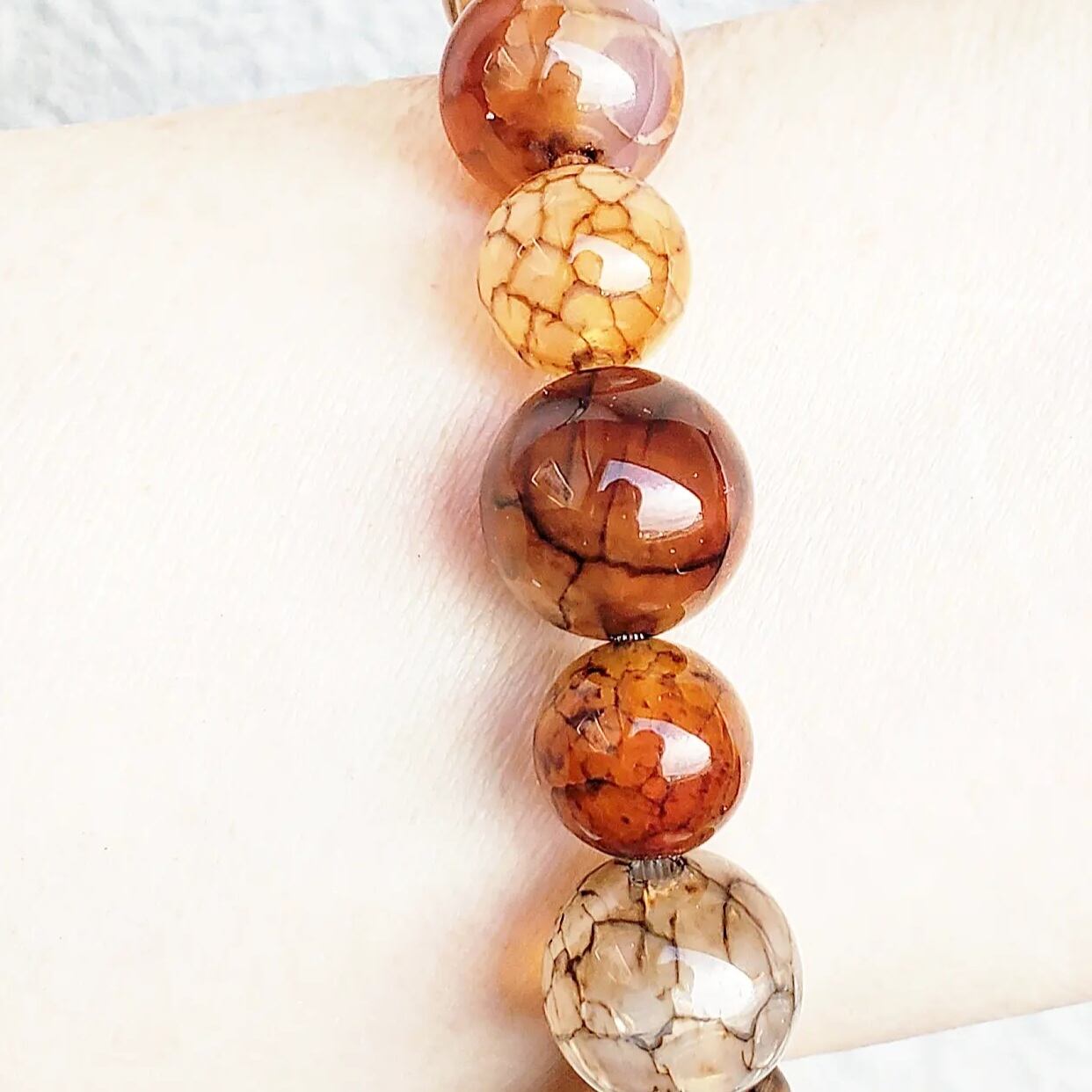 約12㎜珠と約10㎜珠のドラゴンアゲートを交互に組んだブレスレットです