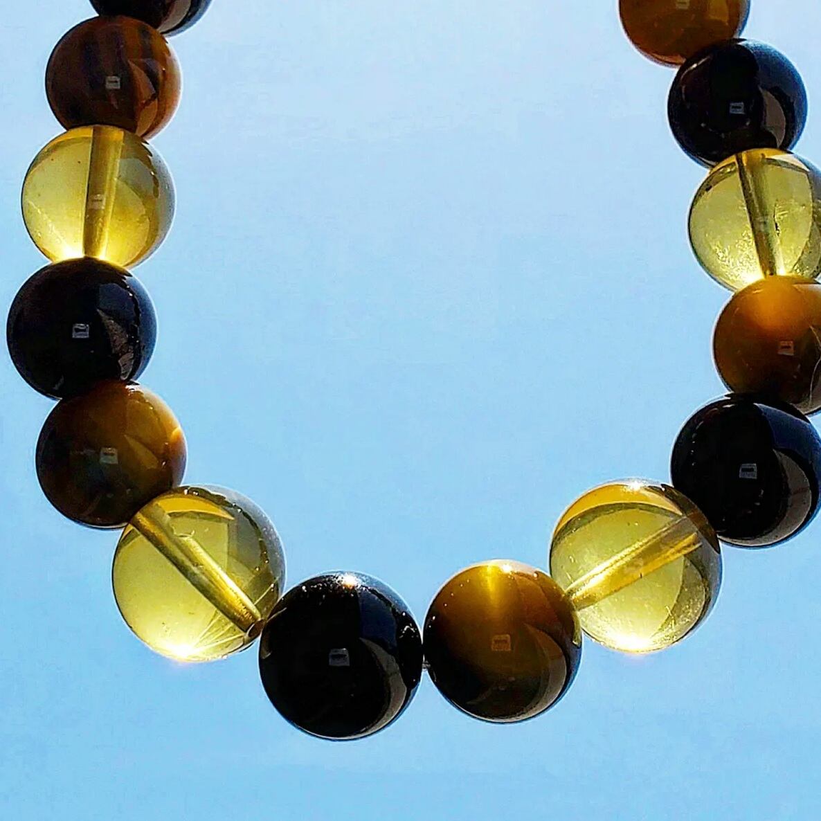 イエローブルータイガーアイ&ブラックトルマリン&レモンクォーツ