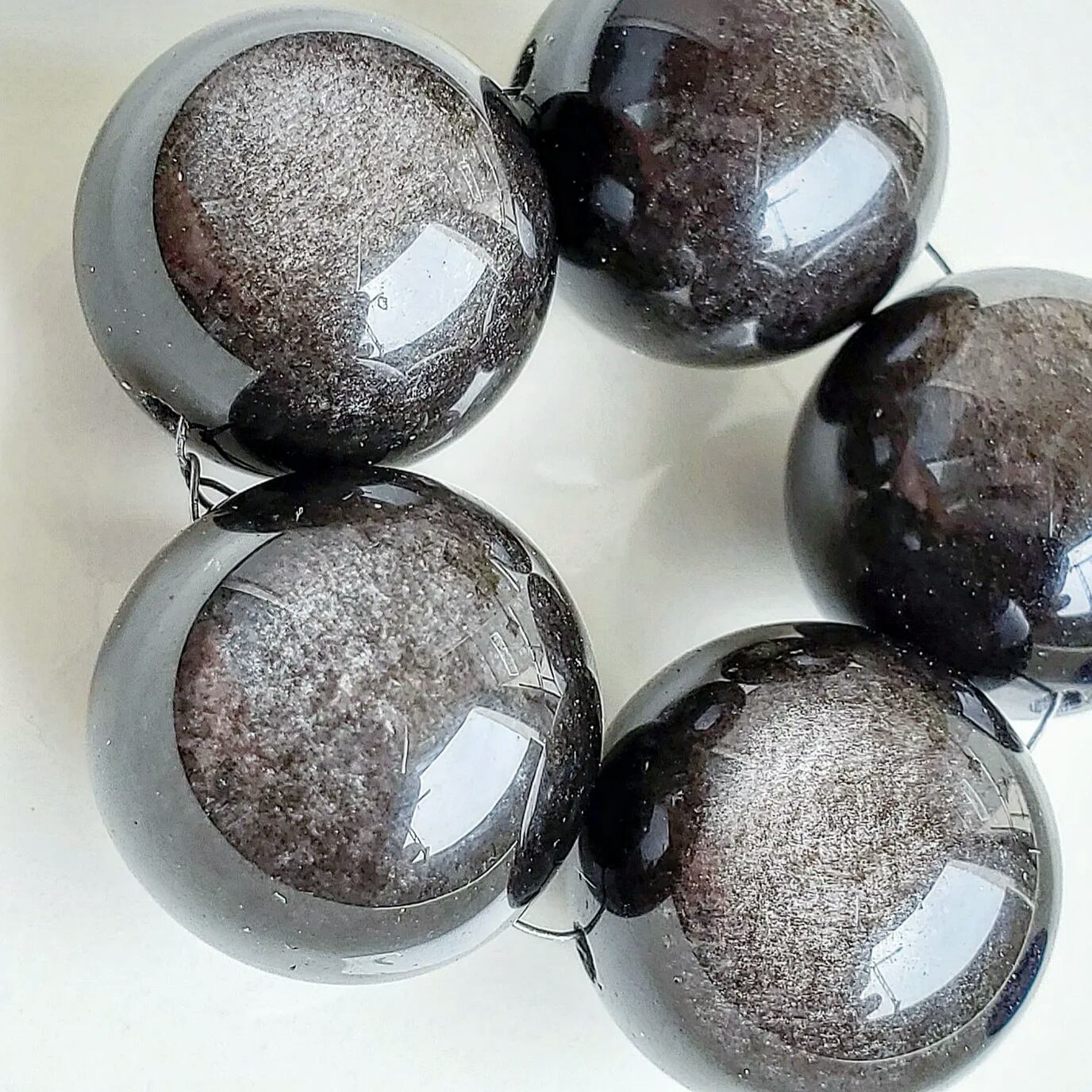 【粒売り】極大玉シルバーオブシディアン 約16㎜ 貫通穴あり