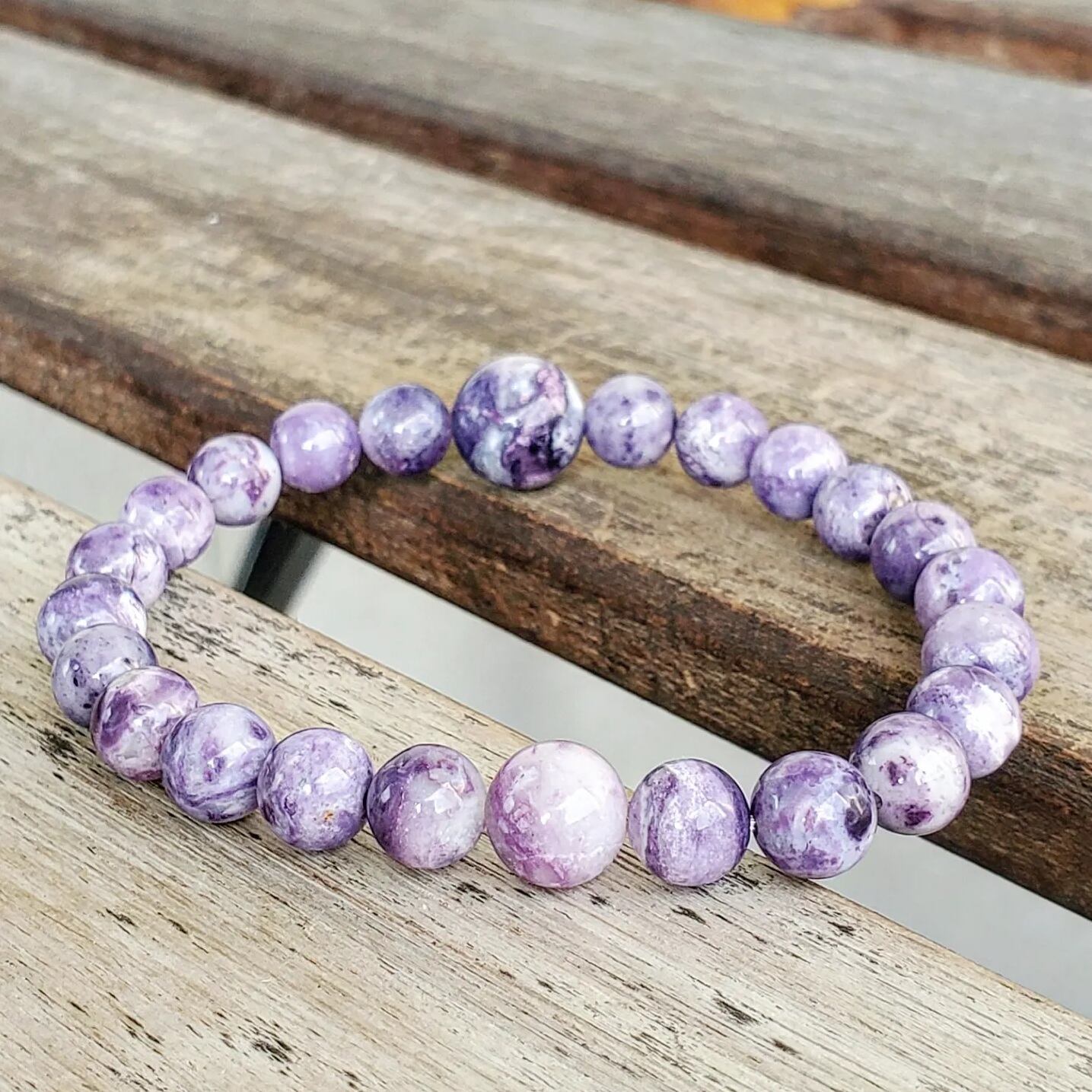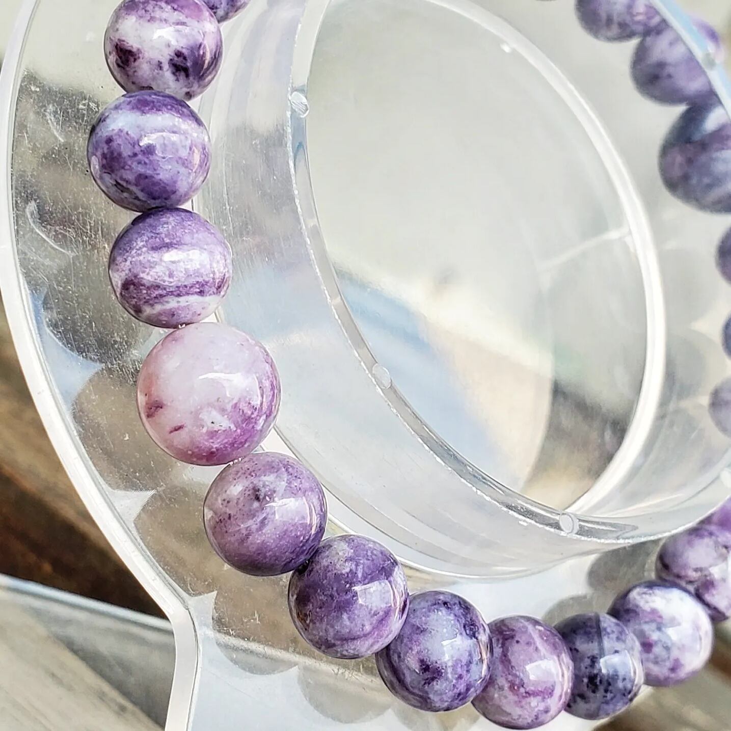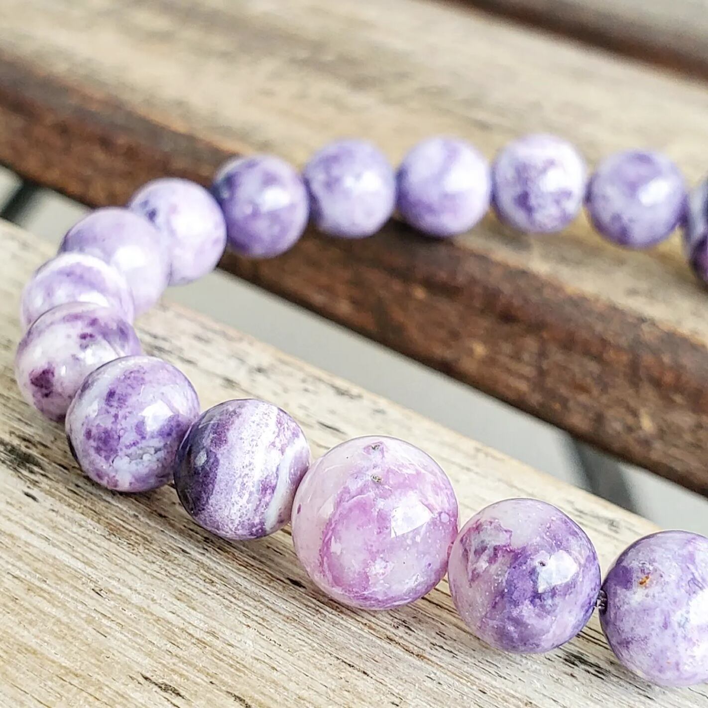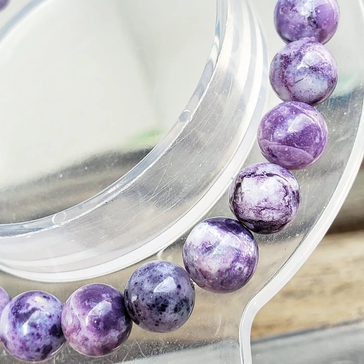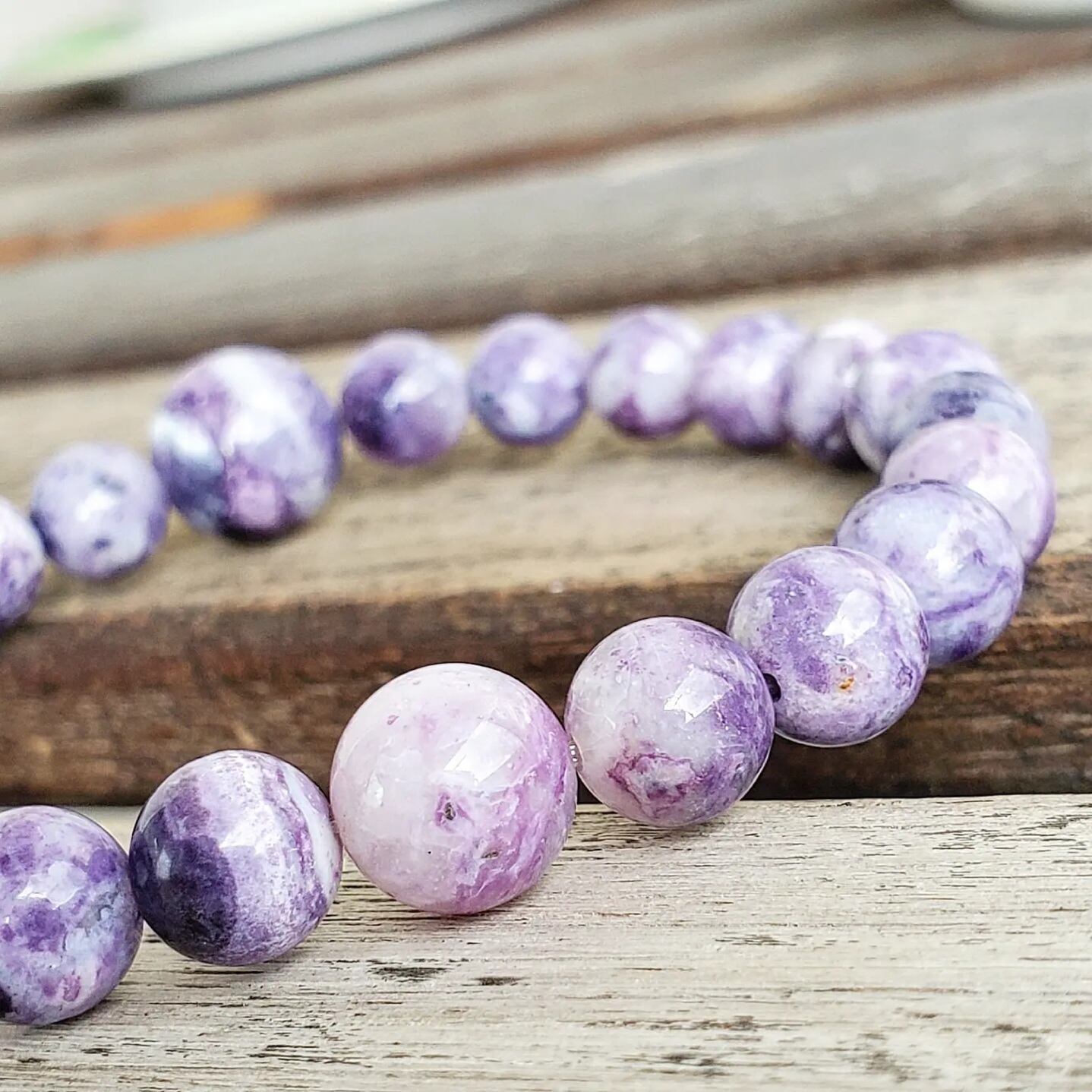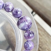 ベリルやカルセドニー、カルサイト、ドロマイト、石英等の複数の鉱物が混ざりあい、紫の模様が美しいティファニーストーン(別名「オパライズド・フローライト」「アイスクリーム・オパライト」等)