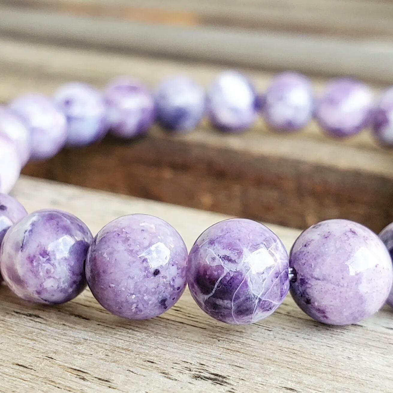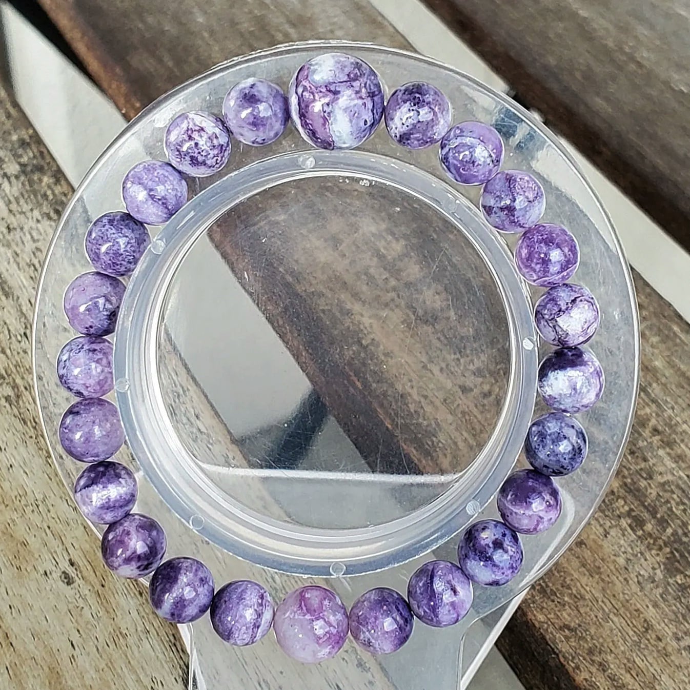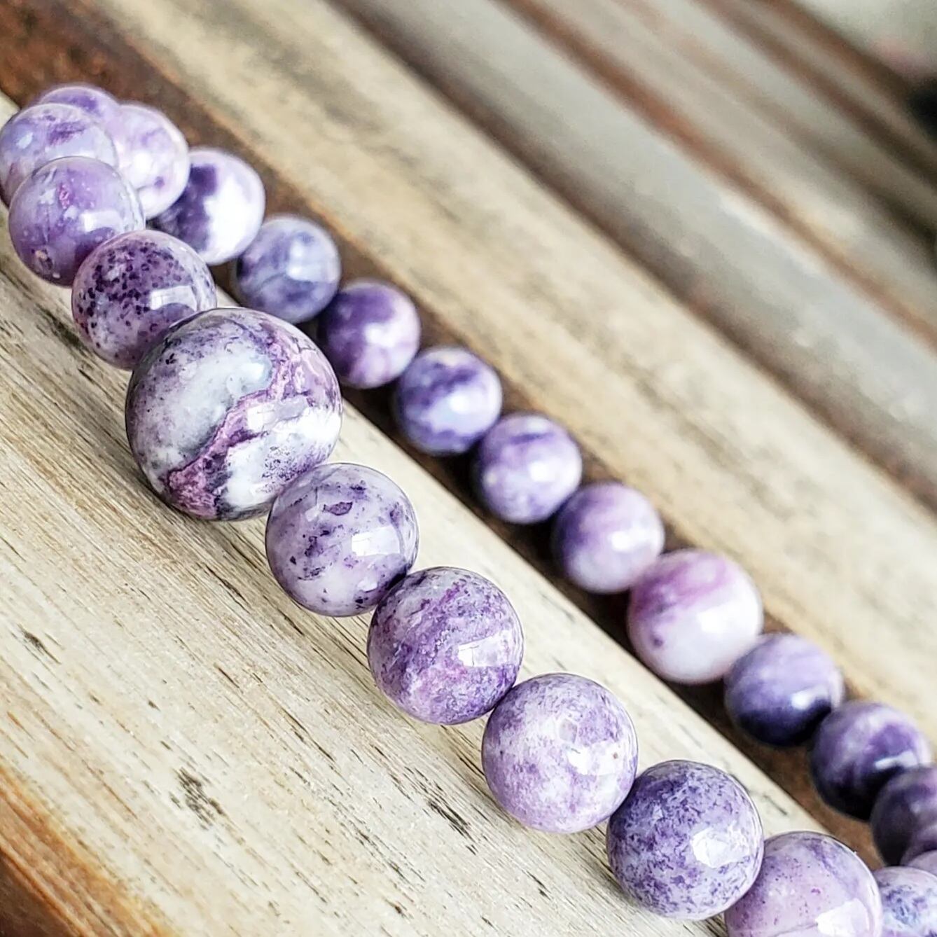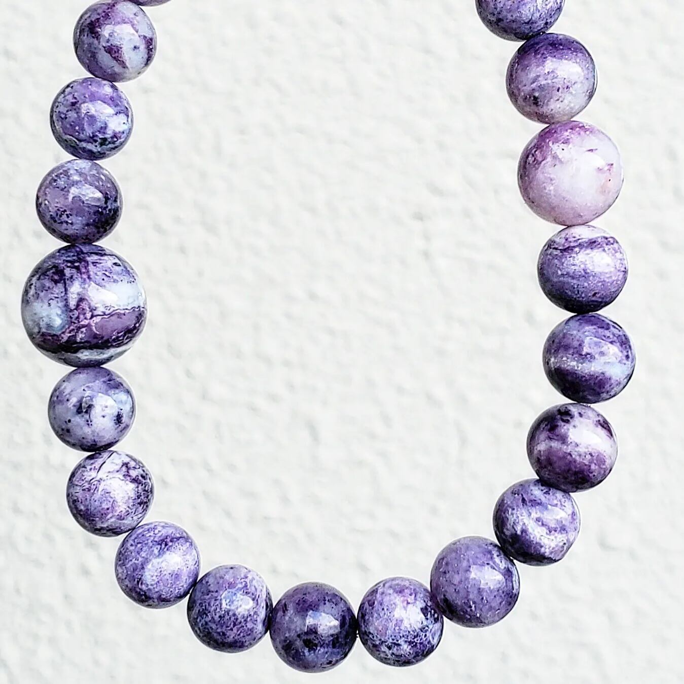 ベリルやカルセドニー、カルサイト、ドロマイト、石英等の複数の鉱物が混ざりあい、紫の模様が美しいティファニーストーン(別名「オパライズド・フローライト」「アイスクリーム・オパライト」等)