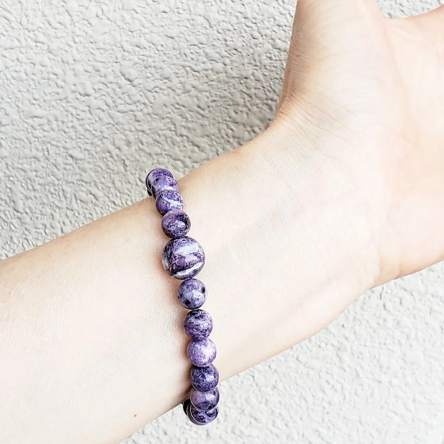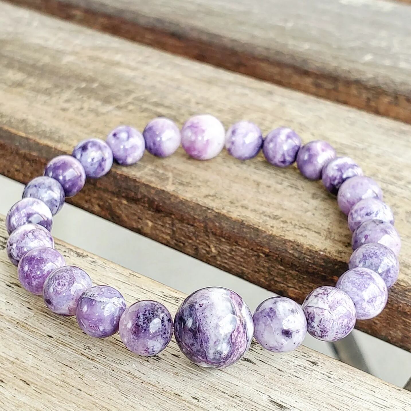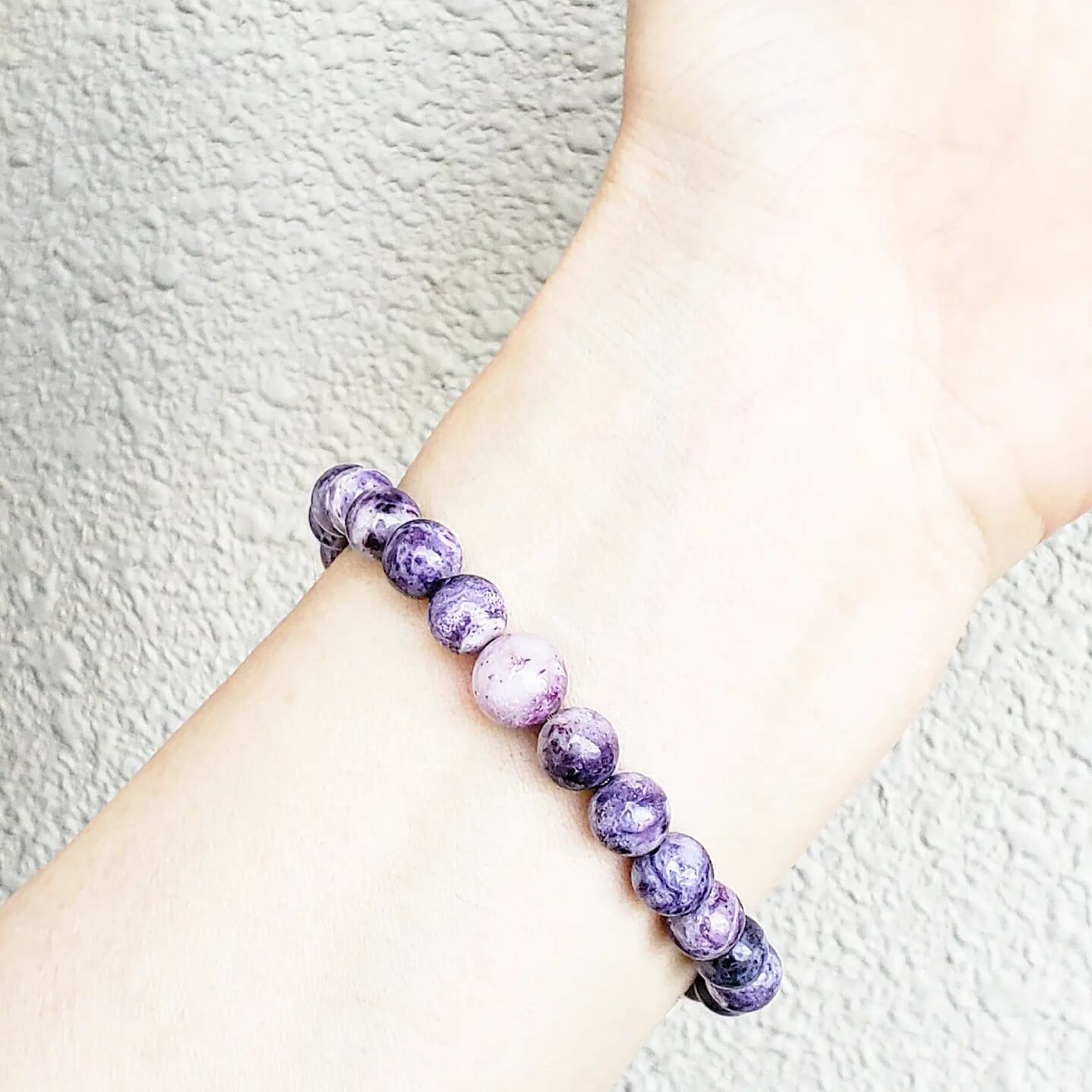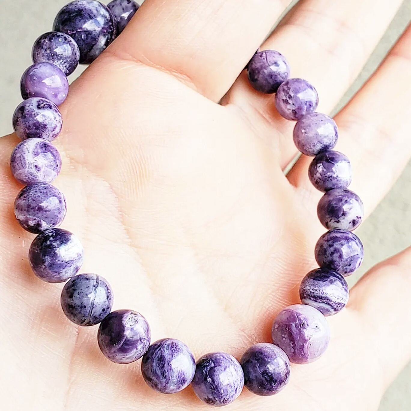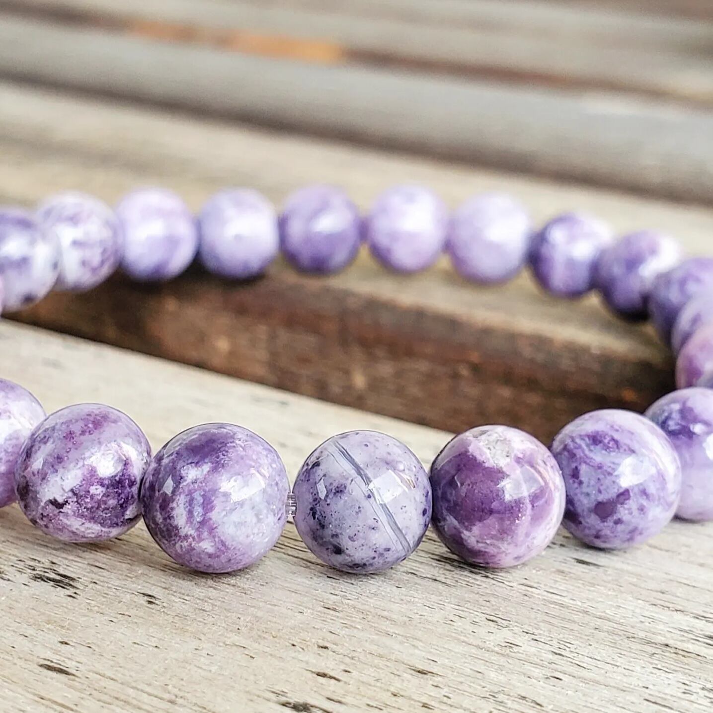 ベリルやカルセドニー、カルサイト、ドロマイト、石英等の複数の鉱物が混ざりあい、紫の模様が美しいティファニーストーン(別名「オパライズド・フローライト」「アイスクリーム・オパライト」等)