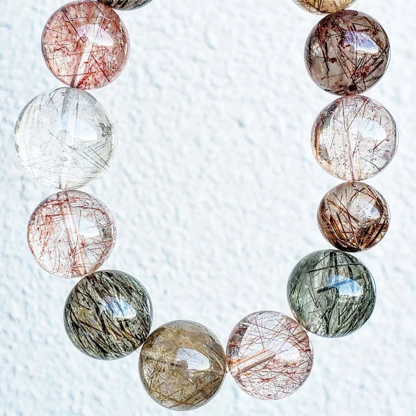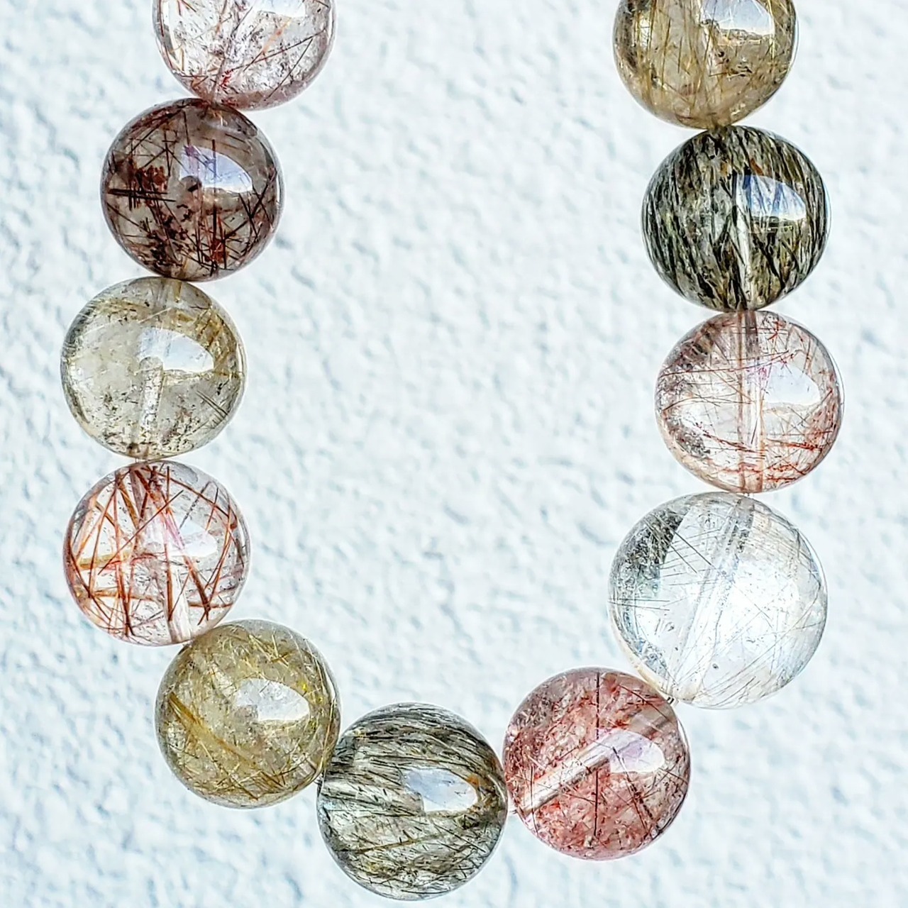 約14㎜の色々なカラーのルチルクォーツで組んだブレスレットです