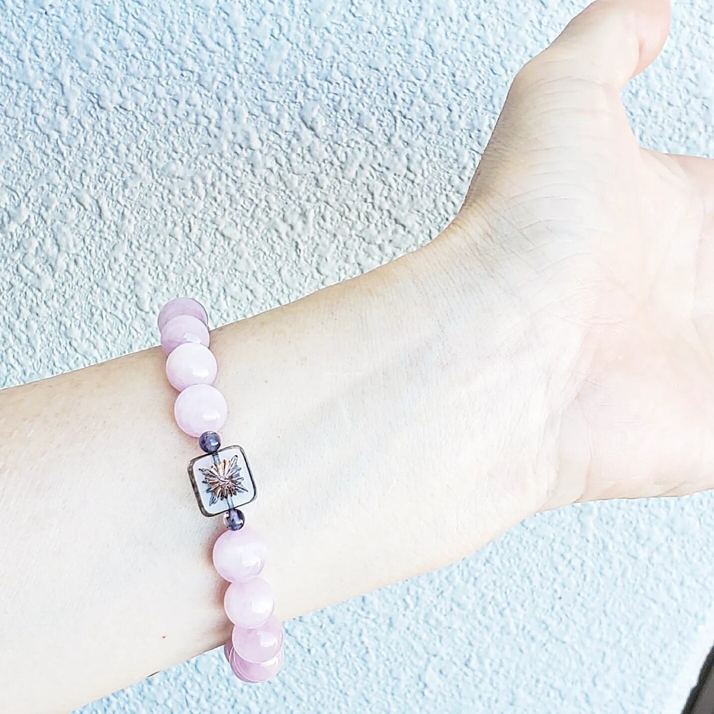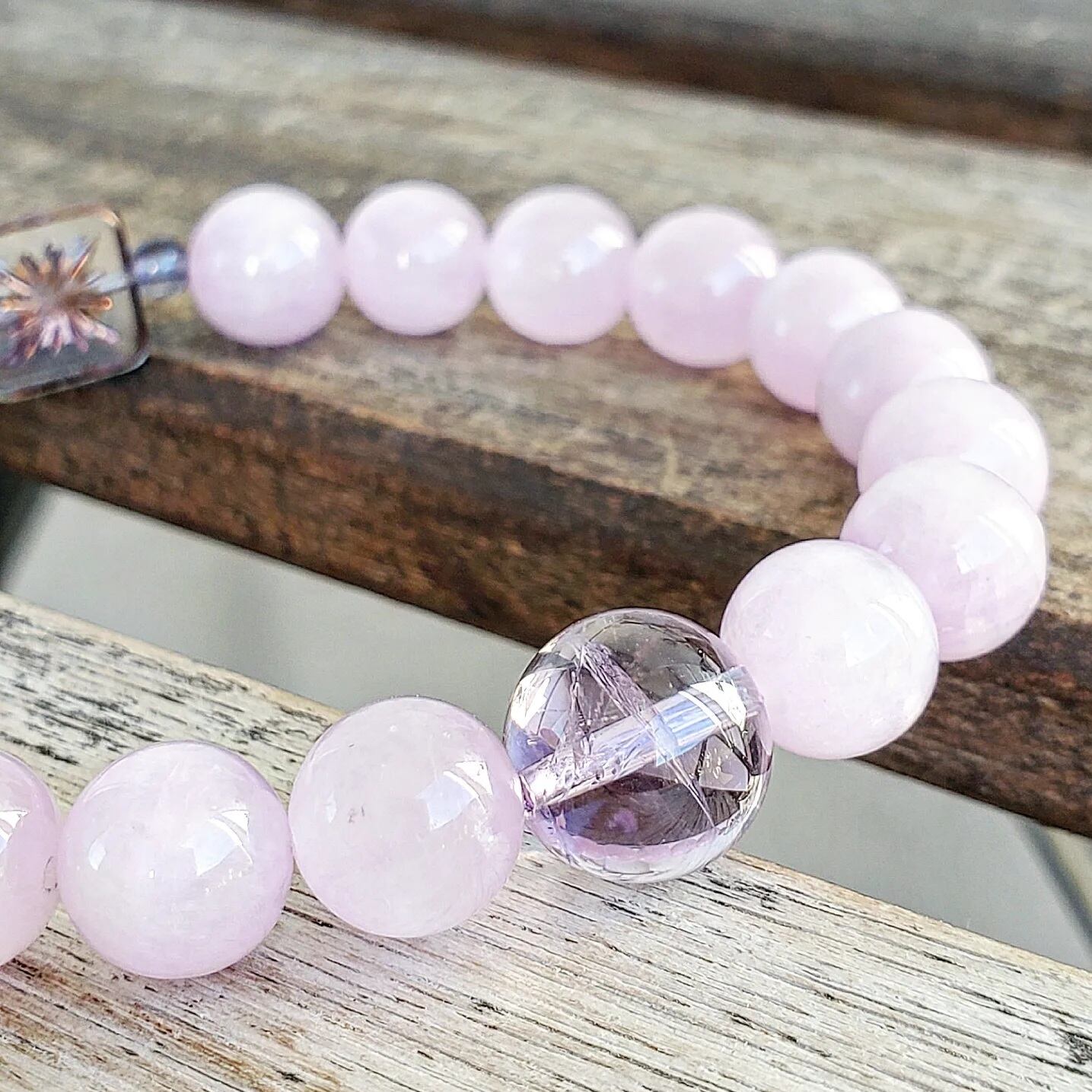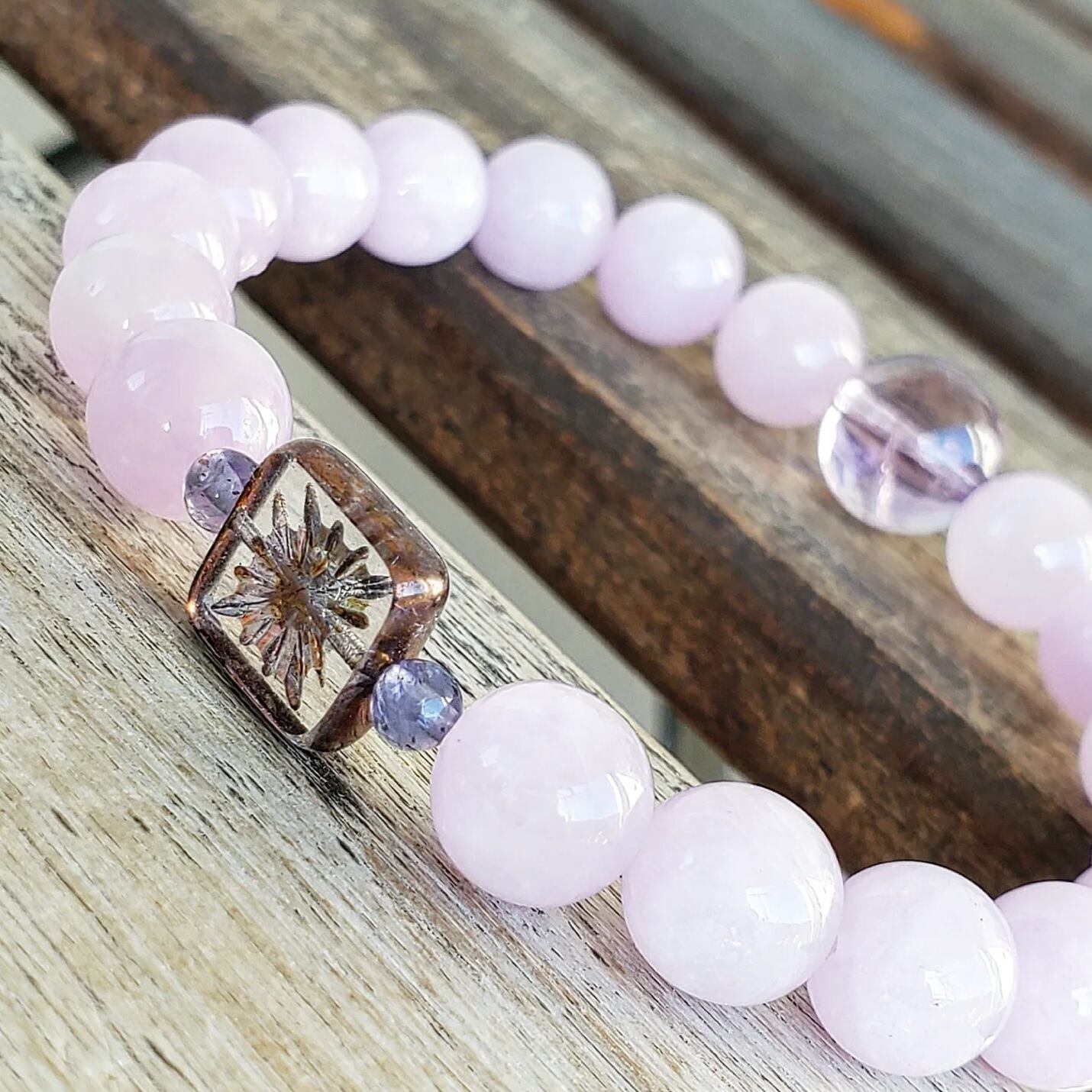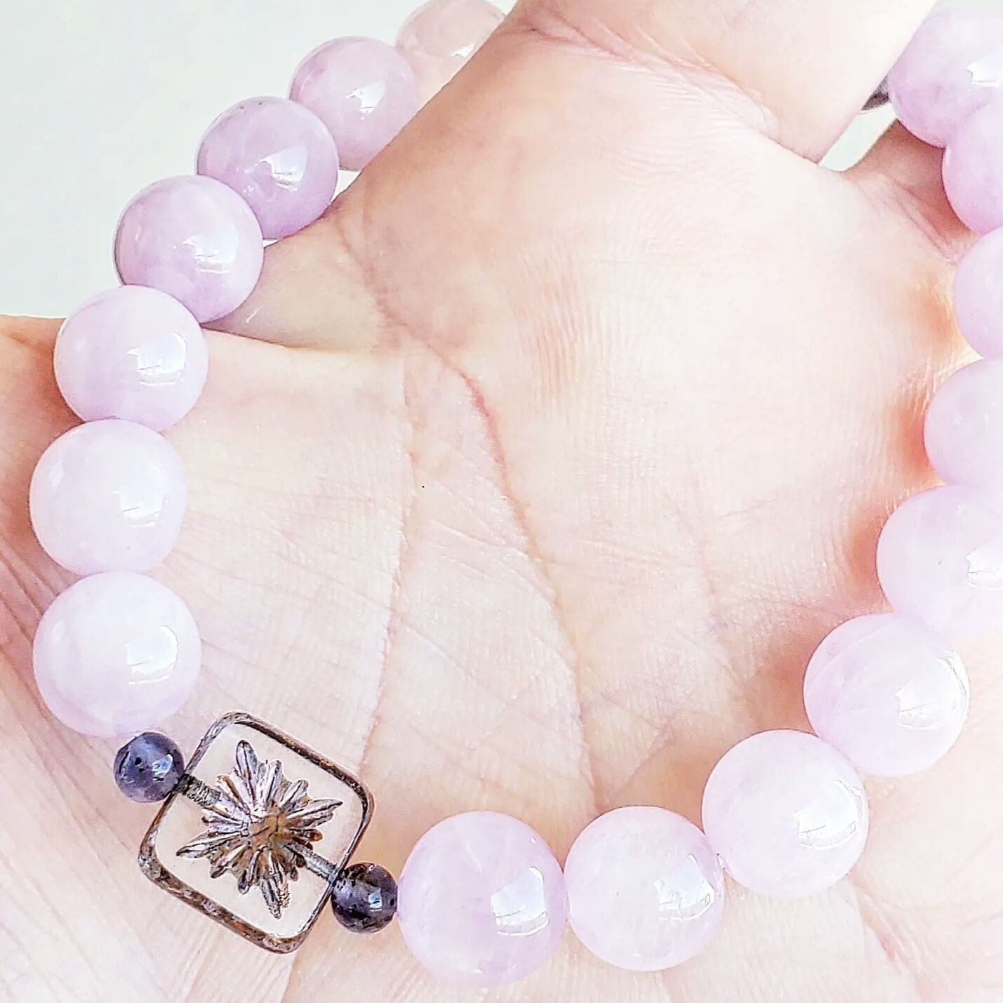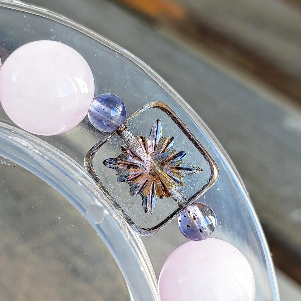 クンツァイト&ピンクアメジスト&アイオライト&チェコガラスビーズ(スクエア)