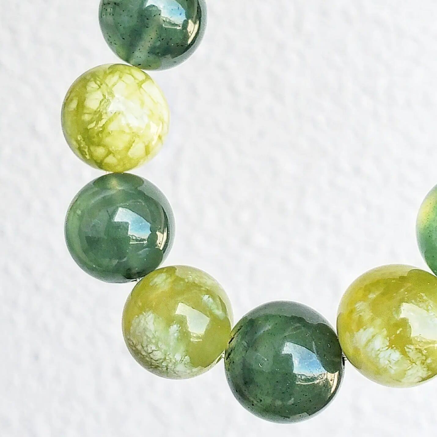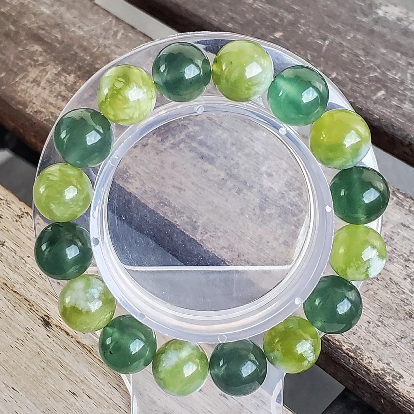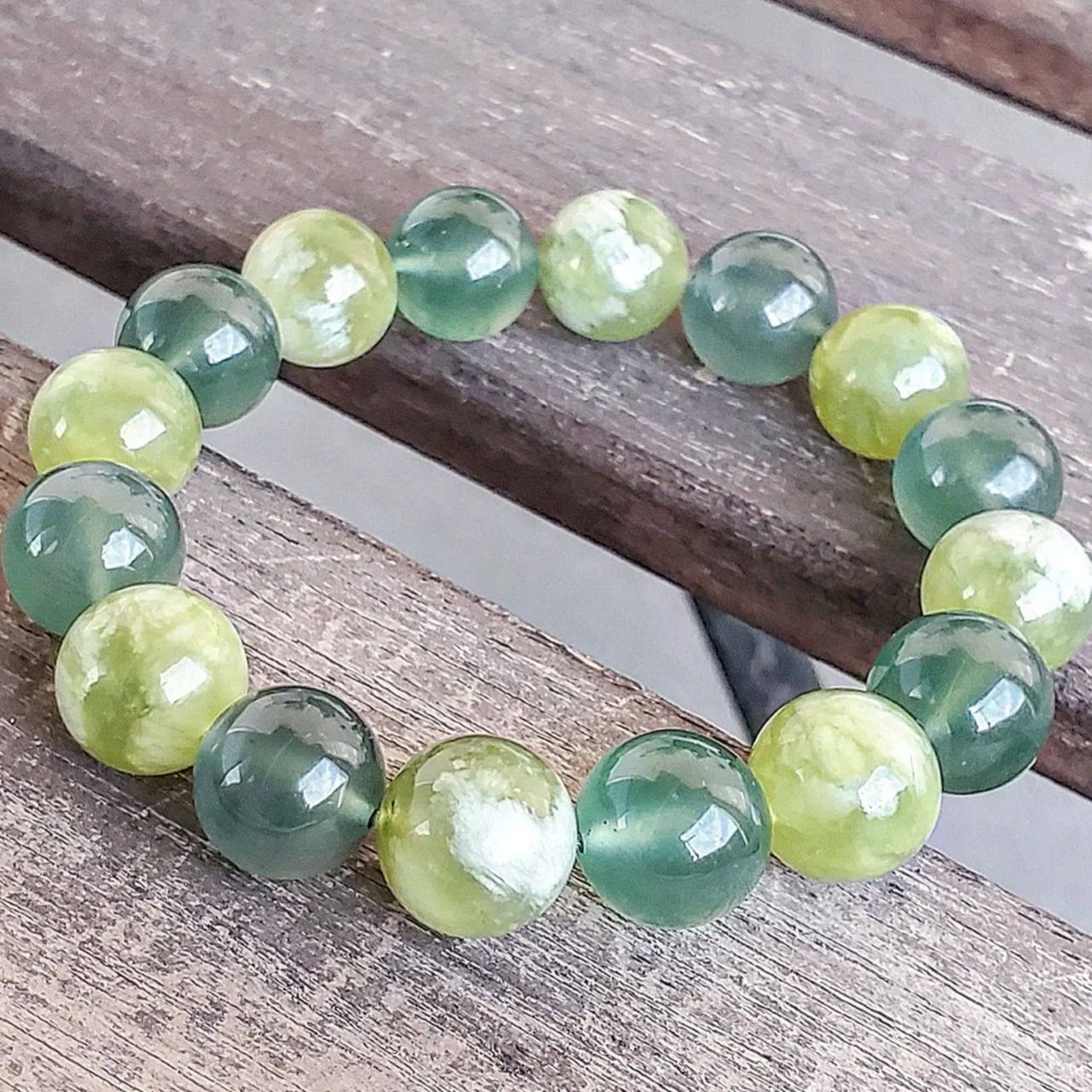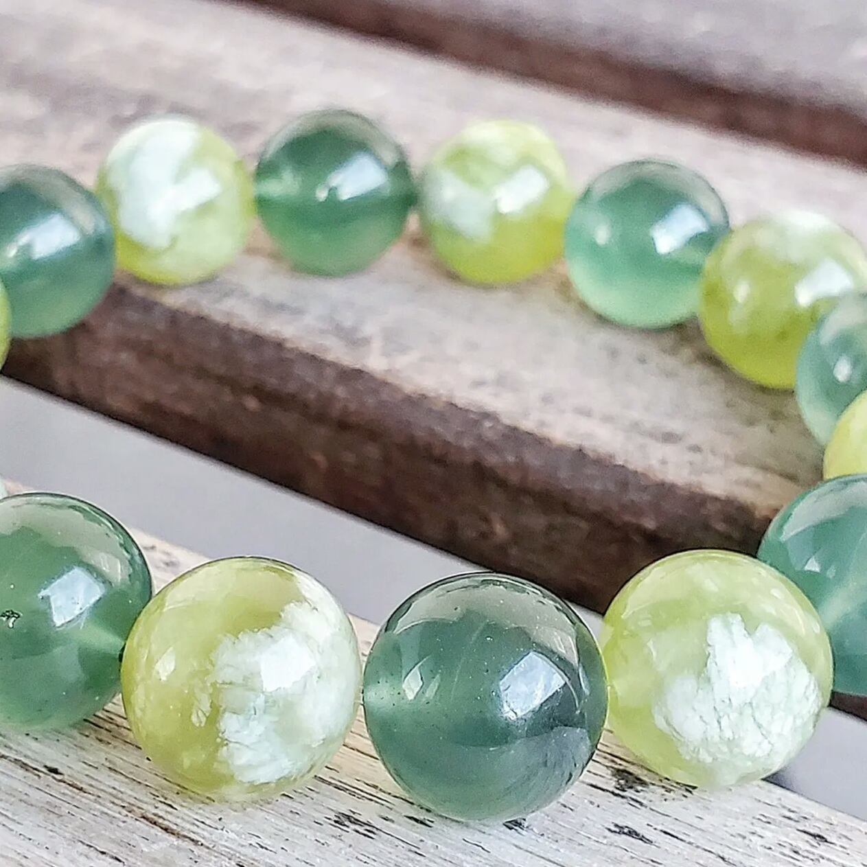 ディープグリーンカラーのサーペンティンとライムグリーンカラーのサーペンティンで組んだブレスレットです